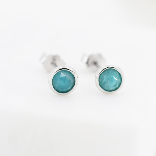 Sterling Silver Amazonite Stud Earrings, 4mm Rose Cut, Genuine tiny Amazonite Gemstone Stud, Bezel, Minimalist Style