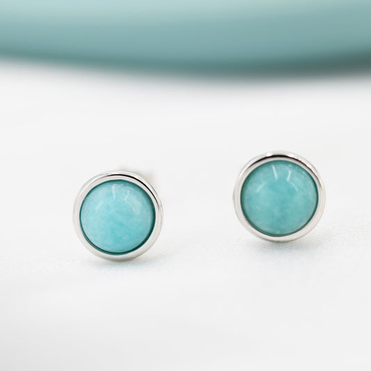 Sterling Silver Amazonite Stud Earrings, 5mm, Genuine Amazonite Gemstone Stud, Bezel, Minimalist Style