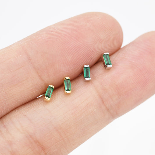 Emerald Green Tiny Baguette CZ Stud Earrings in Sterling Silver, Silver or Gold, Geometric Tiny CZ Earrings, Stacking Earrings
