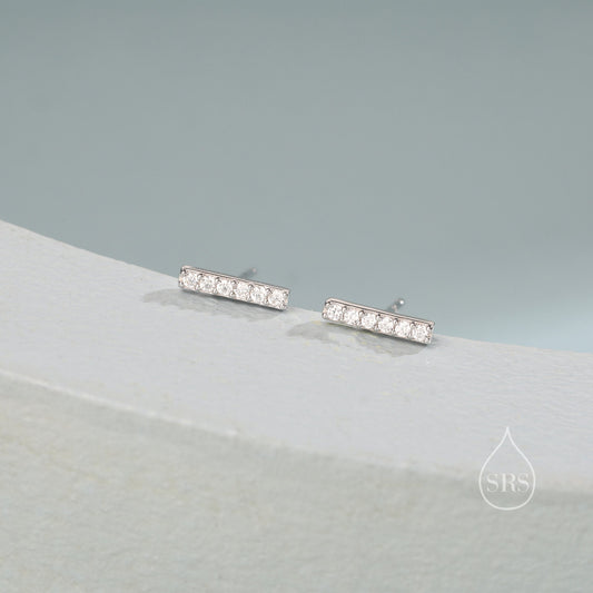 Sterling Silver CZ Crystal Bar Stud Earrings, Simple Geometric Minimalist Jewellery by SilverRainSilver