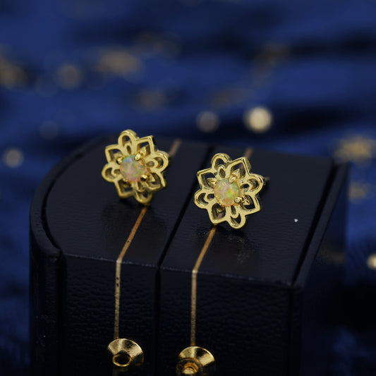 Vintage Style Opal Stud Earrings in Sterling Silver, Silver or Gold, Opal Earrings
