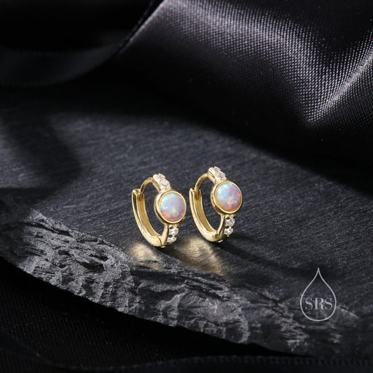 White Opal CZ Huggie Hoop Earrings in Sterling Silver, Silver or Gold, Tiny Opal Hoops, Opal Hoops, Single Opal Hoops
