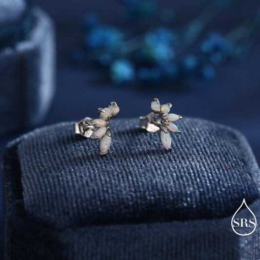 Sterling Silver White Opal Marquise Cluster Stud Earrings, Marquise Fan Stud, Opal Crown Stud, Gold or Silver, Minimalist
