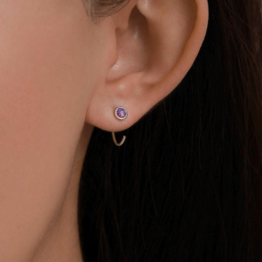Minimalist Purple Opal Huggie Hoop Threader Earrings in Sterling Silver, Gold or Silver, Pull Through Open Hoop Earrings