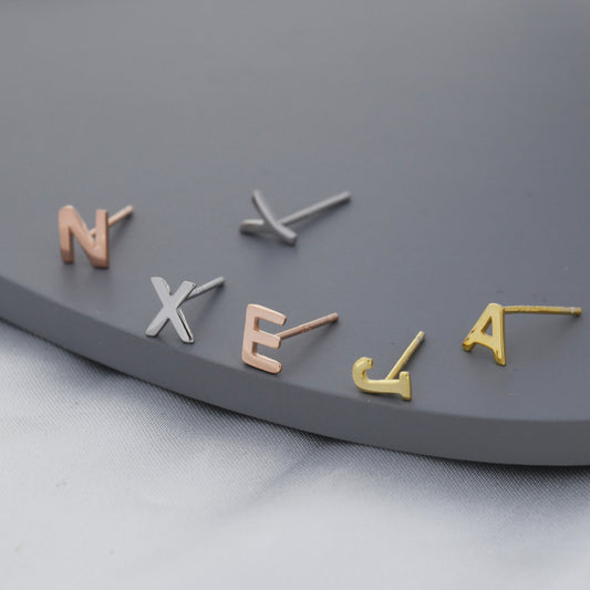 ONE Small Initial Letter Stud Earring in Sterling Silver, Silver, Rose Gold, Gold, Personalised, Alphabet Letter Monogram
