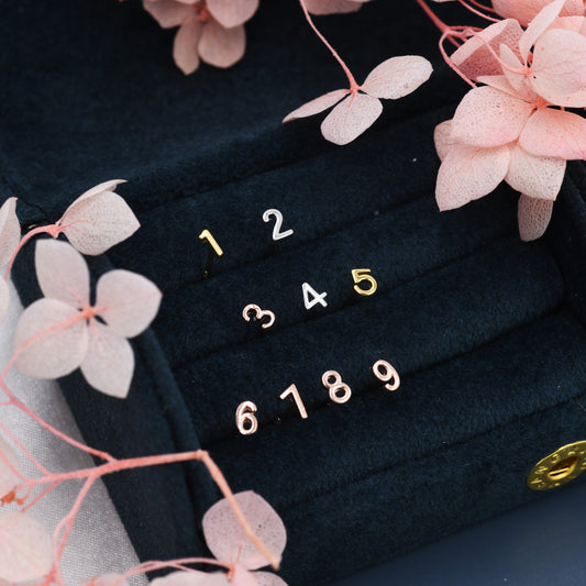 ONE Tiny Number Stud Earring in Sterling Silver, Silver, Rose Gold, Gold, Personalised, Stacking Earrings, Extra Tiny
