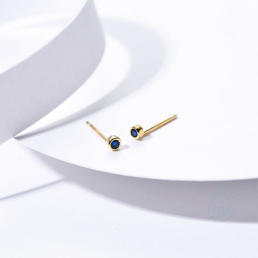 Extra Tiny 2mm CZ Stud Earrings in Sterling Silver, Silver or Gold, 2mm CZ Earrings, Blue, Green, Black, Turquoise, Clear