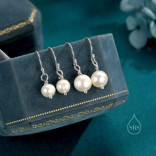 Natural Freshwater Pearl Drop Hook Earrings in Sterling Silver, Silver or Gold, slightly Irregular Shaped Round Pearl Earrings, Minimalist