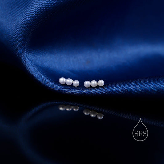 Natural Pearl Trio Stud Earrings in Sterling Silver, Curved Freshwater Pearl Mini Bar Earrings, Silver or Gold or Rose Gold, Pearl Earrings
