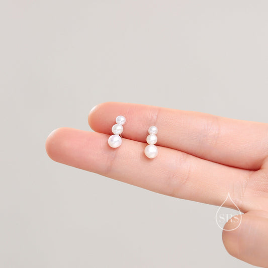 Sale!Natural Pearl Trio Stud Earrings in Sterling Silver, Freshwater Pearl Mini Bar Earrings, Silver or Gold, Pearl Earrings, Pearl Stud