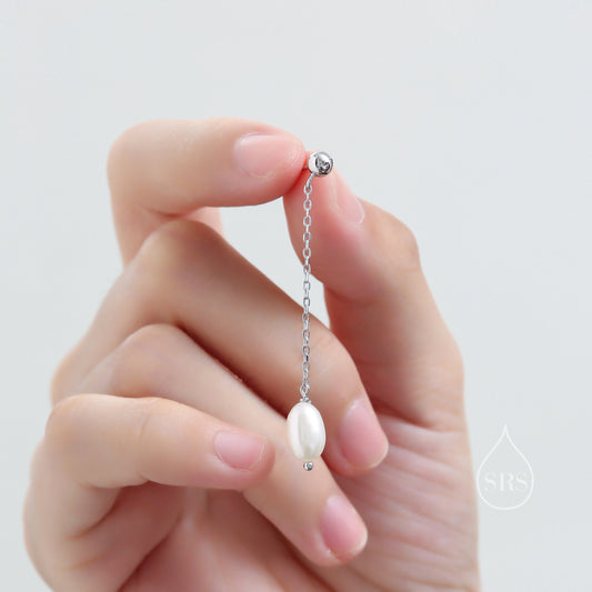Sale! Genuine Fresh Water Pearl Threader Earrings in Sterling Silver, 9cm Long Ear Threaders, Natural Drop Baroque Pearl Ear Threaders,