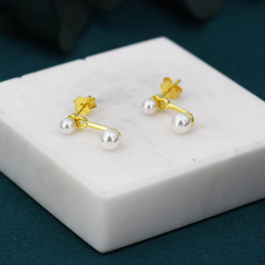 Tiny Double Pearl Ear Jacket in Sterling Silver, Front and Back Earrings , Pearl Earrings, Dainty Jewellery