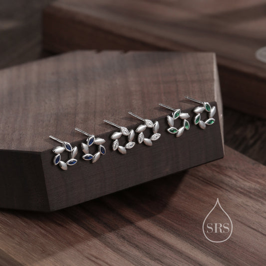 Sterling Silver Tiny Flower Wreath Stud Earrings - Silver or Gold or Rose Gold, CZ Circle Flower and Butterfly Stud Earrings