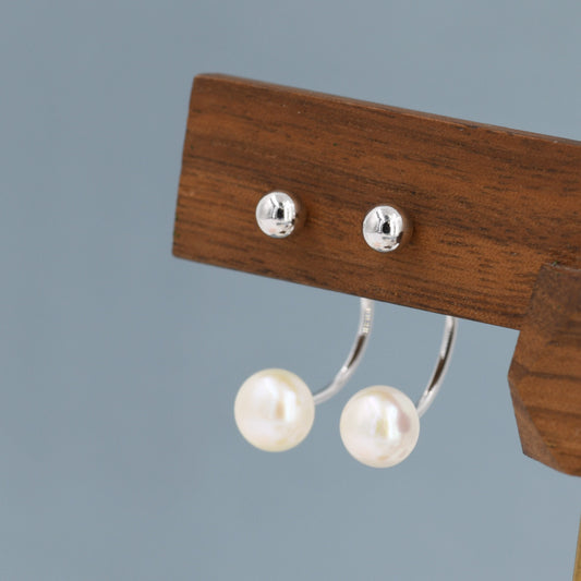 Ball and Natural Freshwater Pearl Ear Jacket in Sterling Silver, Silver or Gold, Front and Back Earrings , Dainty Jewellery