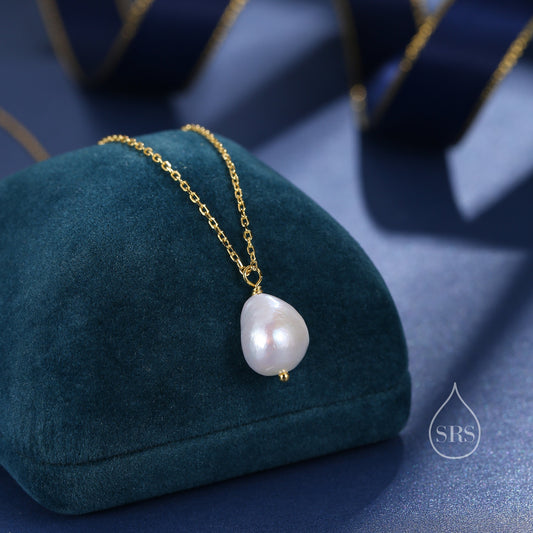 Delicate Genuine Baroque Pearl Pendant Necklace in Sterling Silver, Silver or Gold, Minimalist Pearl, One-of-a-kind Semi-precious