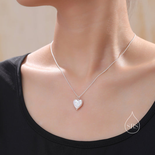 Genuine Heart Baroque Pearl Pendant Necklace in Sterling Silver, Delicate Keshi Pearl Star Necklace, Heart Pearl Necklace