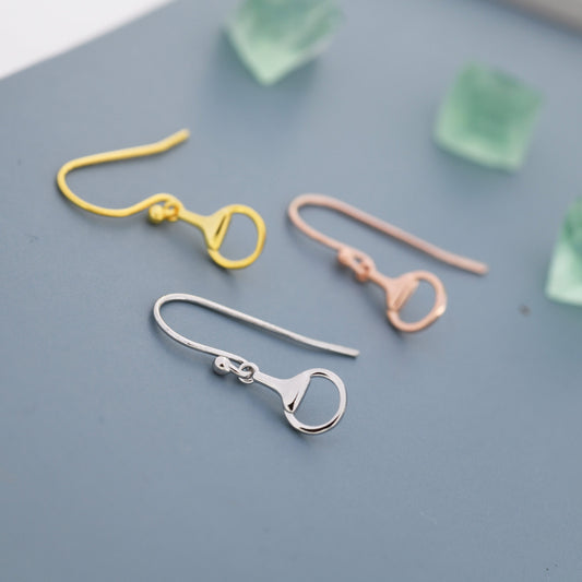 Snaffle Bit Drop Hook Earrings in Sterling Silver, Silver, Gold or Rose Gold, Horse Earrings, Horse Charm, Horse Gift, Horse Jewellery