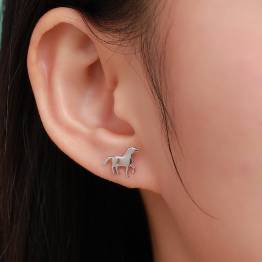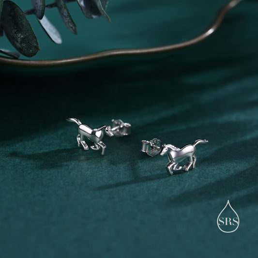 Tiny Little Running Horse Earrings in Sterling Silver, Silver or Gold or Rose Gold, Horse Lover Earrings, Horse Gift, Horse Jewellery