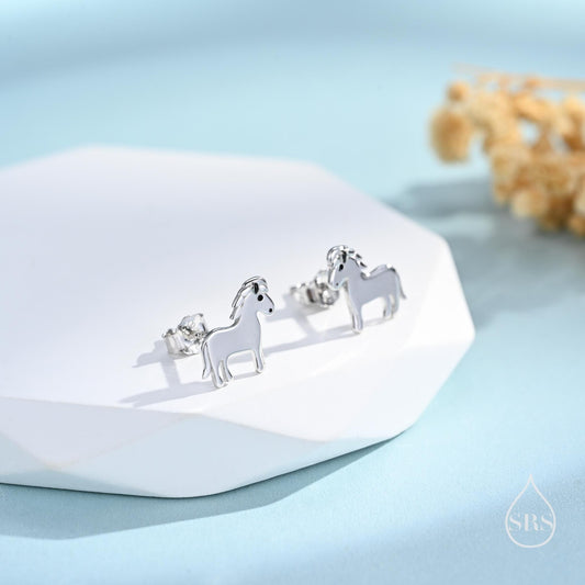 Shetland Pony Stud Earrings in Sterling Silver, Silver or Gold or Rose Gold, Sterling Silver Cute Baby Horse Earrings, Farm Earrings