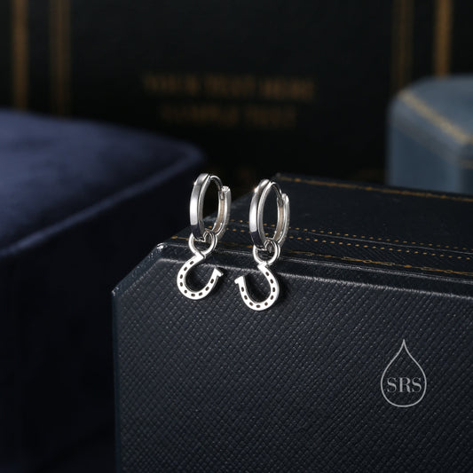 Horseshoe Huggie Hoop in Sterling Silver, Silver or Gold or Rose Gold, Horseshoe Earrings, Lucky Horseshoe Earrings,