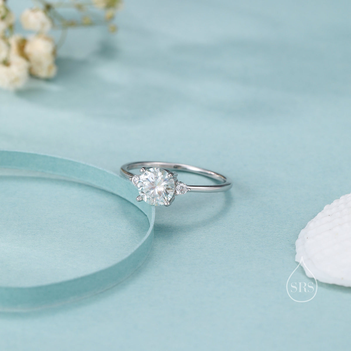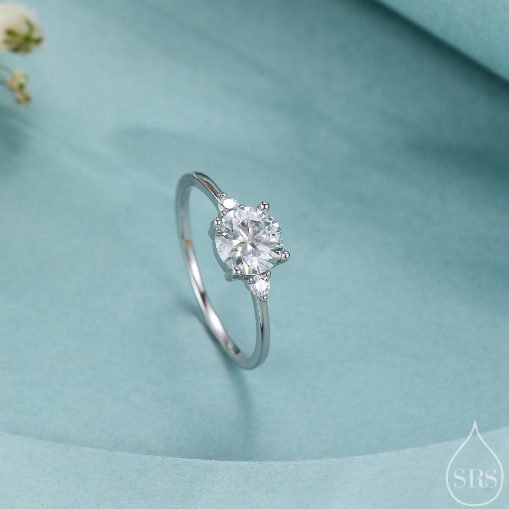 1 Carat Moissanite Diamond Classic Single Stone Engagement Ring in Sterling Silver, Genuine 1ct Brilliant Cut Moissanite Diamond.