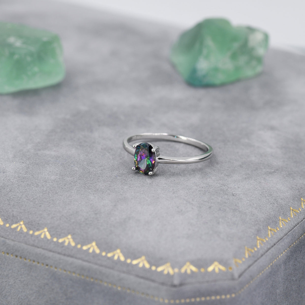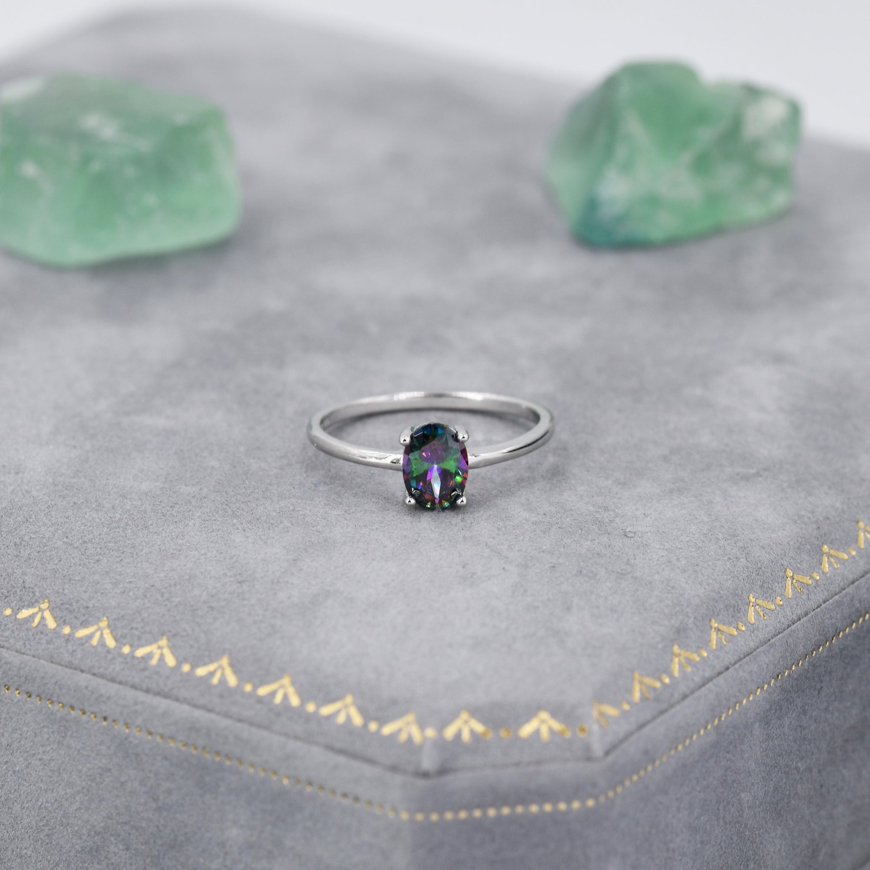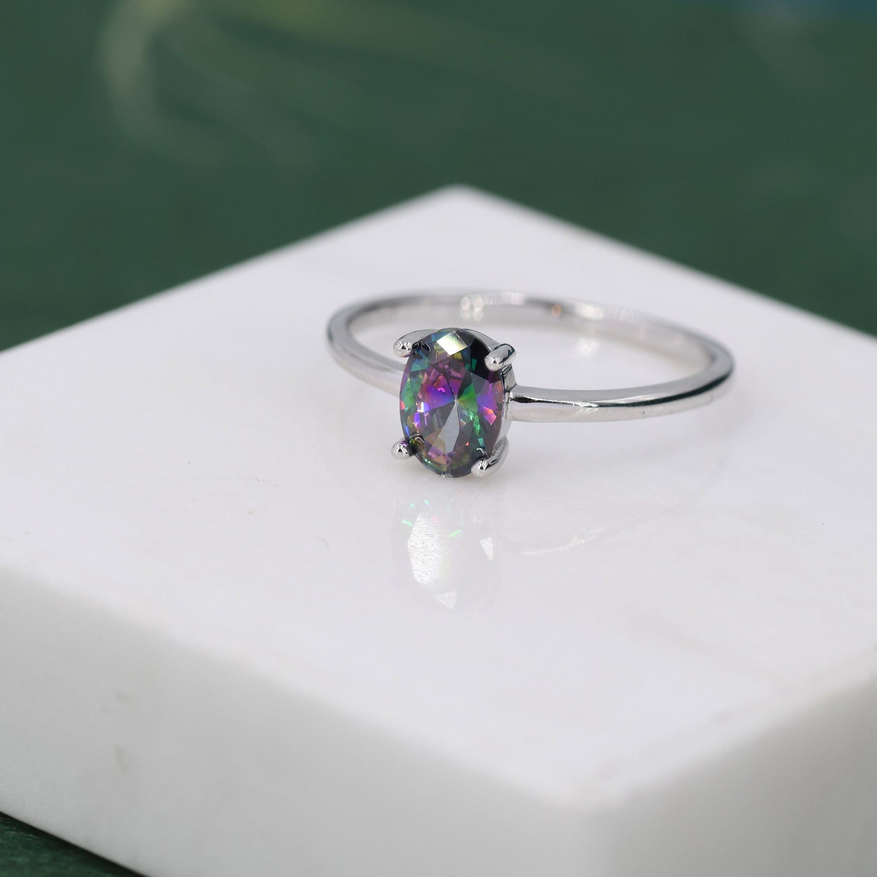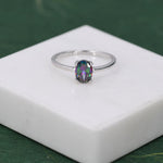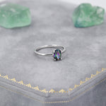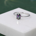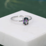 1 Carat Mystic Black CZ Oval Ring in Sterling Silver, 6.5mm Mystic Topaz Zircon Ring, US Size 5-8, Aurora Black Oval Ring