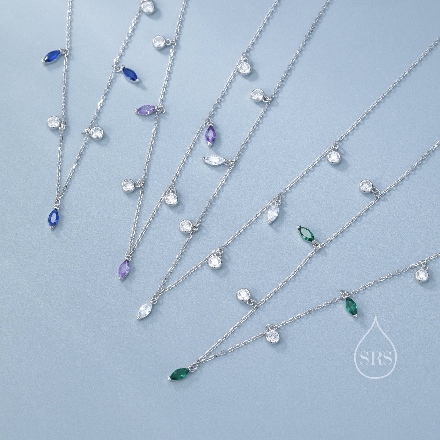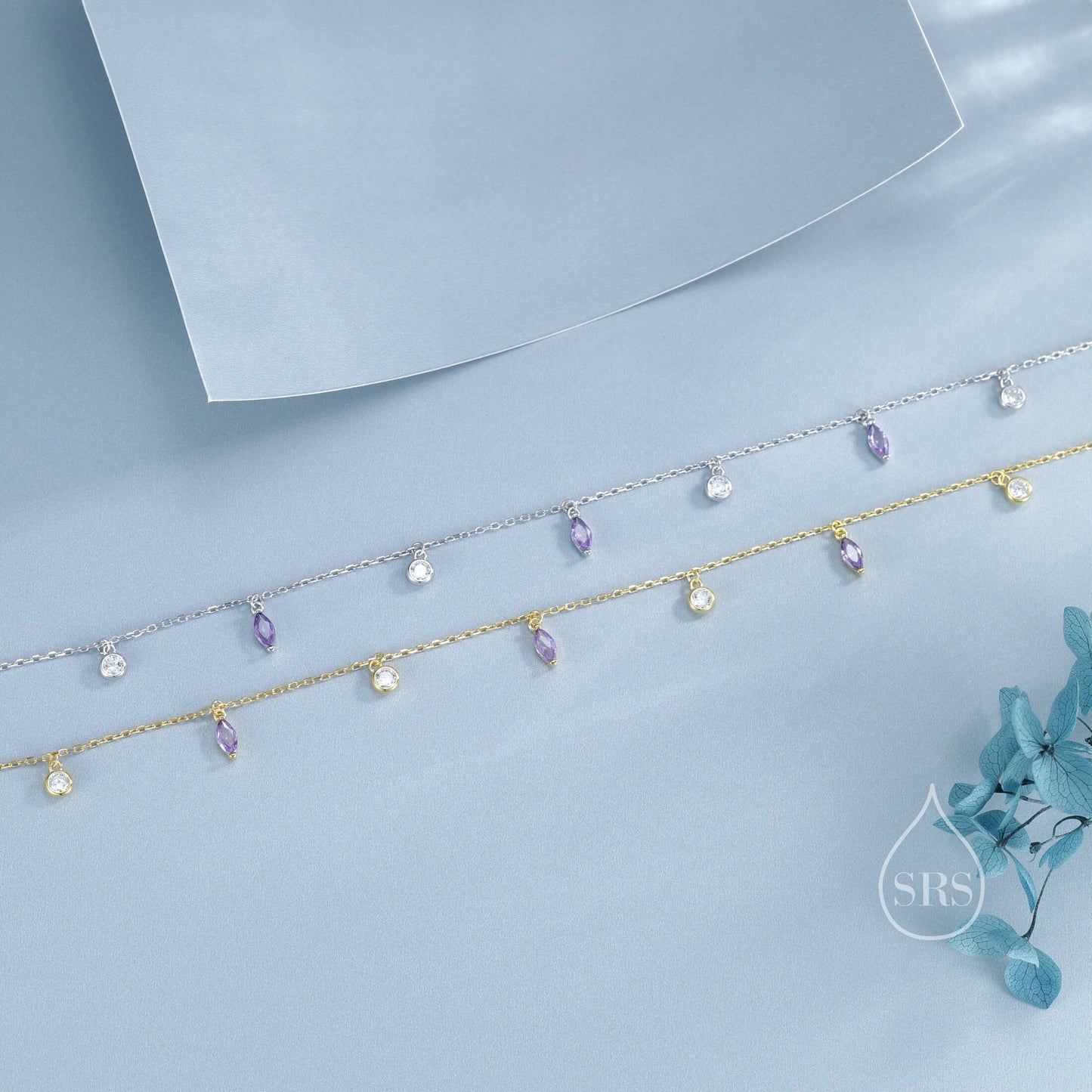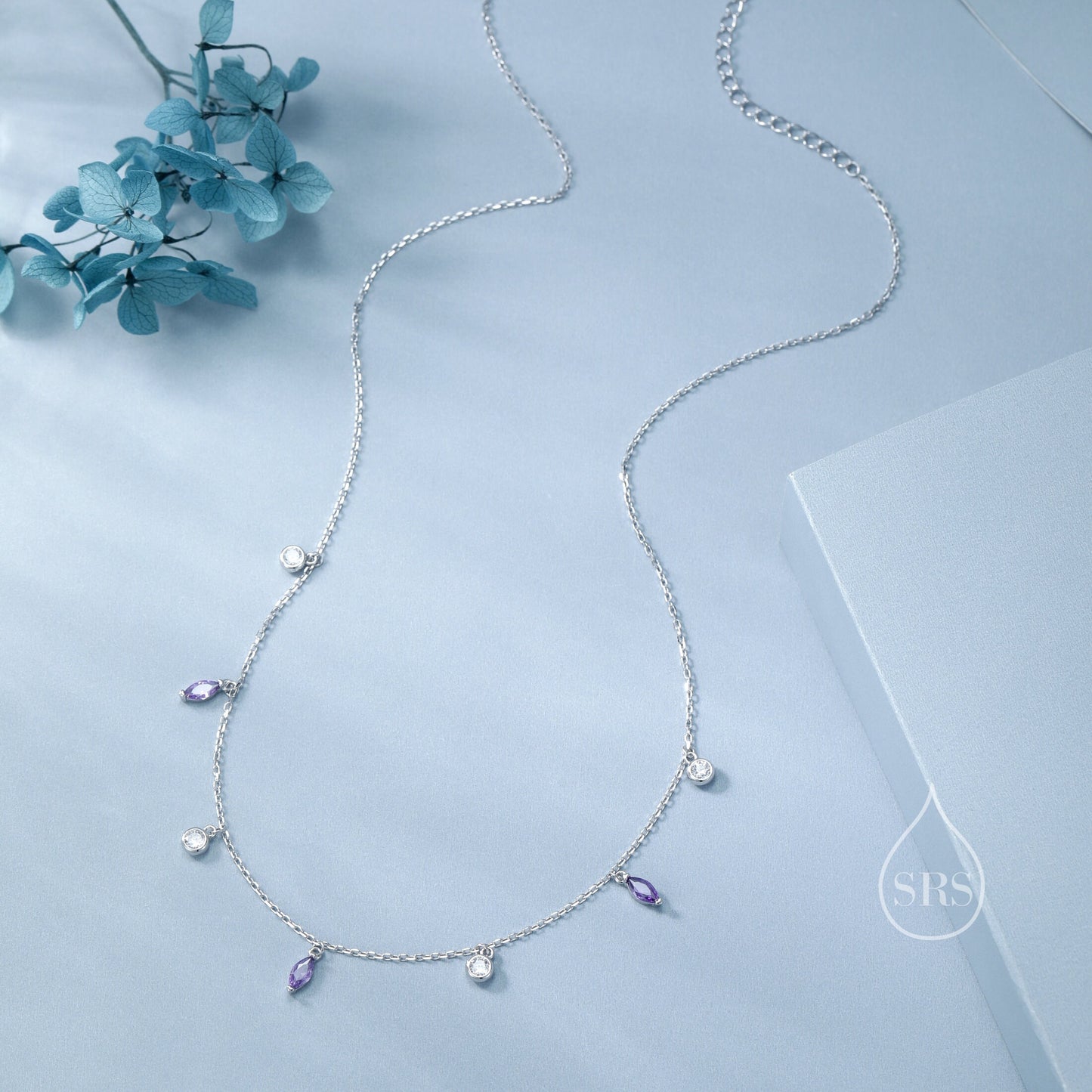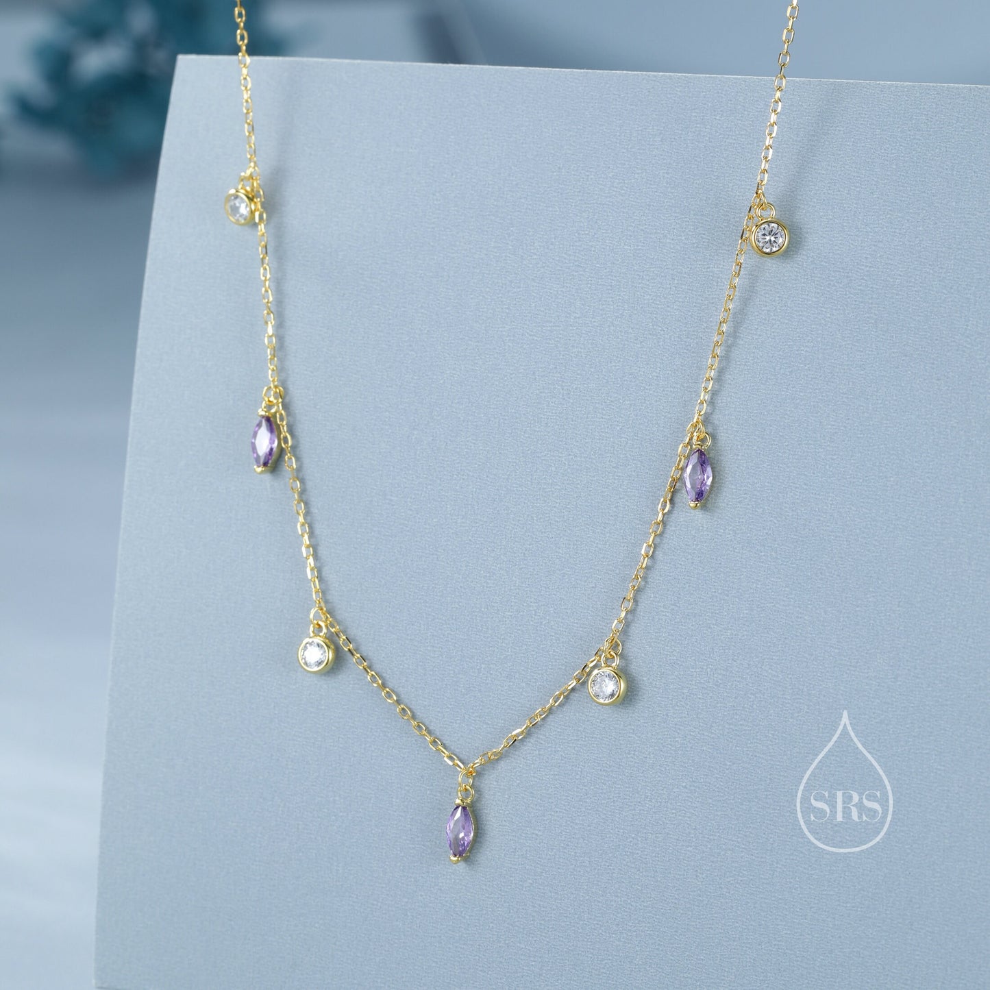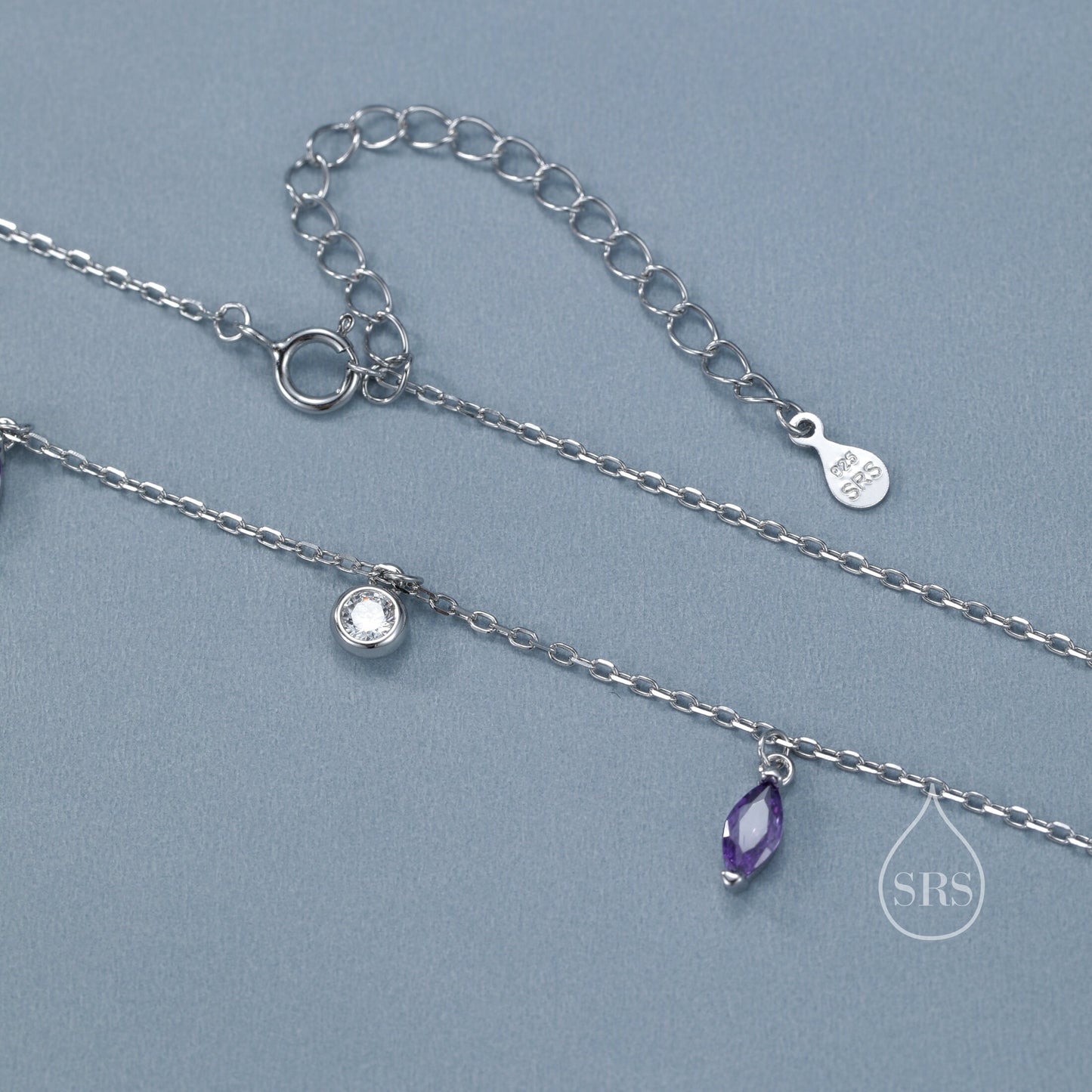 Amethyst Purple Marquise CZ Dangle Necklace in Sterling Silver, Silver or Gold, Satellite Crystal Necklace, Solid Silver Motif Necklace