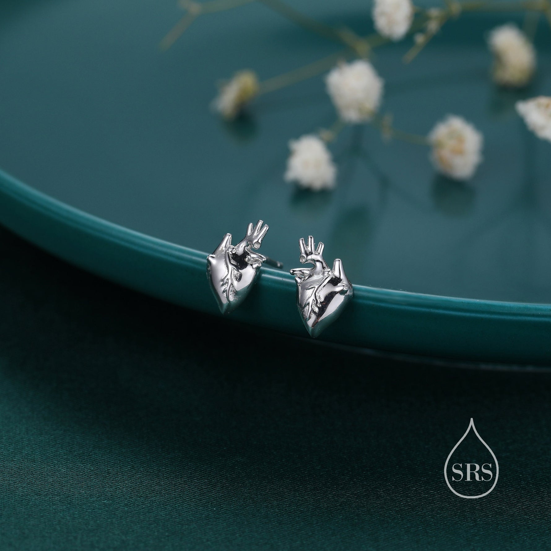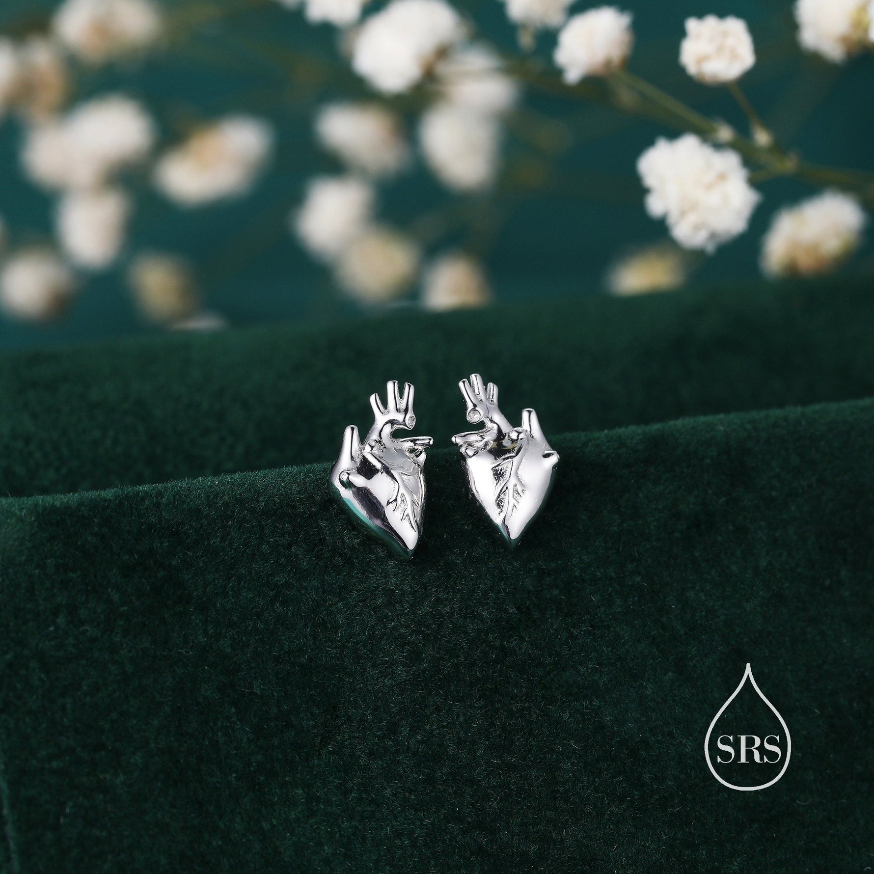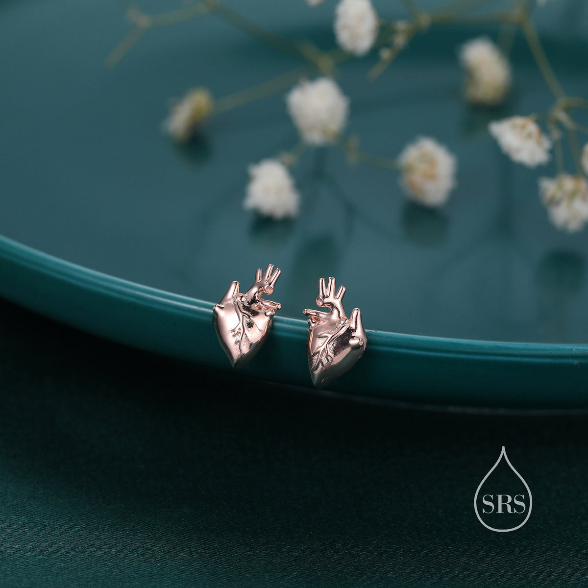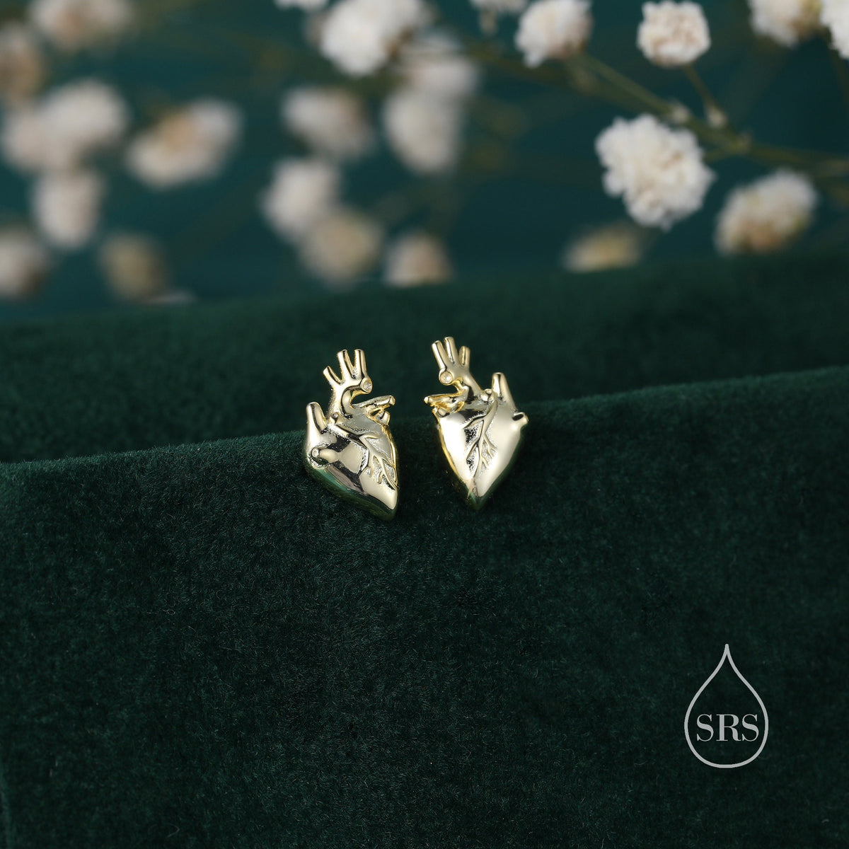 Anatomical Heart Stud Earrings in Sterling Silver, Silver, Gold or Rose Gold, Beating Heart Earrings, Heart Earrings, Gothic and Punk