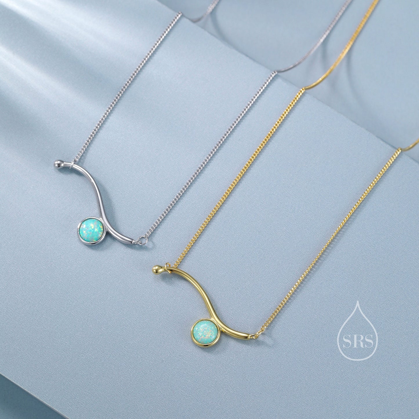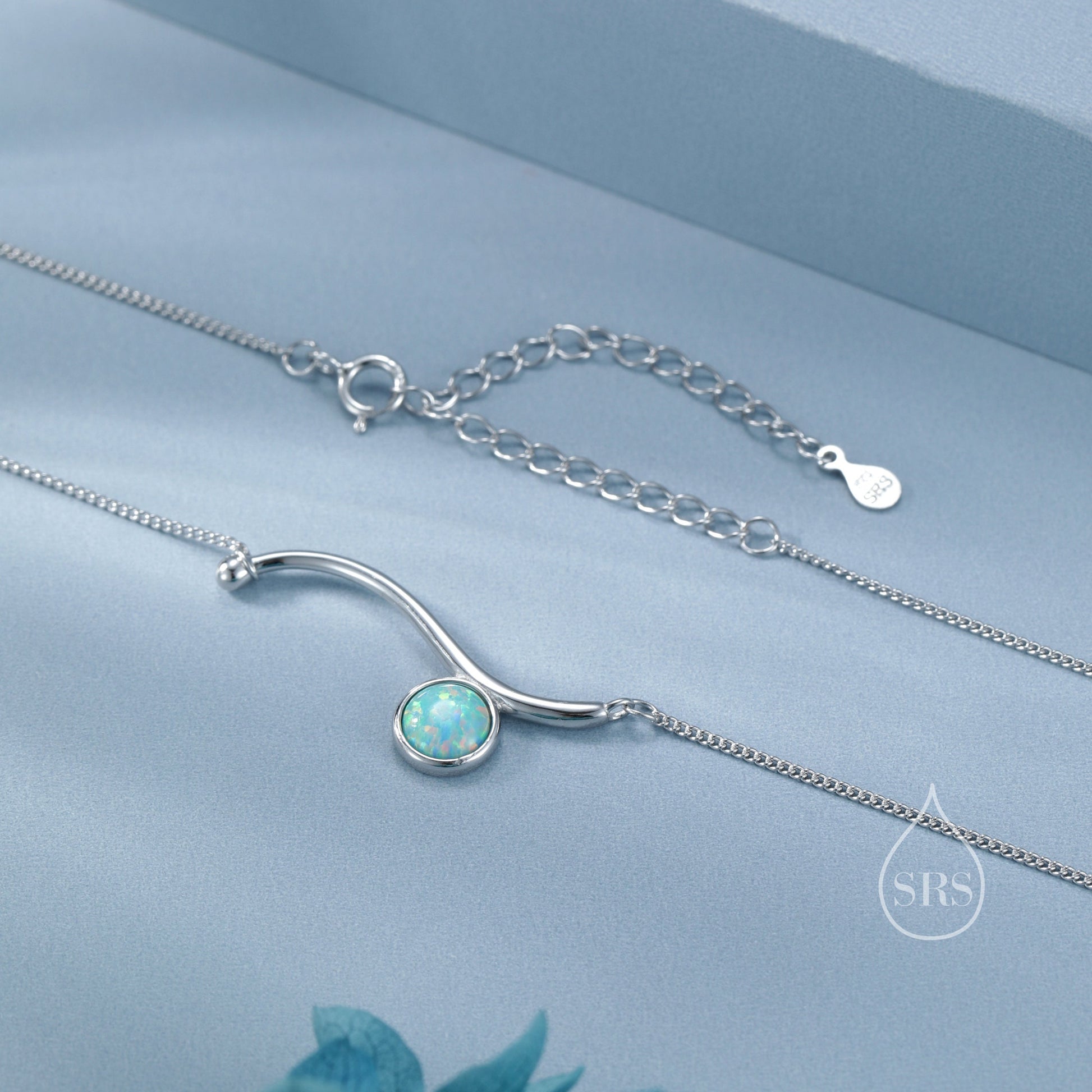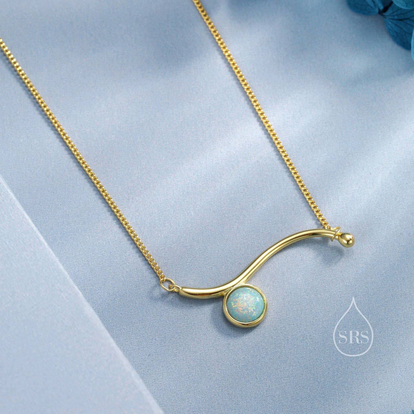 Aqua Green Opal Wave Pendant Necklace in Sterling Silver, Silver or Gold, Opal Wave Necklace, Lab Opal Necklace