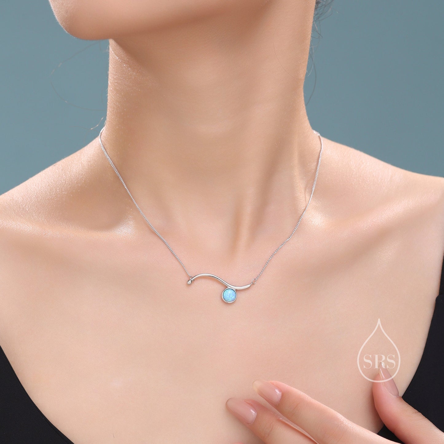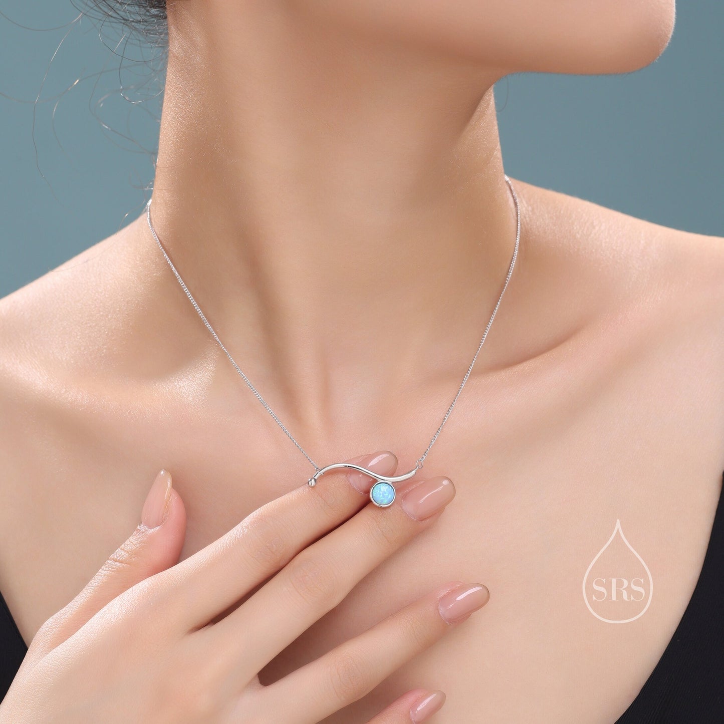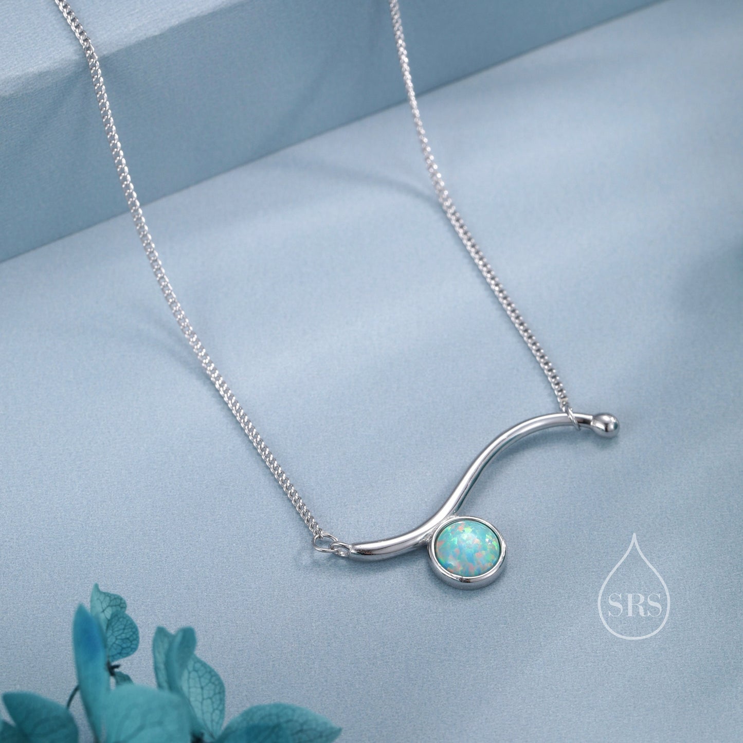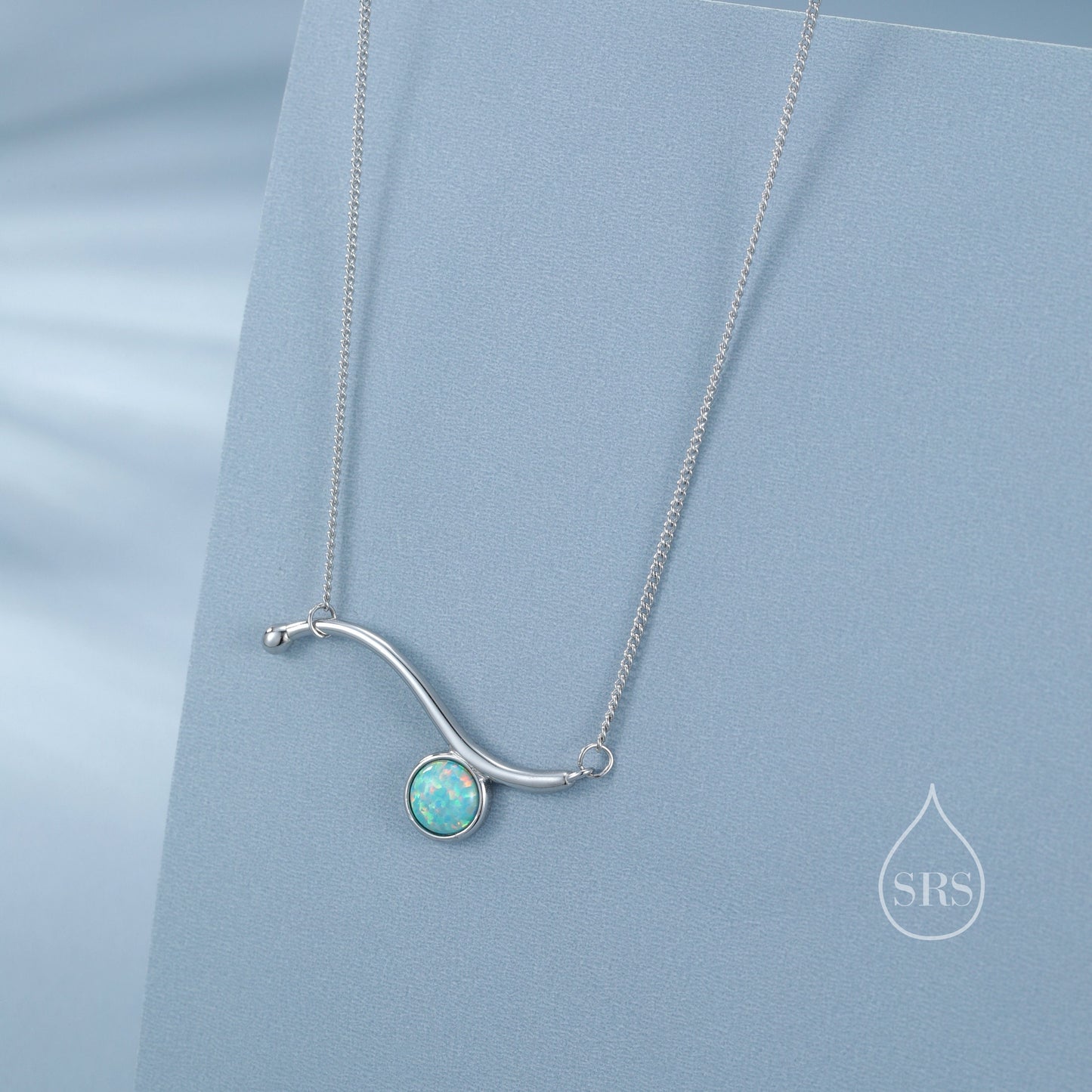 Aqua Green Opal Wave Pendant Necklace in Sterling Silver, Silver or Gold, Opal Wave Necklace, Lab Opal Necklace