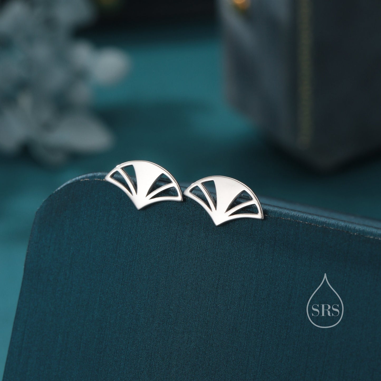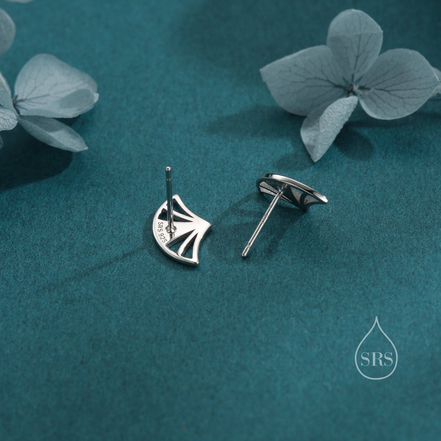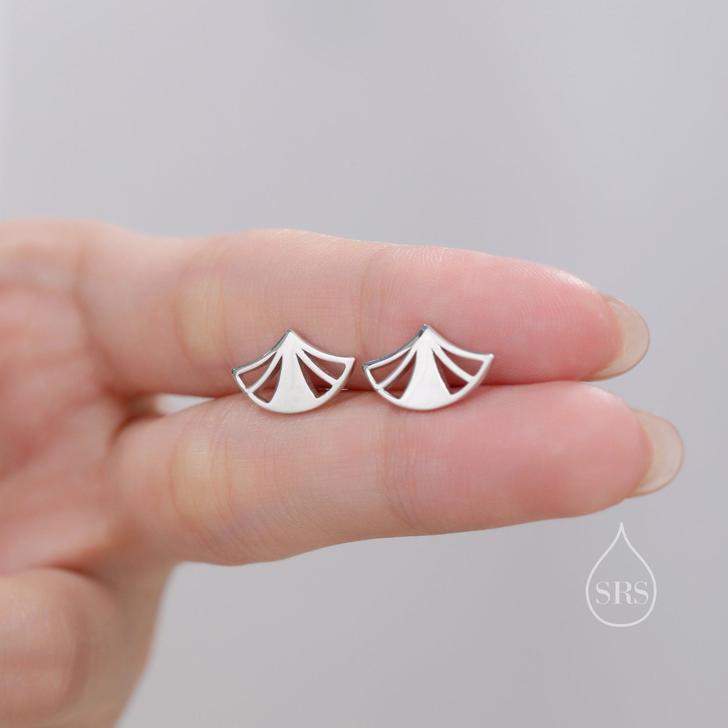 Art Deco Fan Stud Earrings in Sterling Silver, Silver or Gold or Rose Gold, Tiny and Delicate Fan Earrings, Art Deco Style