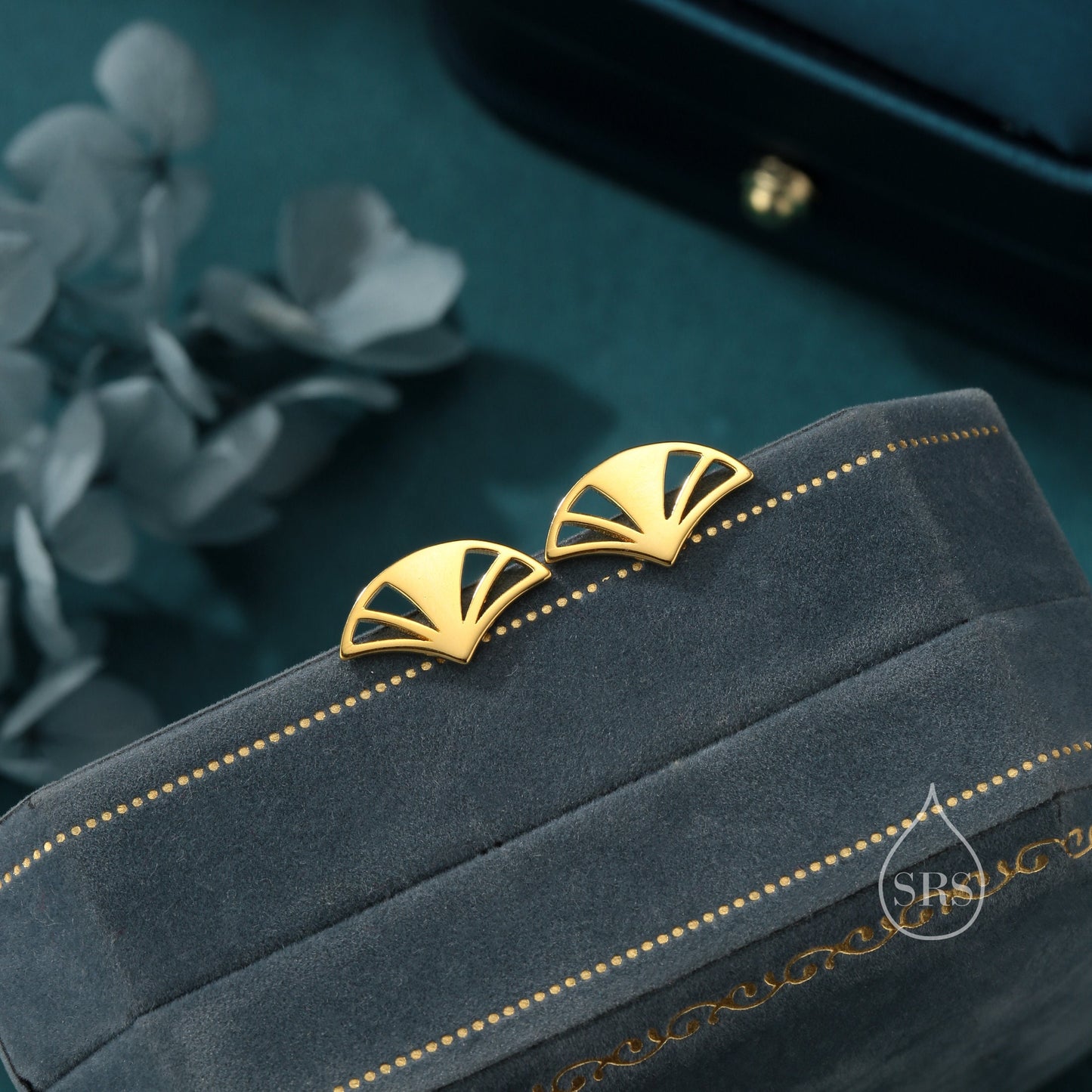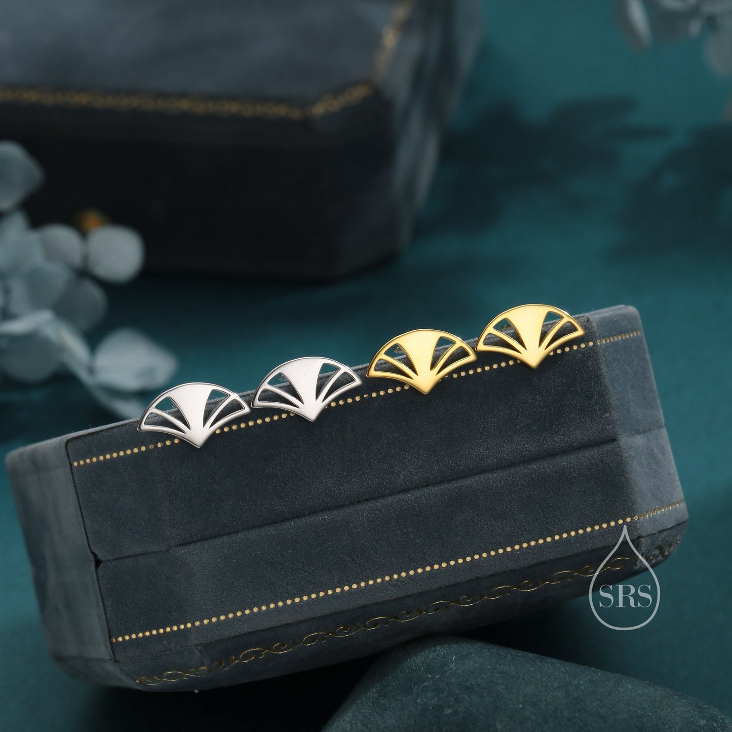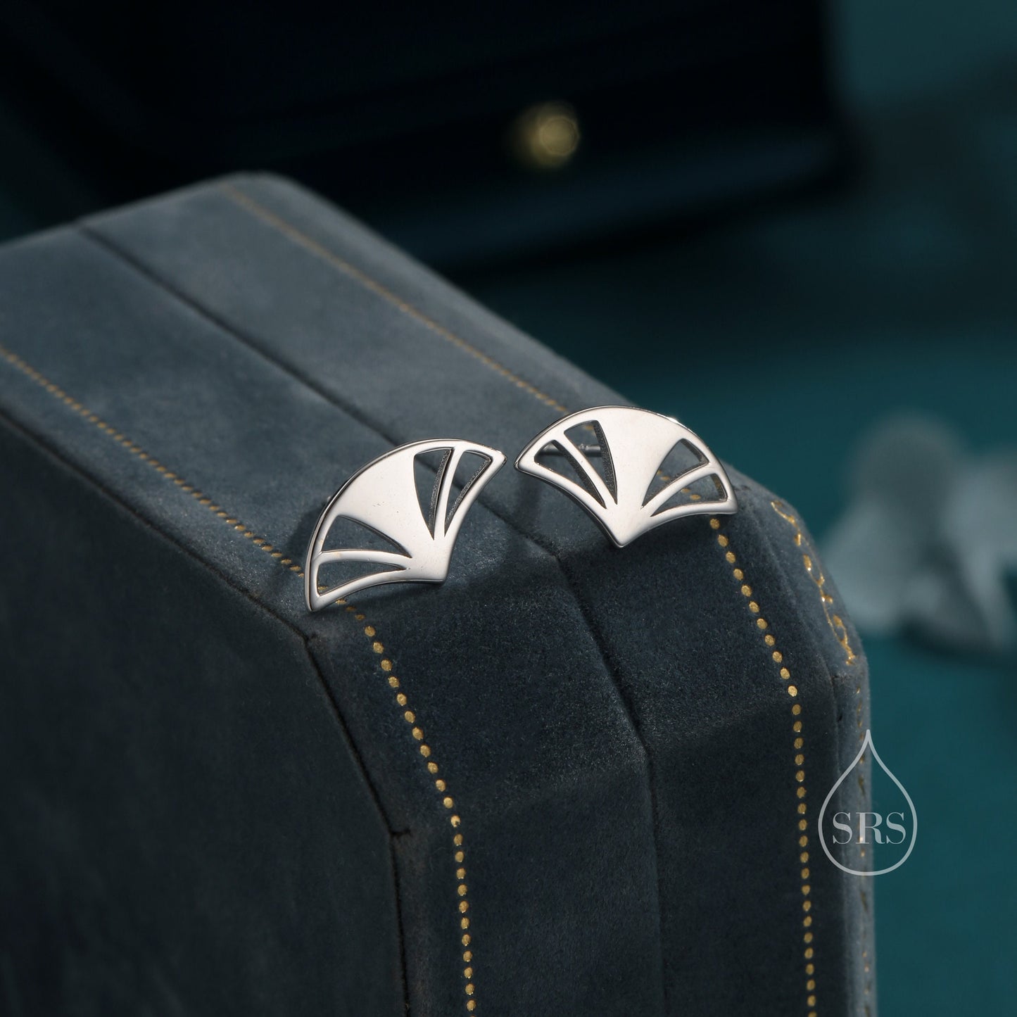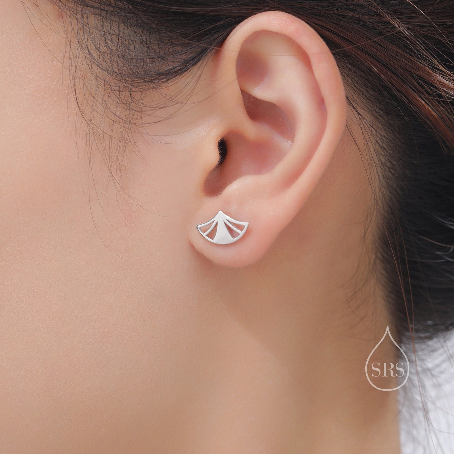 Art Deco Fan Stud Earrings in Sterling Silver, Silver or Gold or Rose Gold, Tiny and Delicate Fan Earrings, Art Deco Style