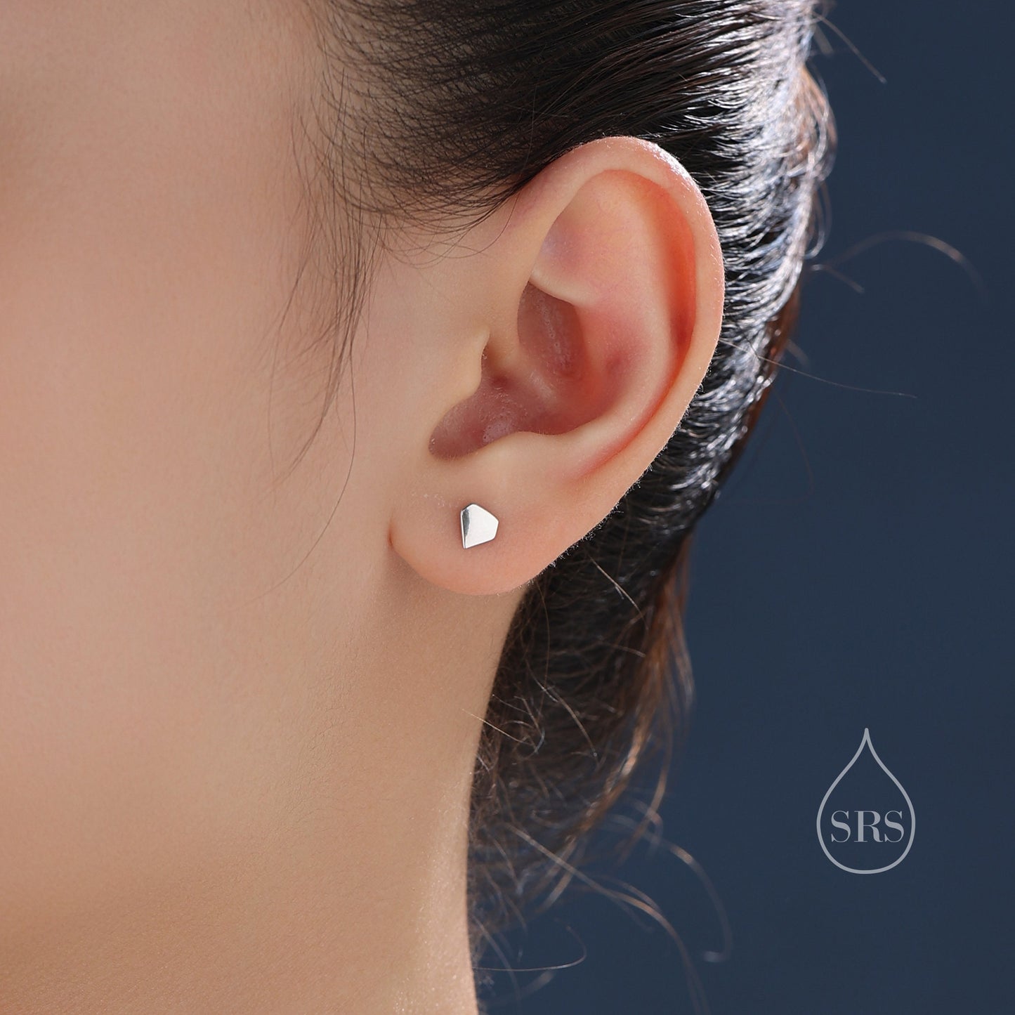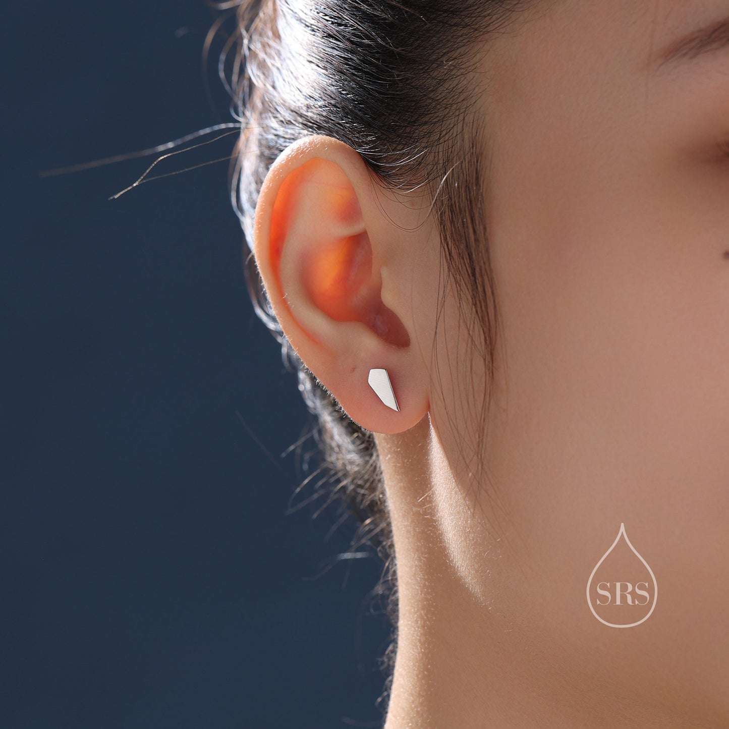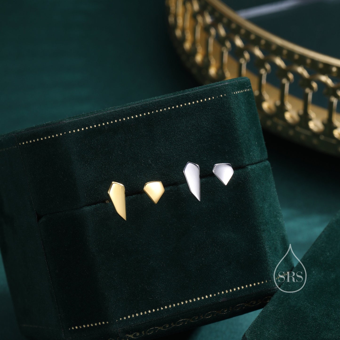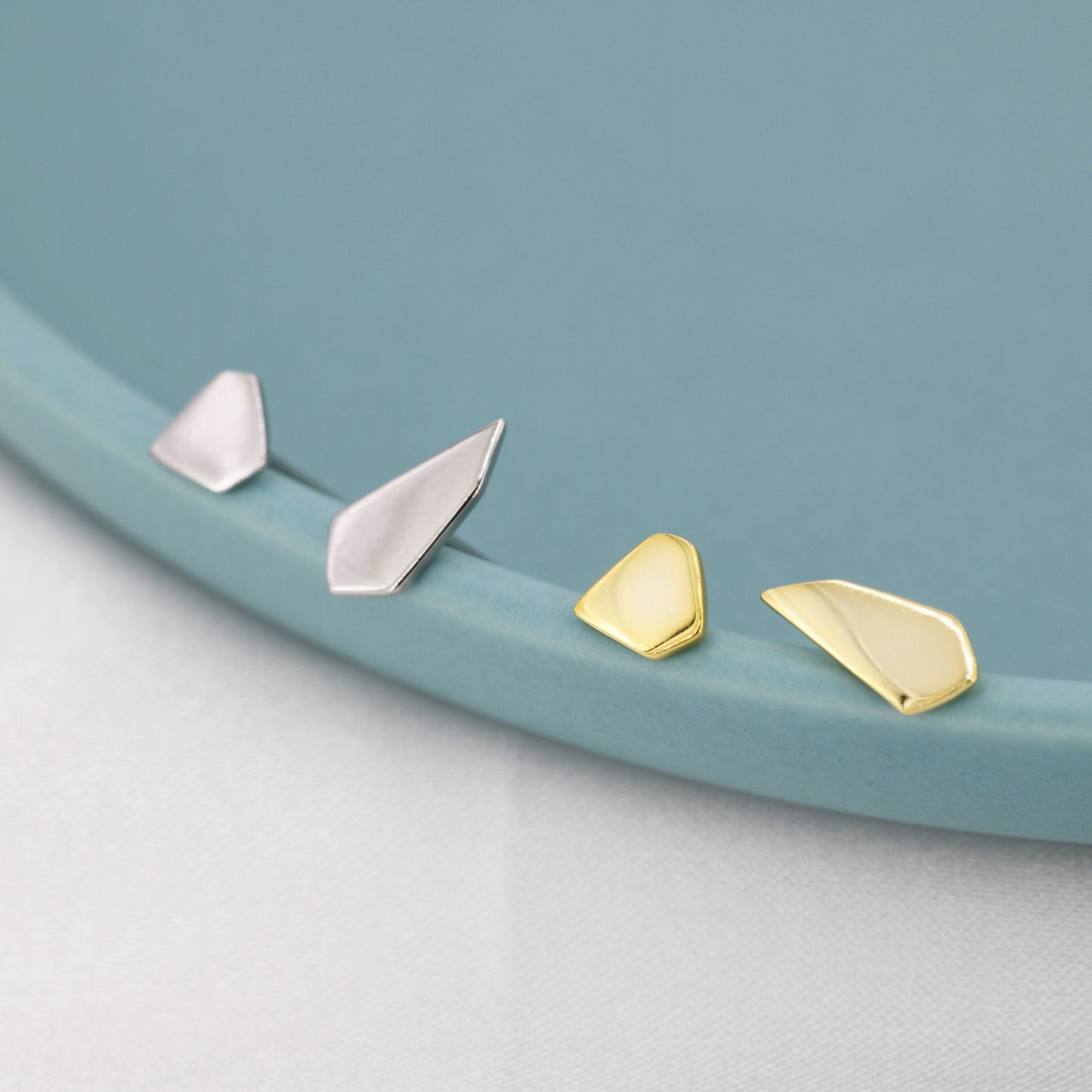 Asymmetric Polygon Stud Earrings in Sterling Silver, Silver or Gold, Mismatched Geometric Minimalist Design
