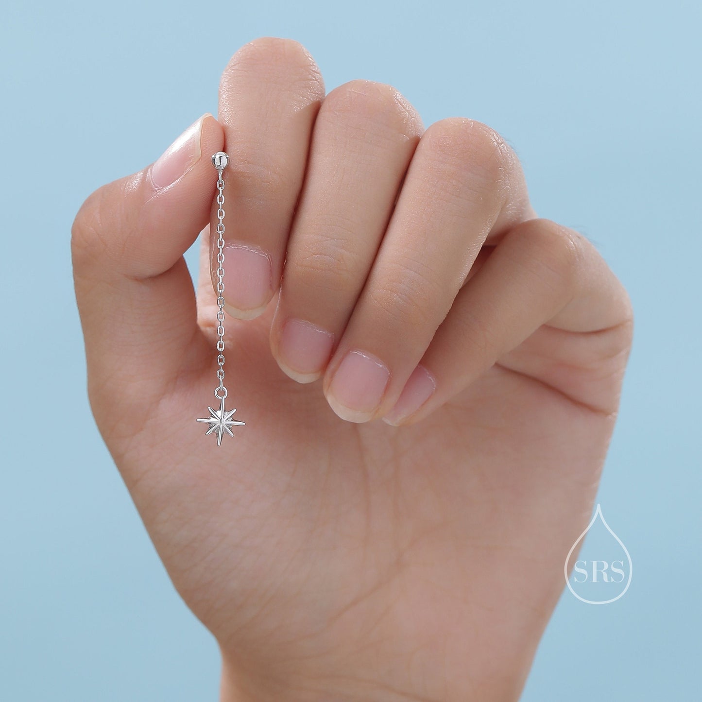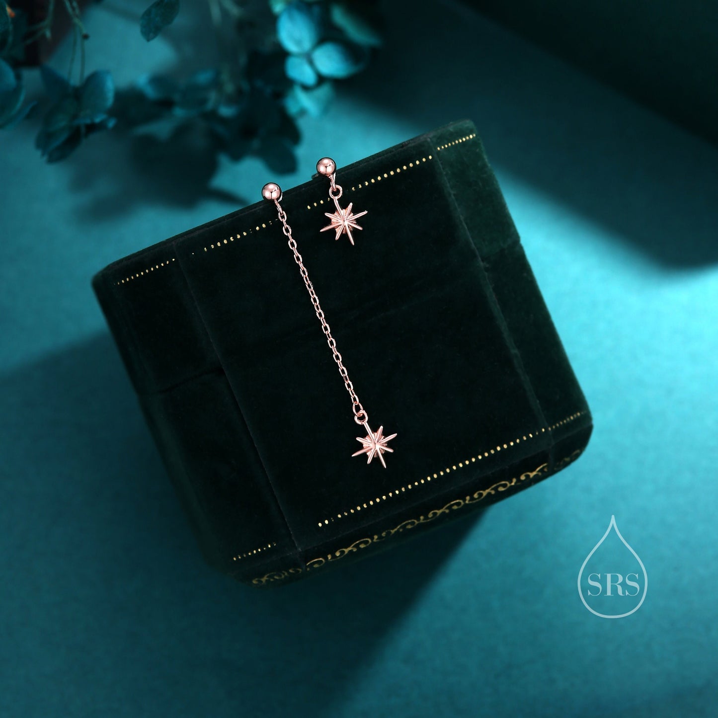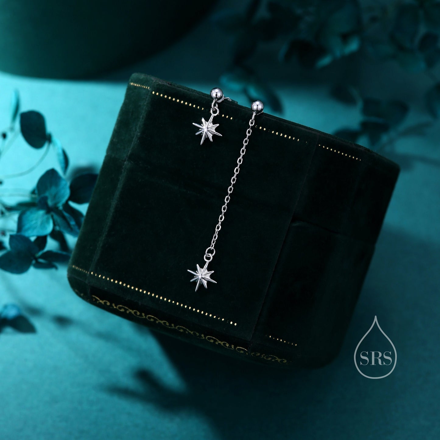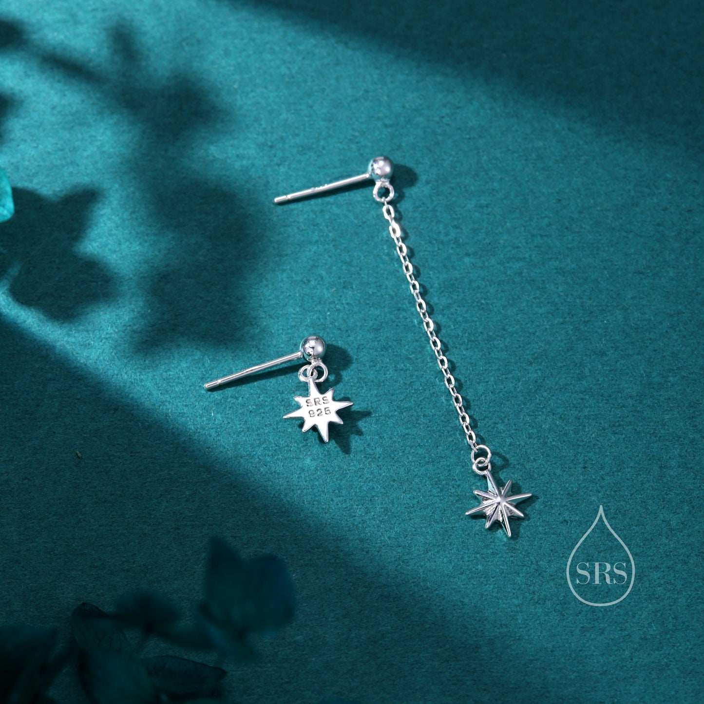 Asymmetric Sterling Silver Starburst Drop Stud Earrings, Silver, Gold or Rose Gold, North Star Earrings, Sunburst Earrings