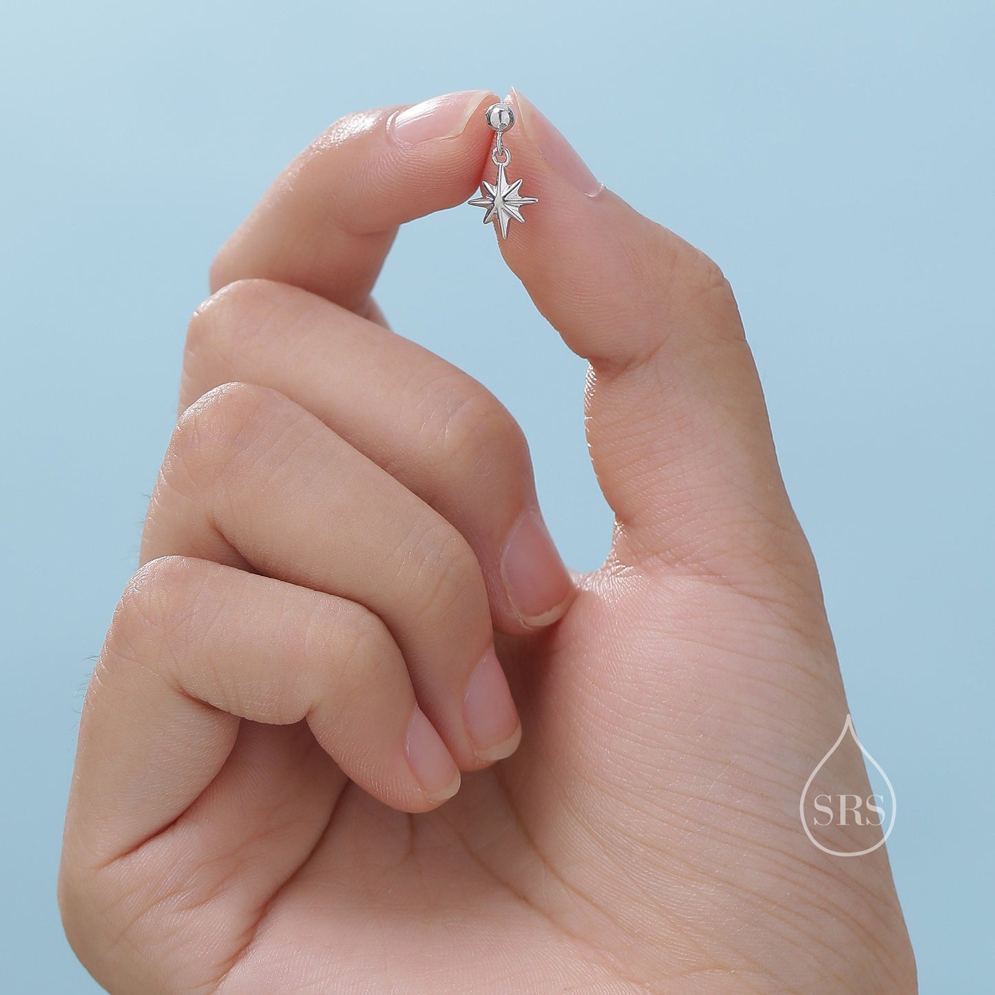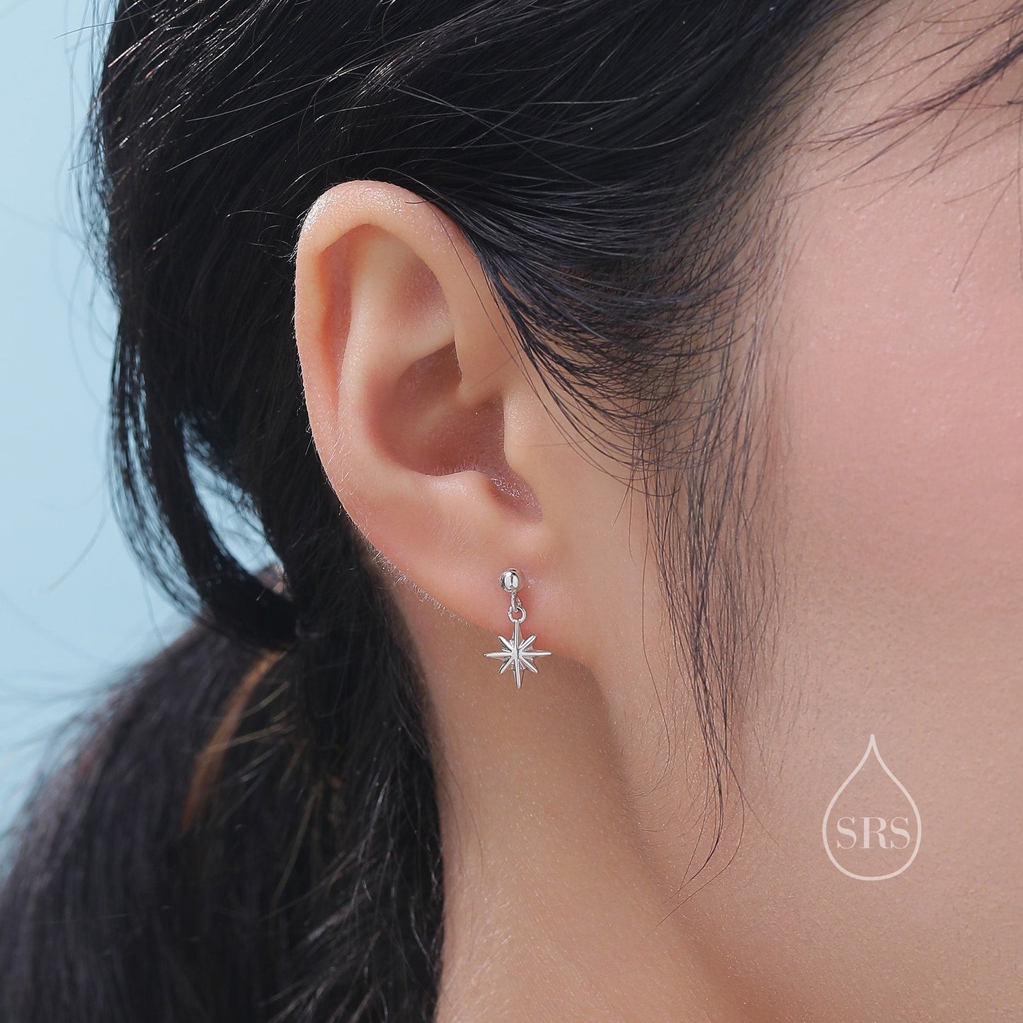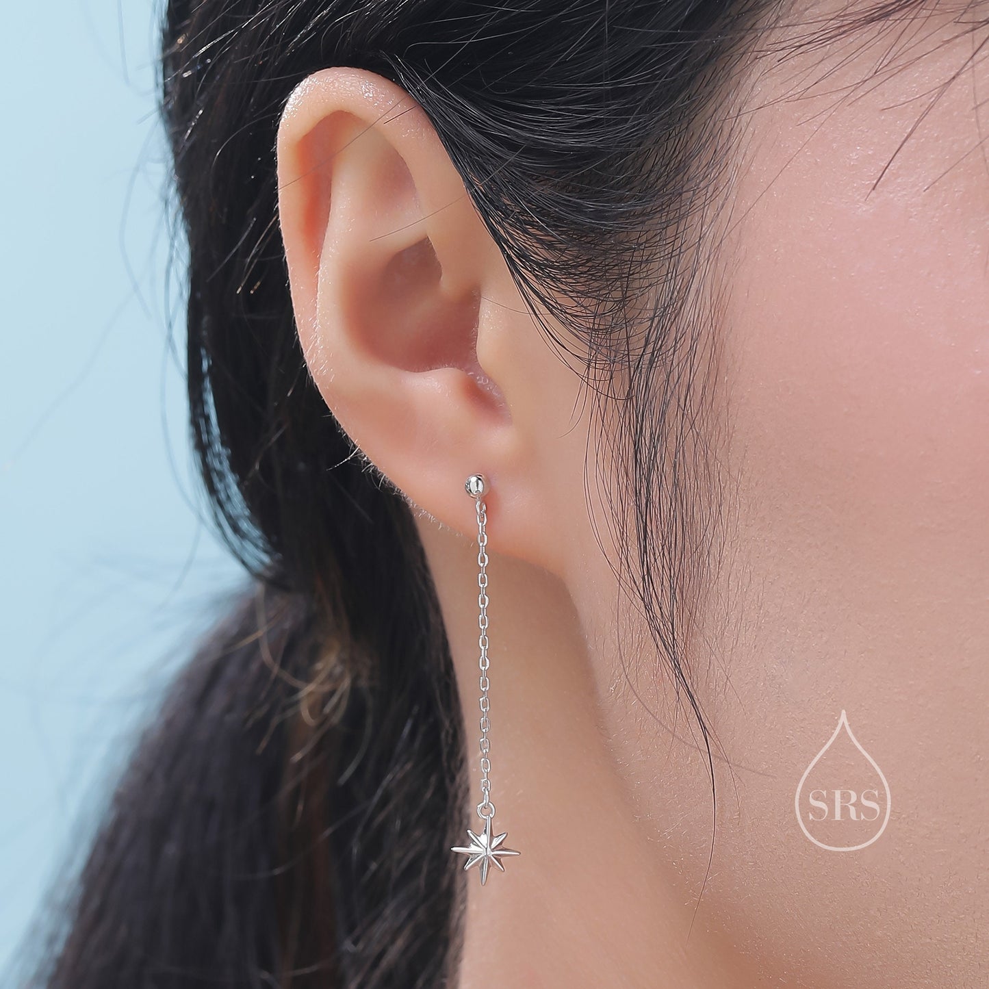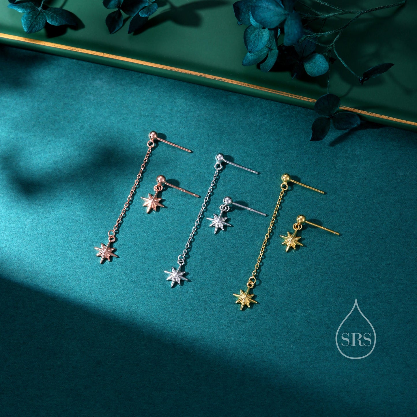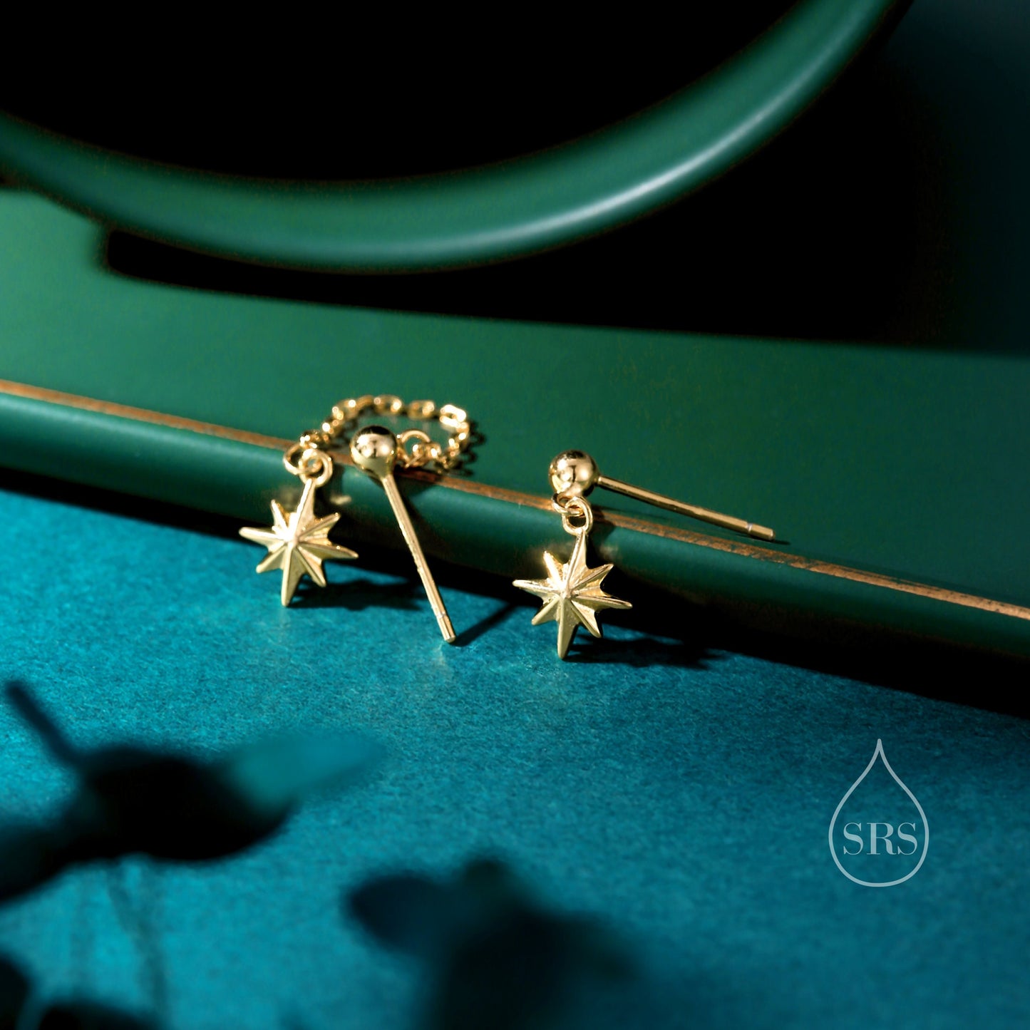 Asymmetric Sterling Silver Starburst Drop Stud Earrings, Silver, Gold or Rose Gold, North Star Earrings, Sunburst Earrings