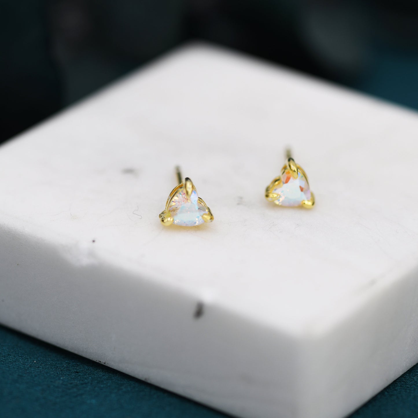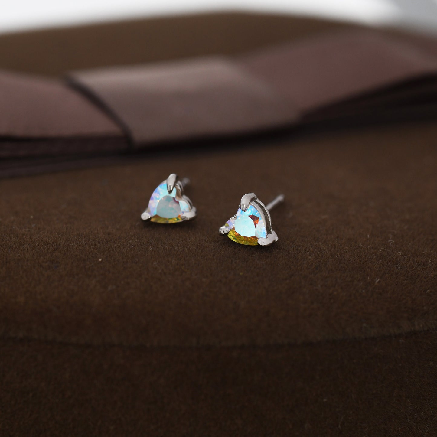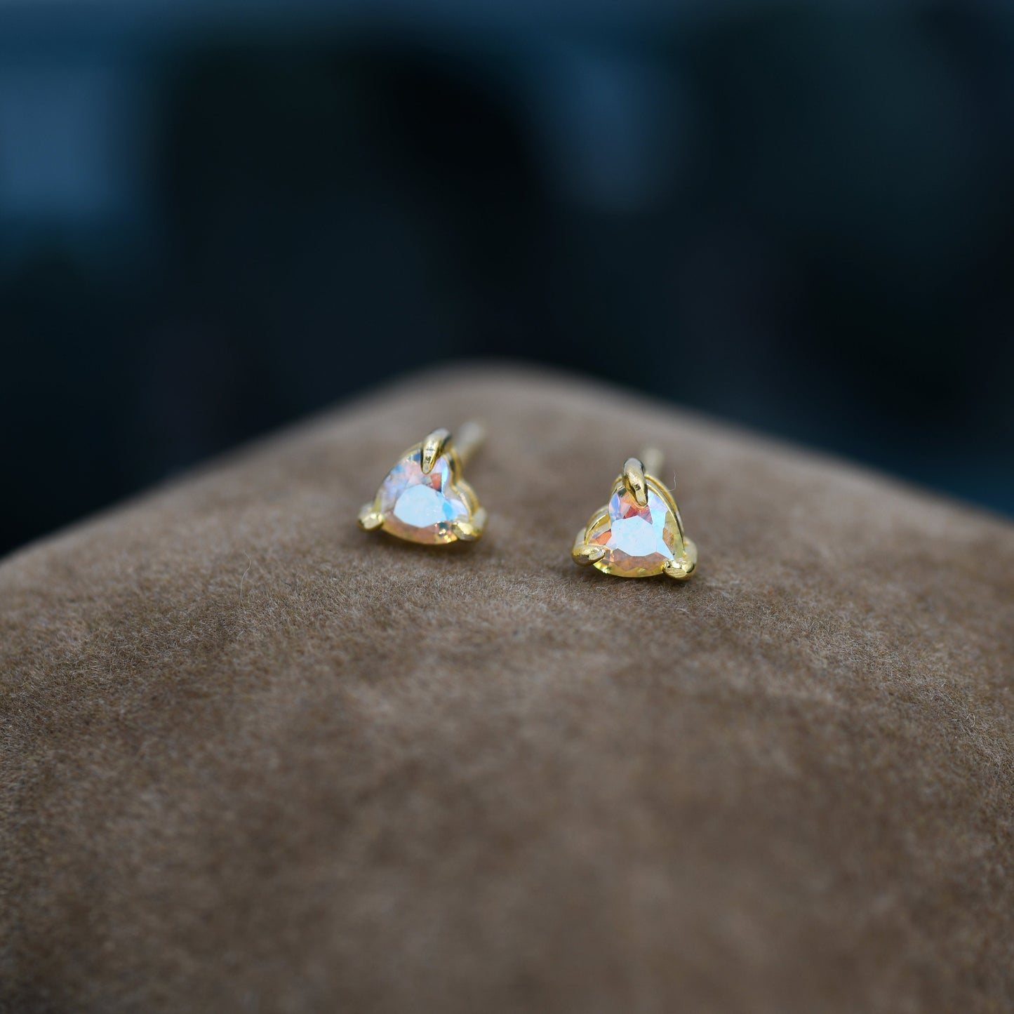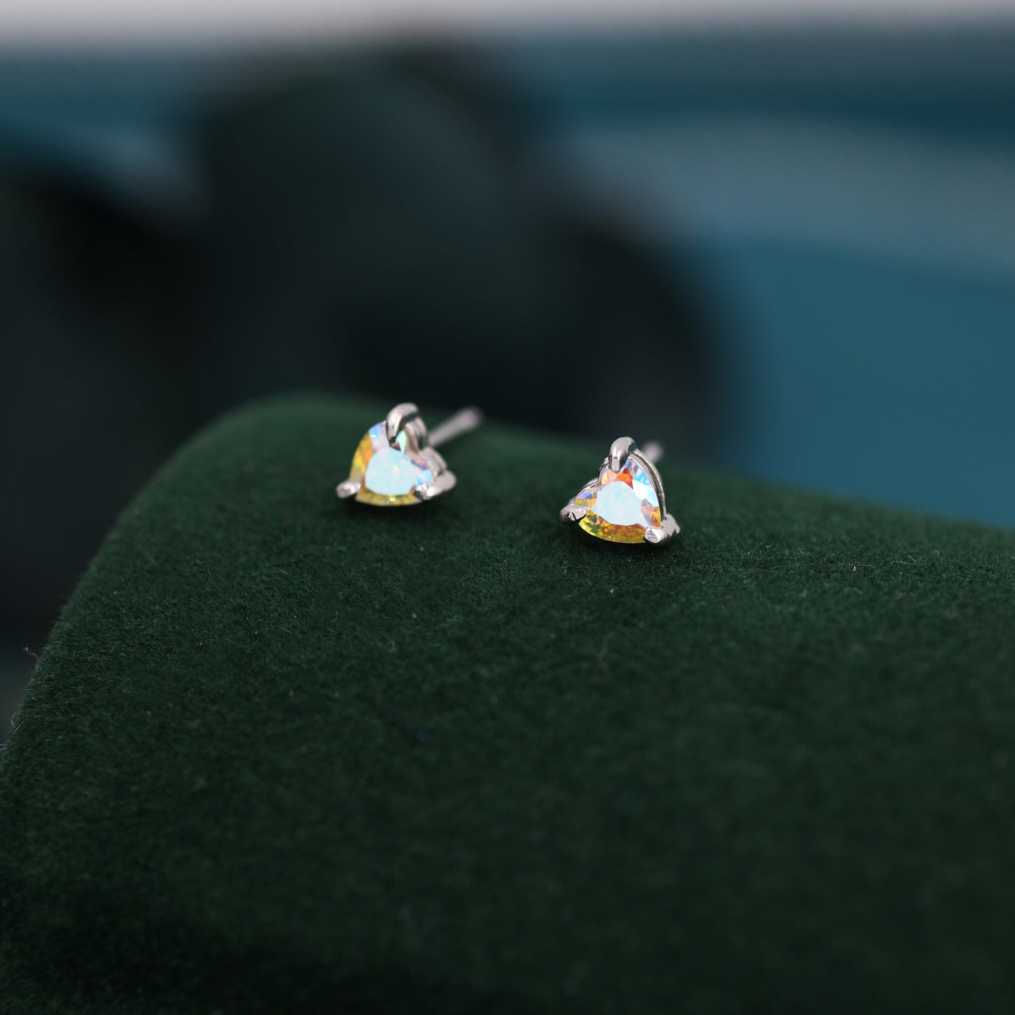 Aurora Borealis Heart Stud Earrings in Sterling Silver, AB CZ Heart Earrings, Aurora Colour Changing Heart Earrings