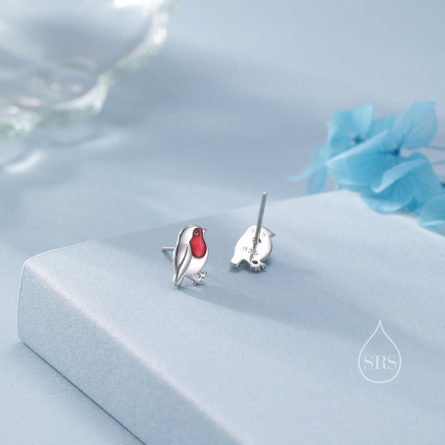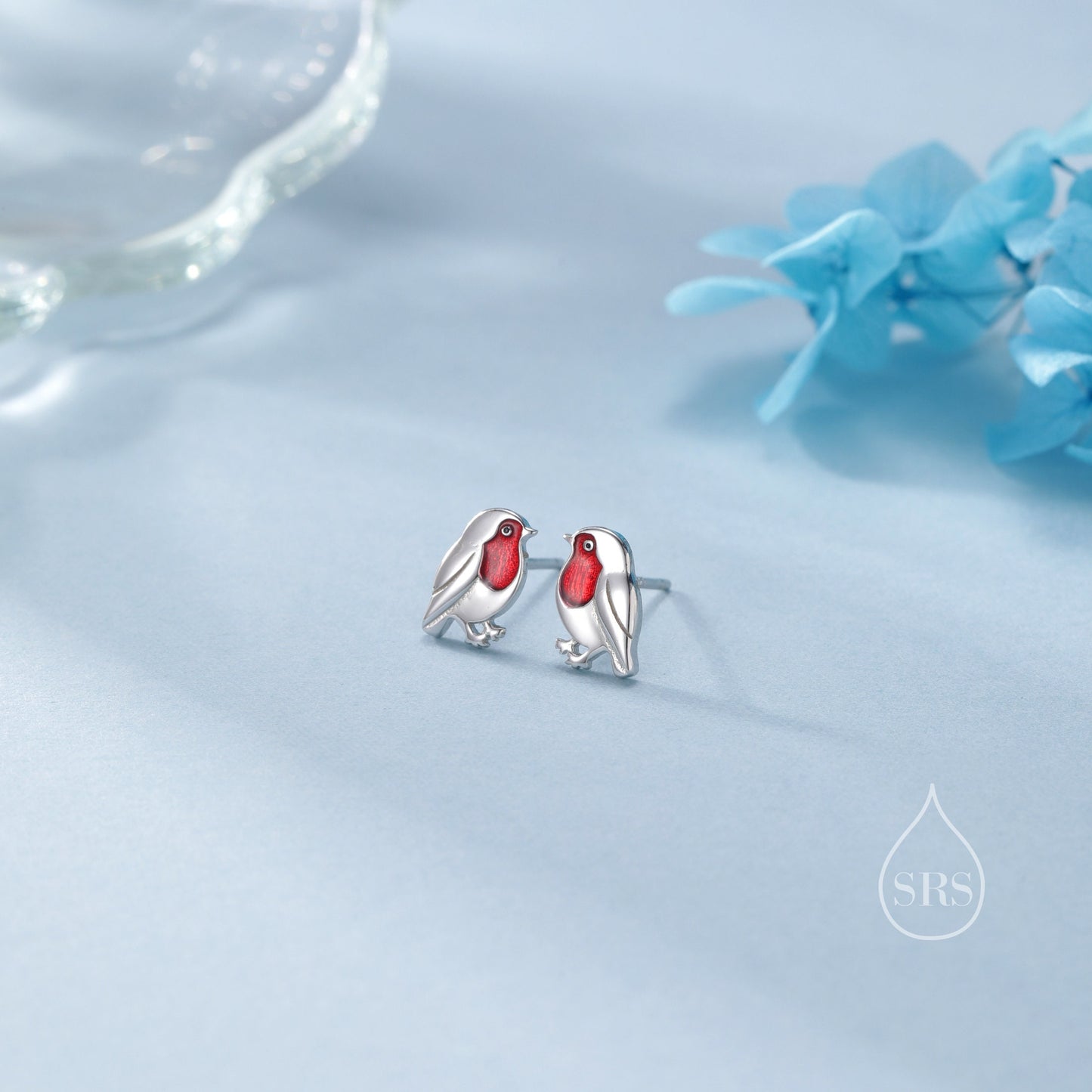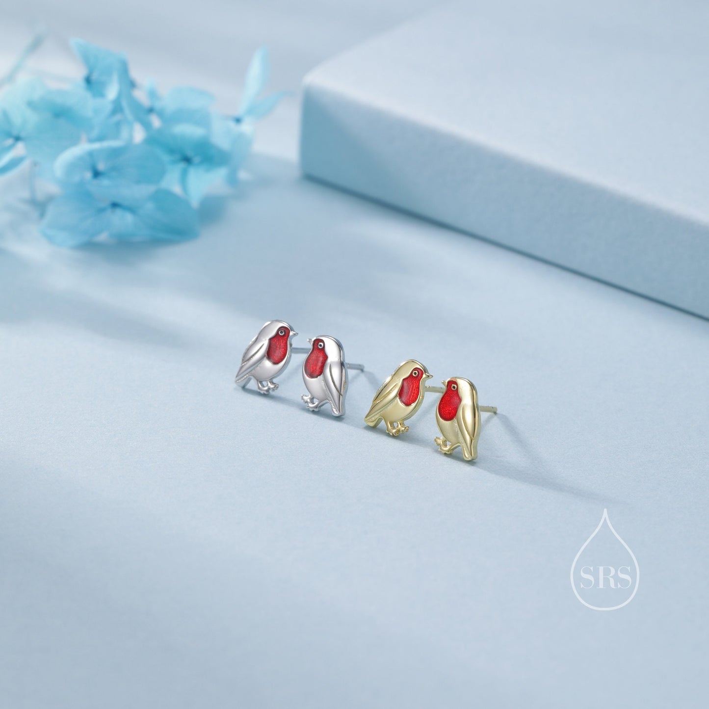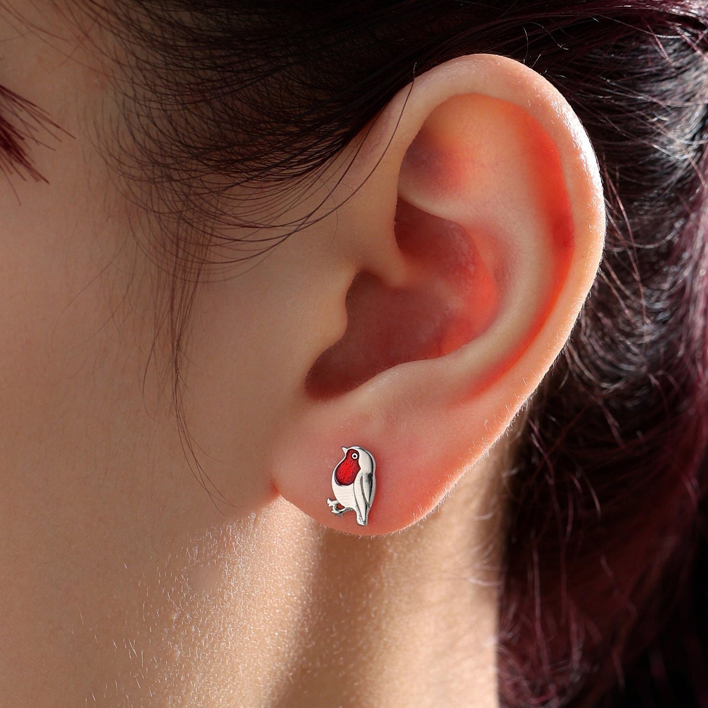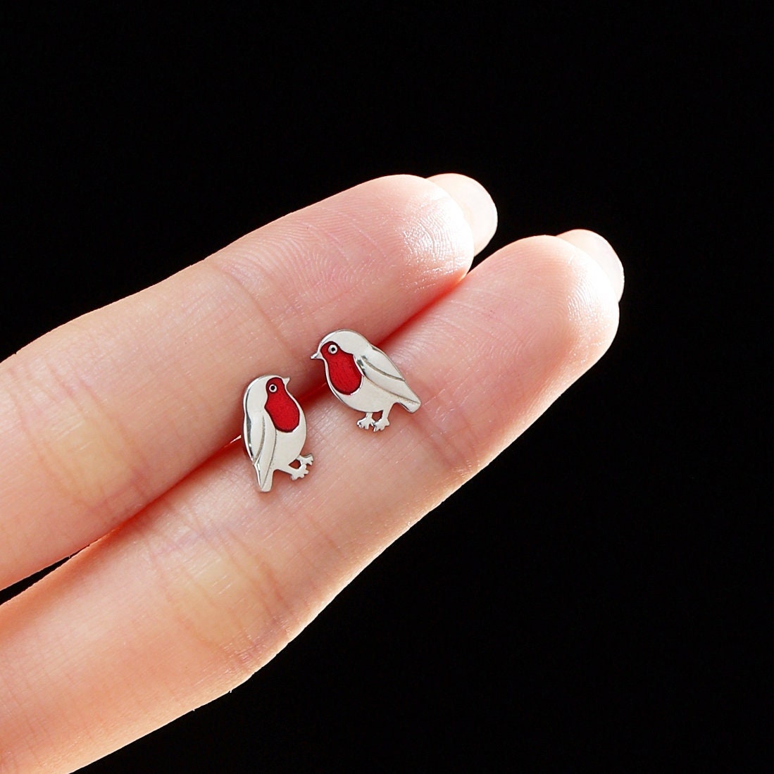 Baby Robin Bird Stud Earrings in Sterling Silver, Silver or Gold, British Bird Earrings, Nature Inspired Animal Earrings