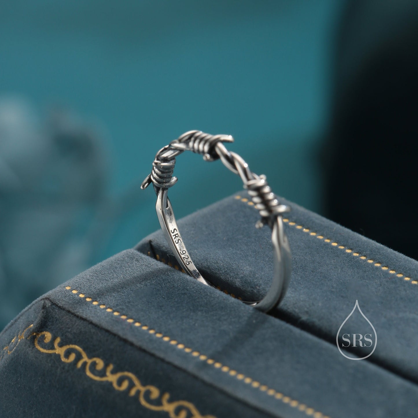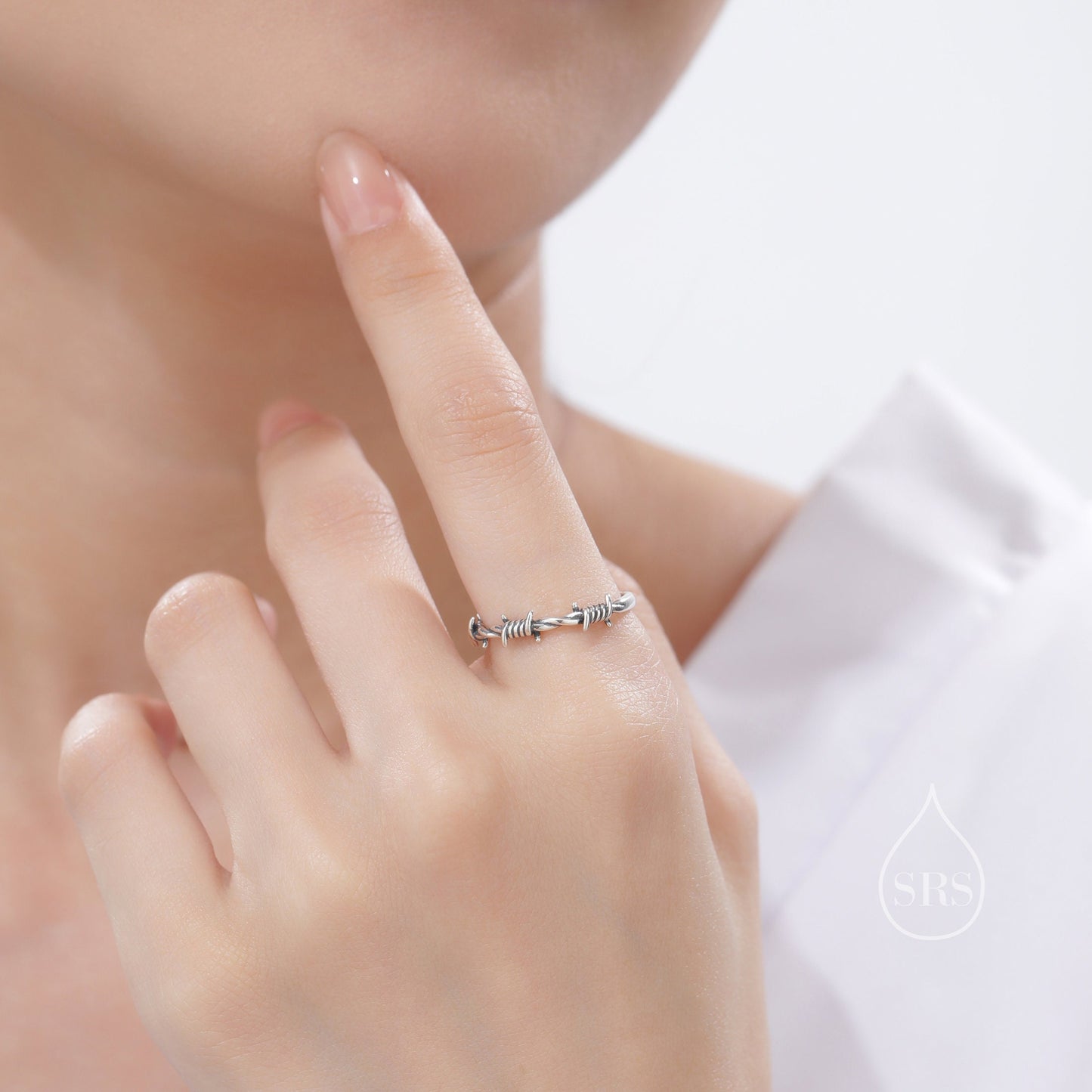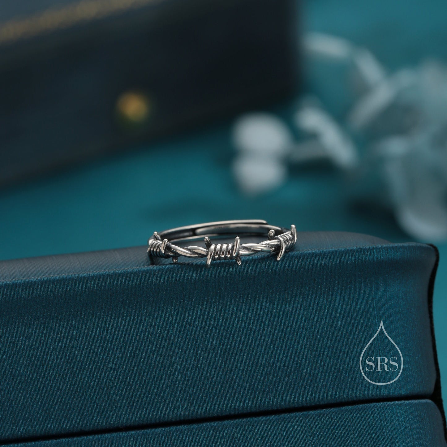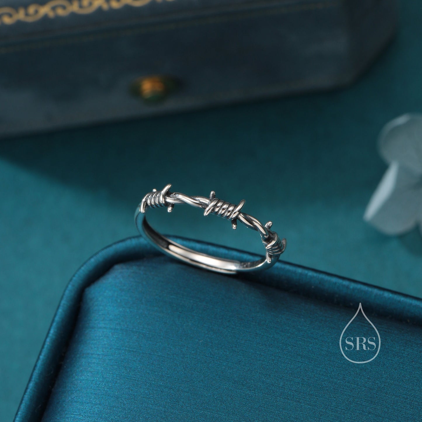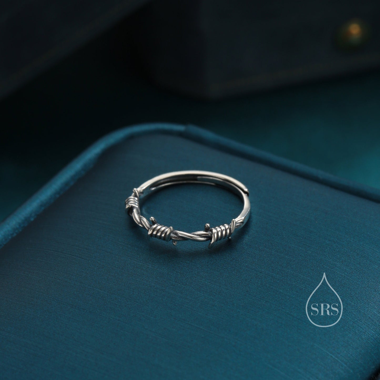 Barbed Wire Ring in Sterling Silver Oxidised Finish, Adjustable Size, Thorn Ring, Silver Thorn Ring