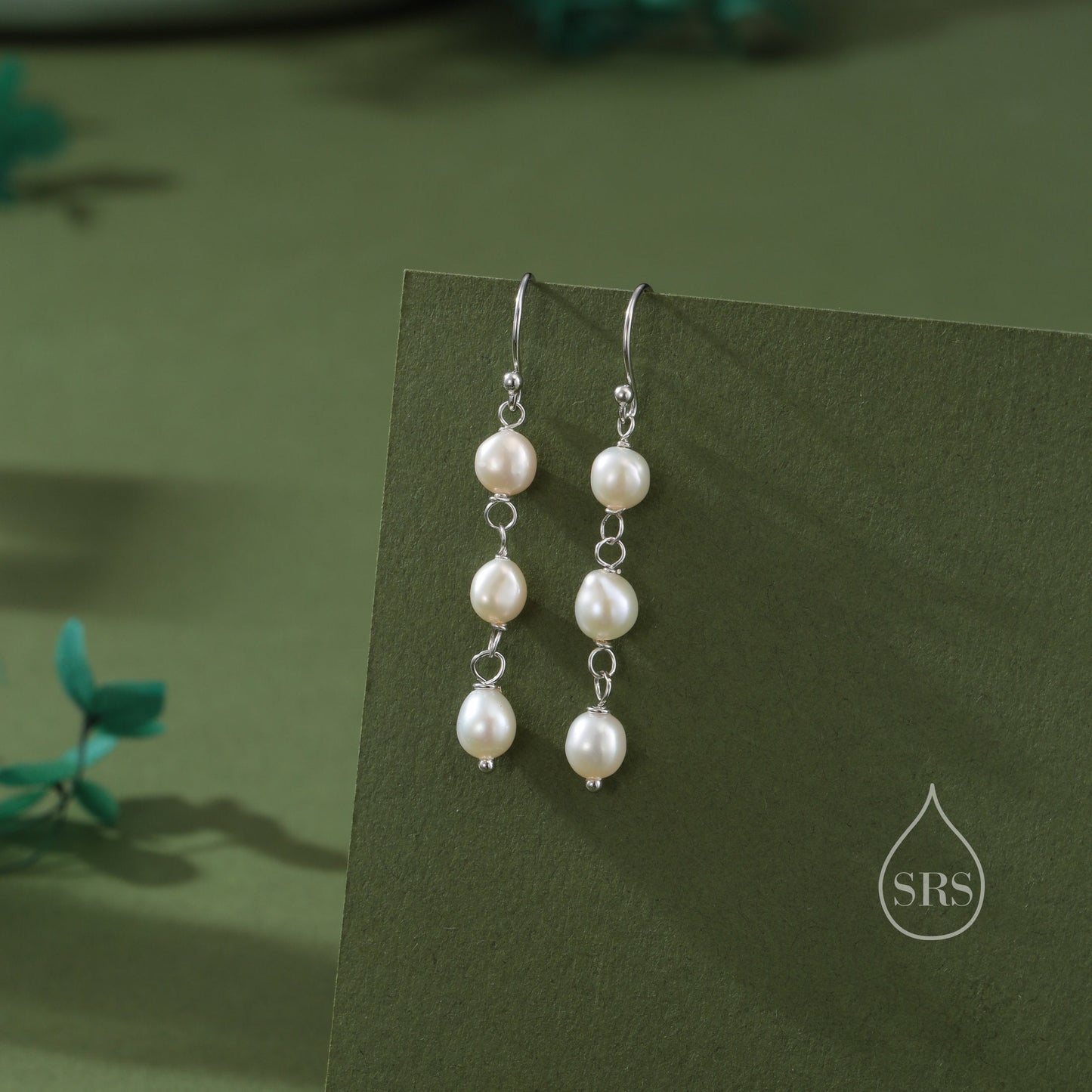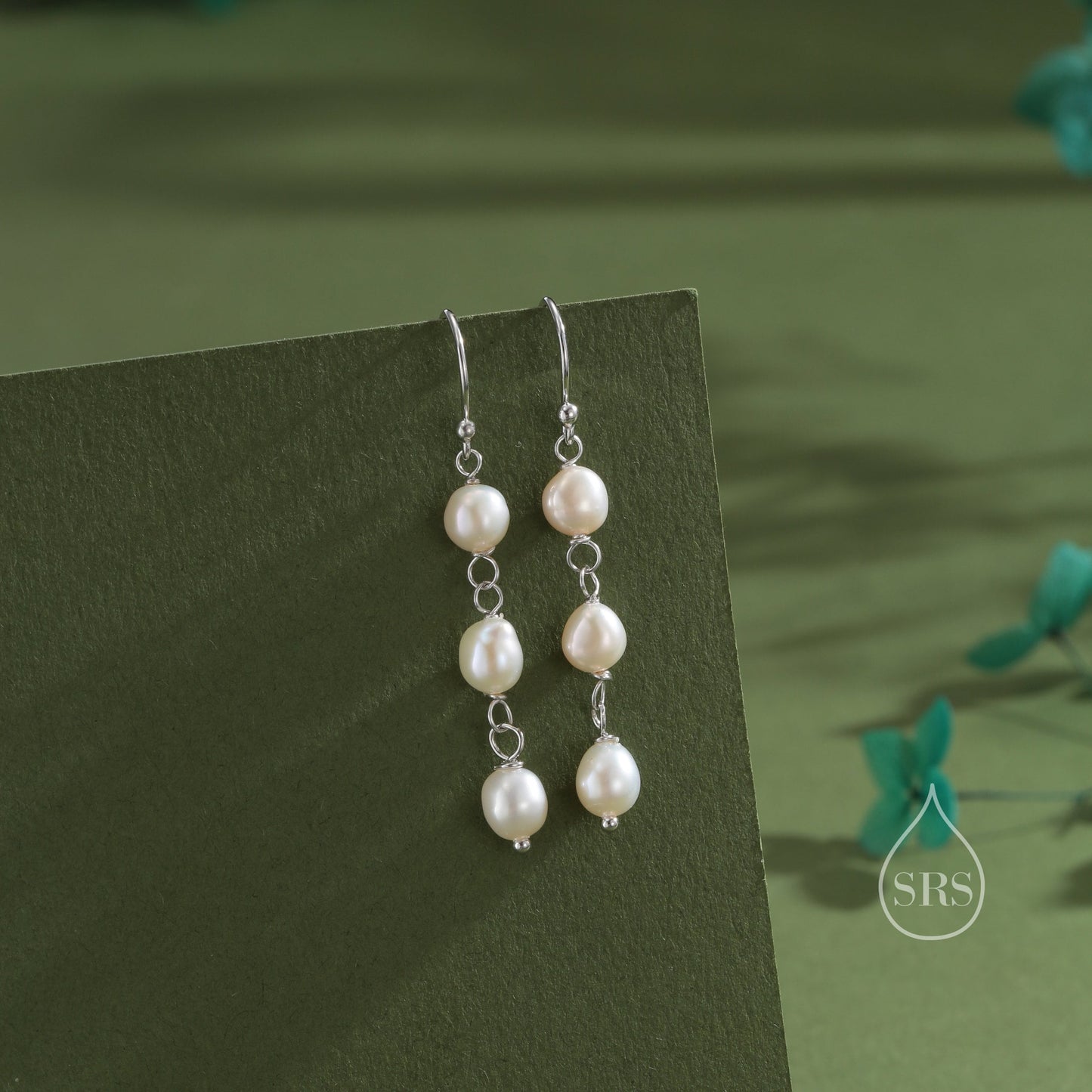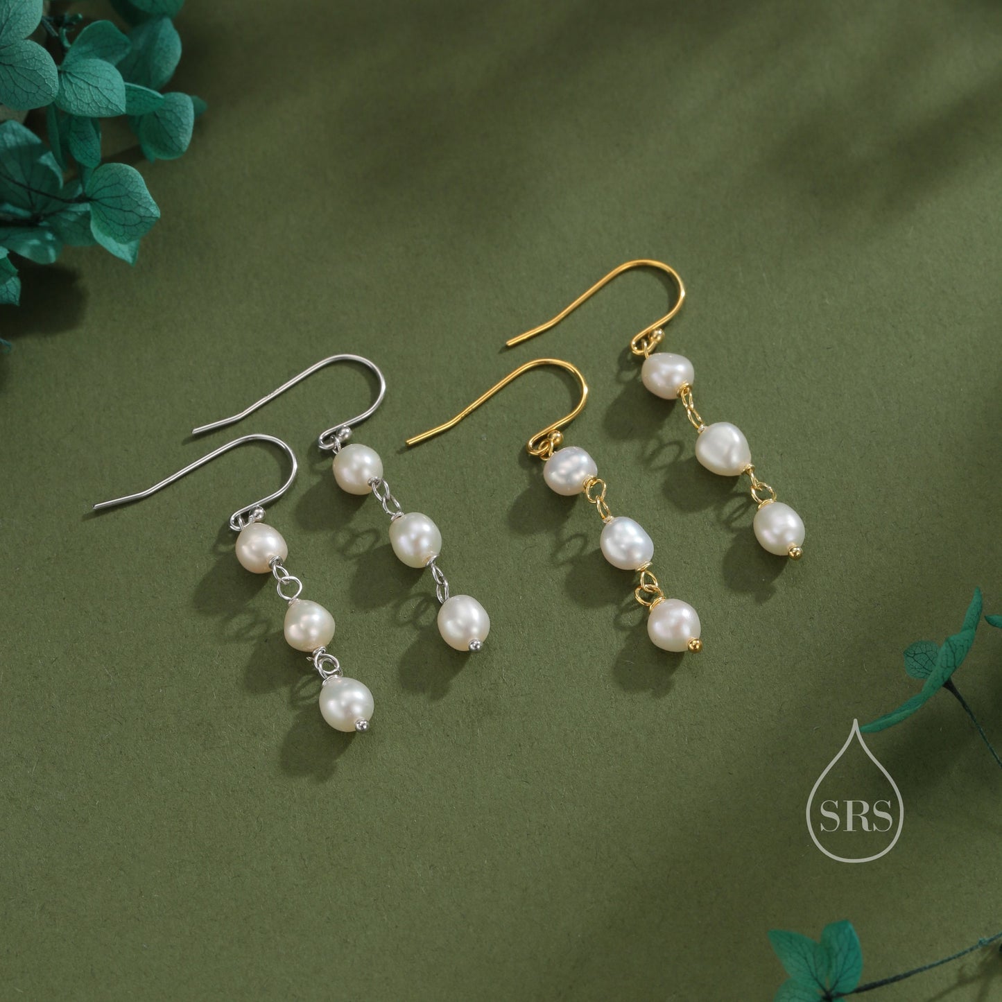Baroque Pearl Trio Drop Hook Earrings in Sterling Silver, Silver or Gold, Irregular Shape Pearl Drop Earrings, Natural Freshwater Pearls