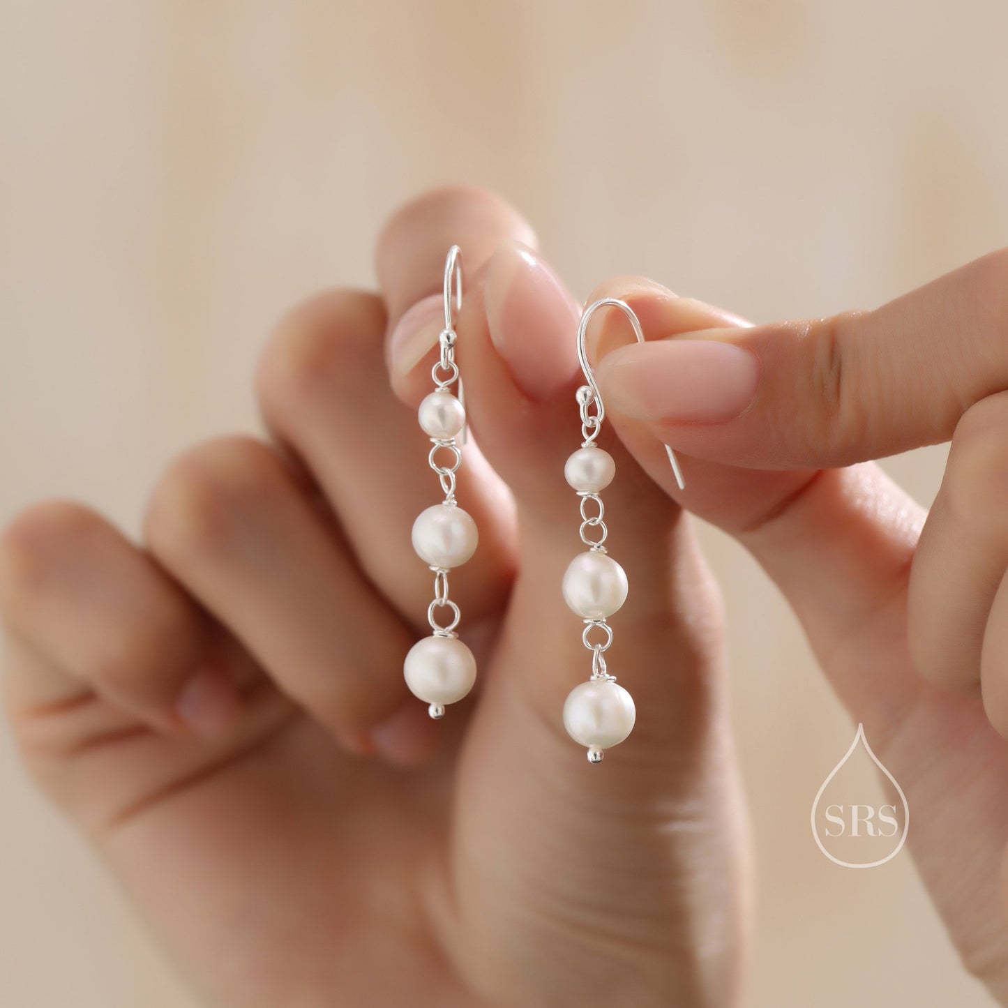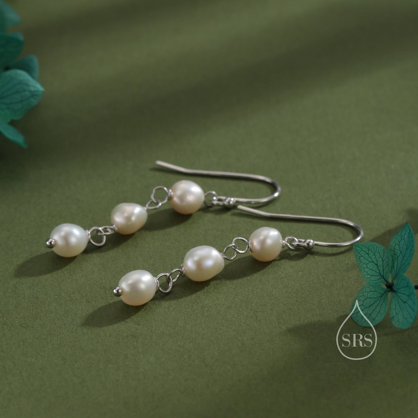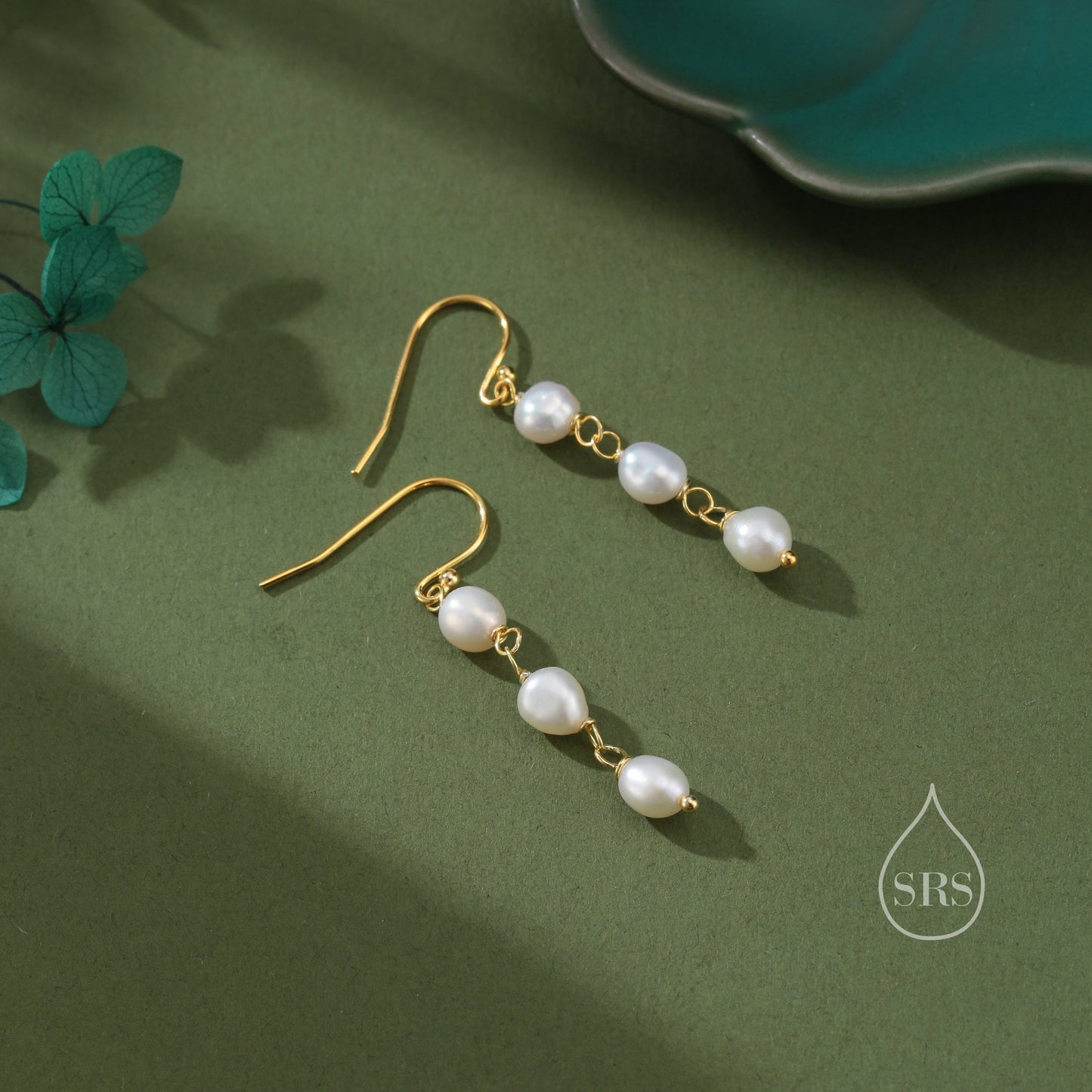 Baroque Pearl Trio Drop Hook Earrings in Sterling Silver, Silver or Gold, Irregular Shape Pearl Drop Earrings, Natural Freshwater Pearls