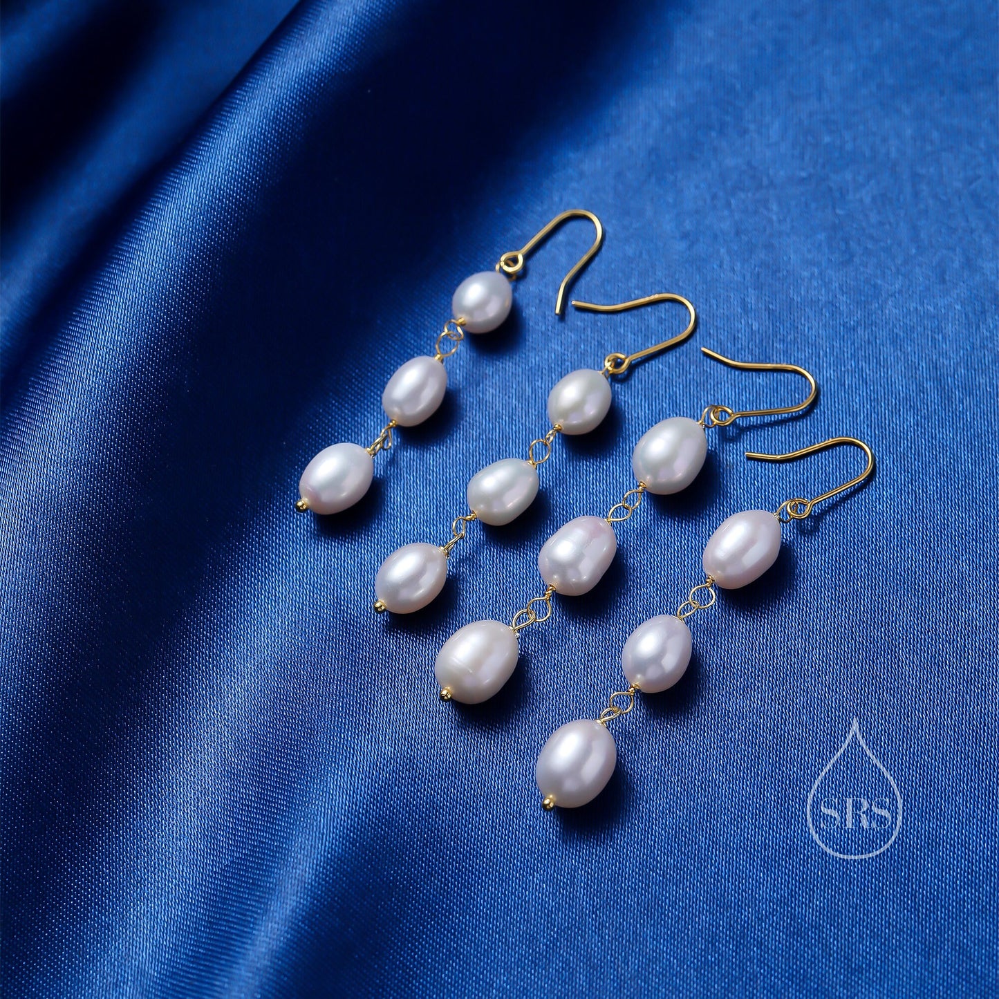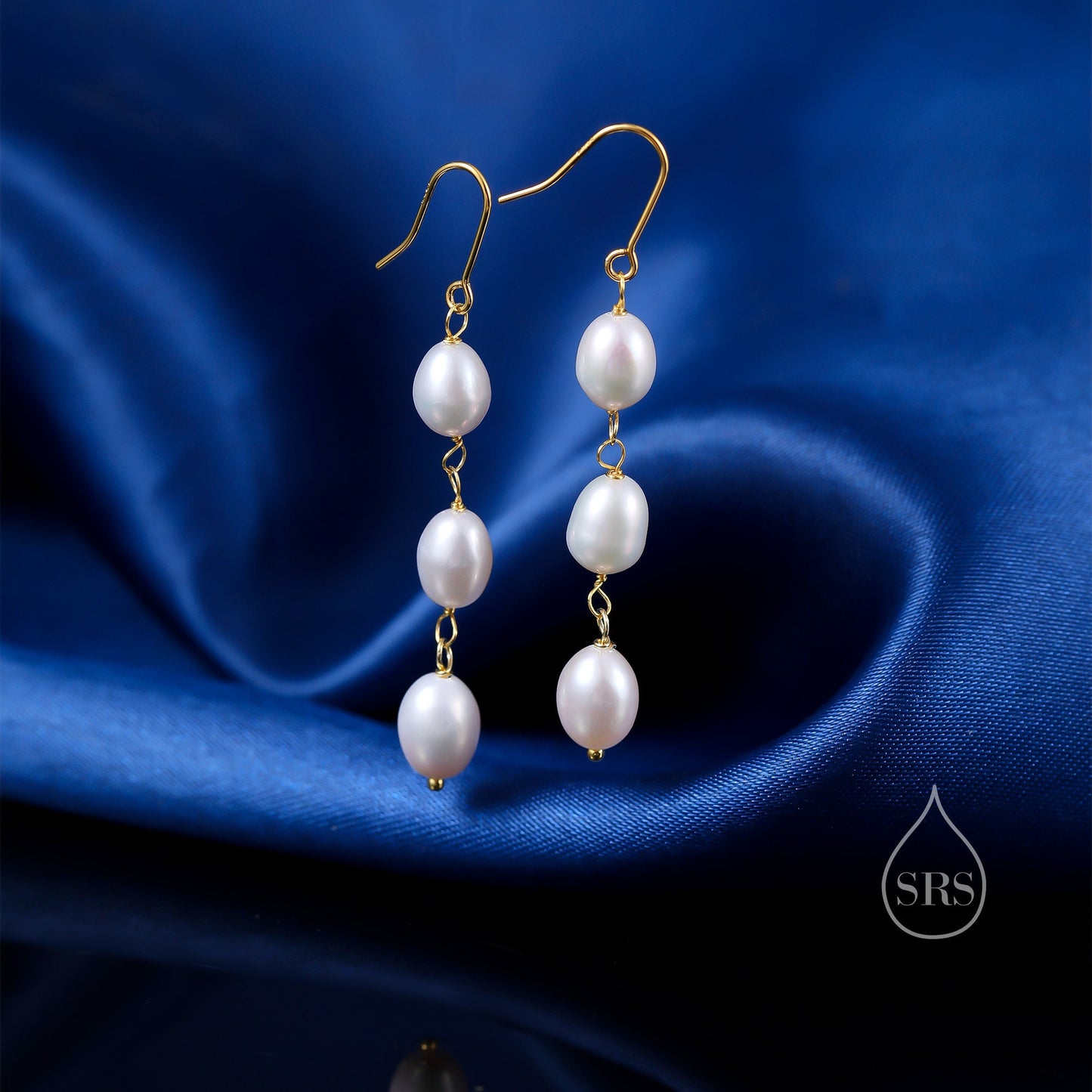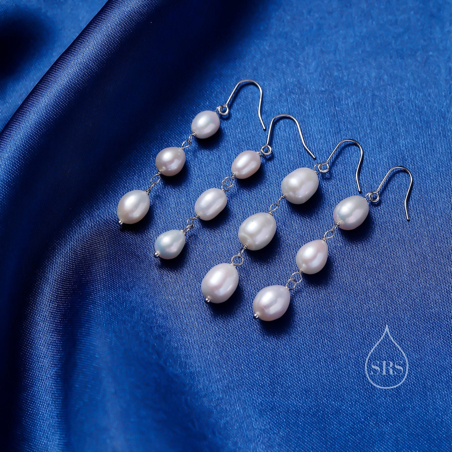 Baroque Pearl Trio Drop Hook Earrings in Sterling Silver, Silver or Gold, Long Pearl Drop Earrings, Natural Keshi Freshwater Pearl Earrings