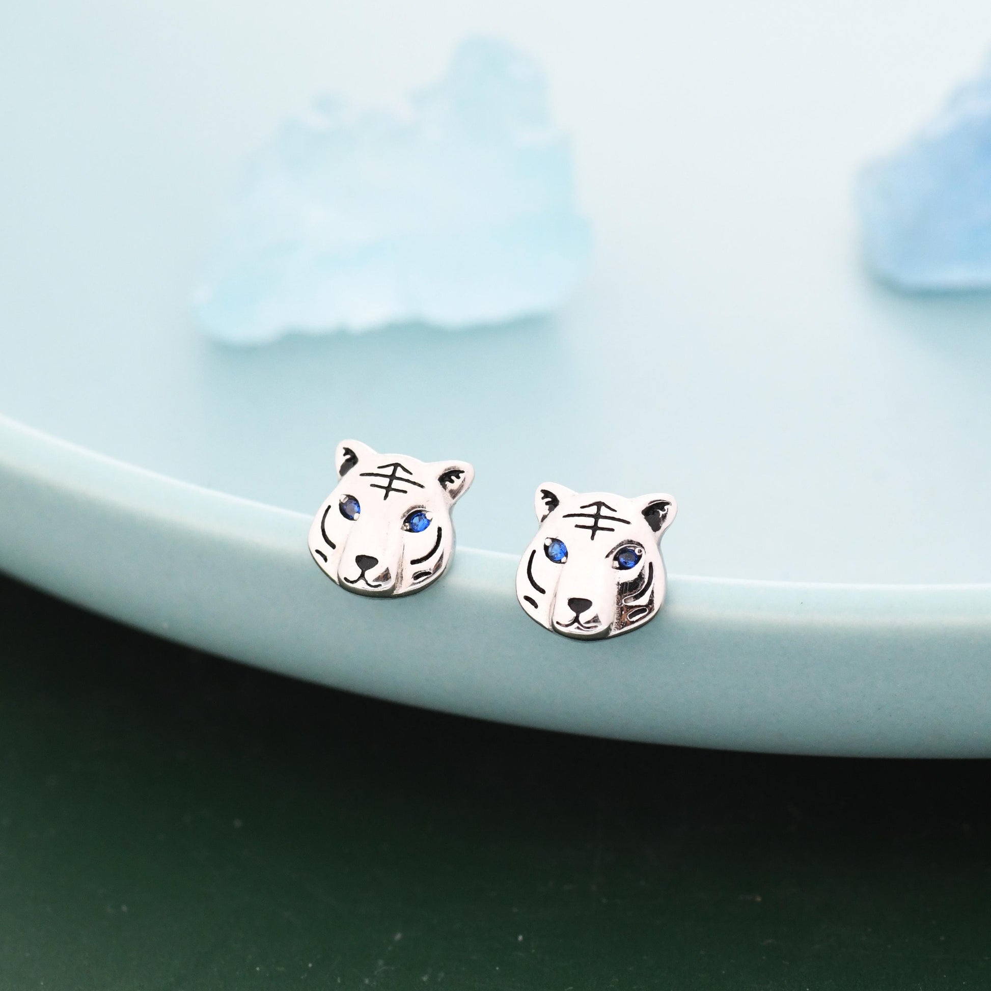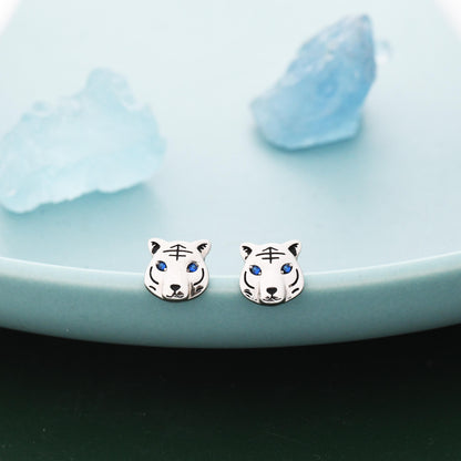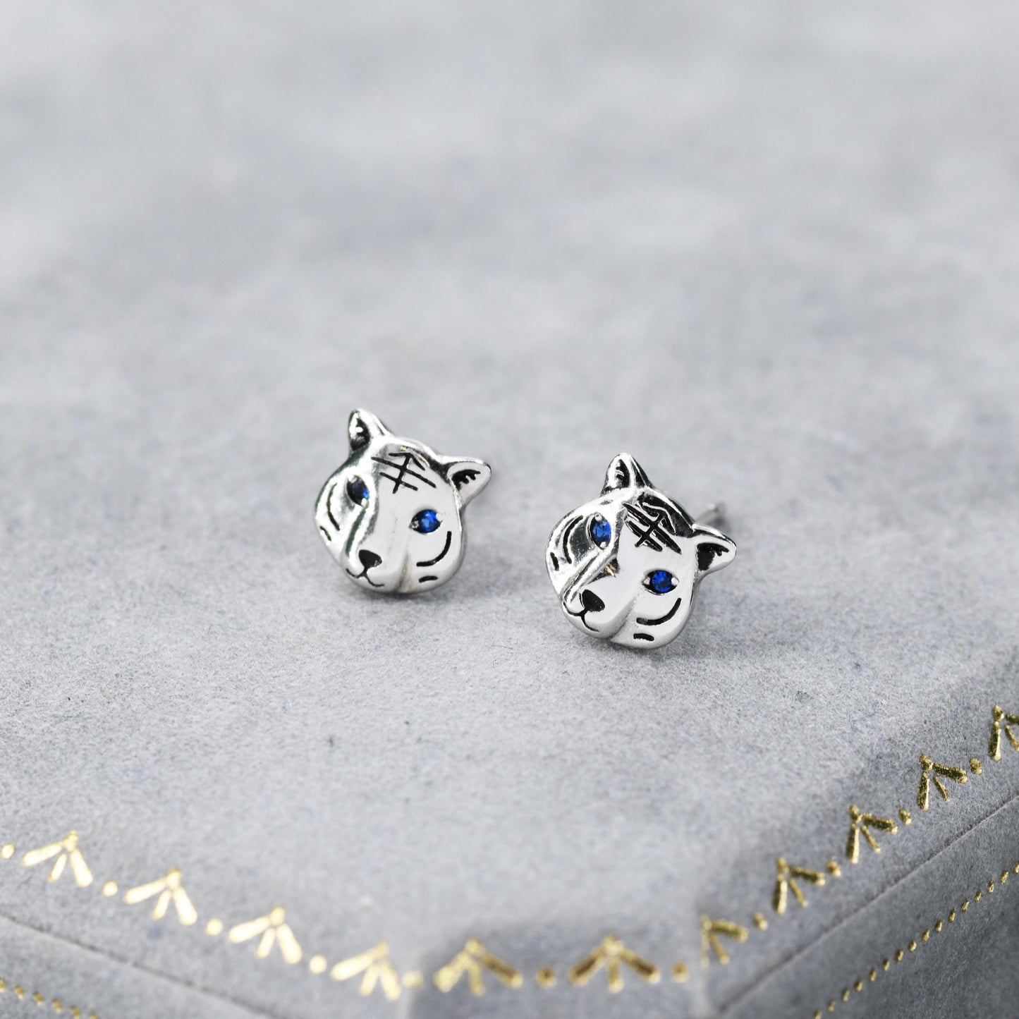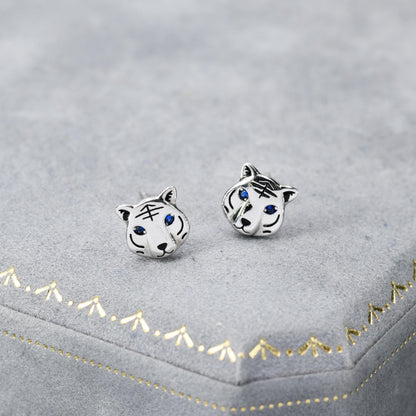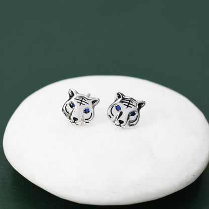 Blue Eyed Tiger Stud Earrings in Sterling Silver, Silver or Gold, Animal Earrings, Nature Inspired