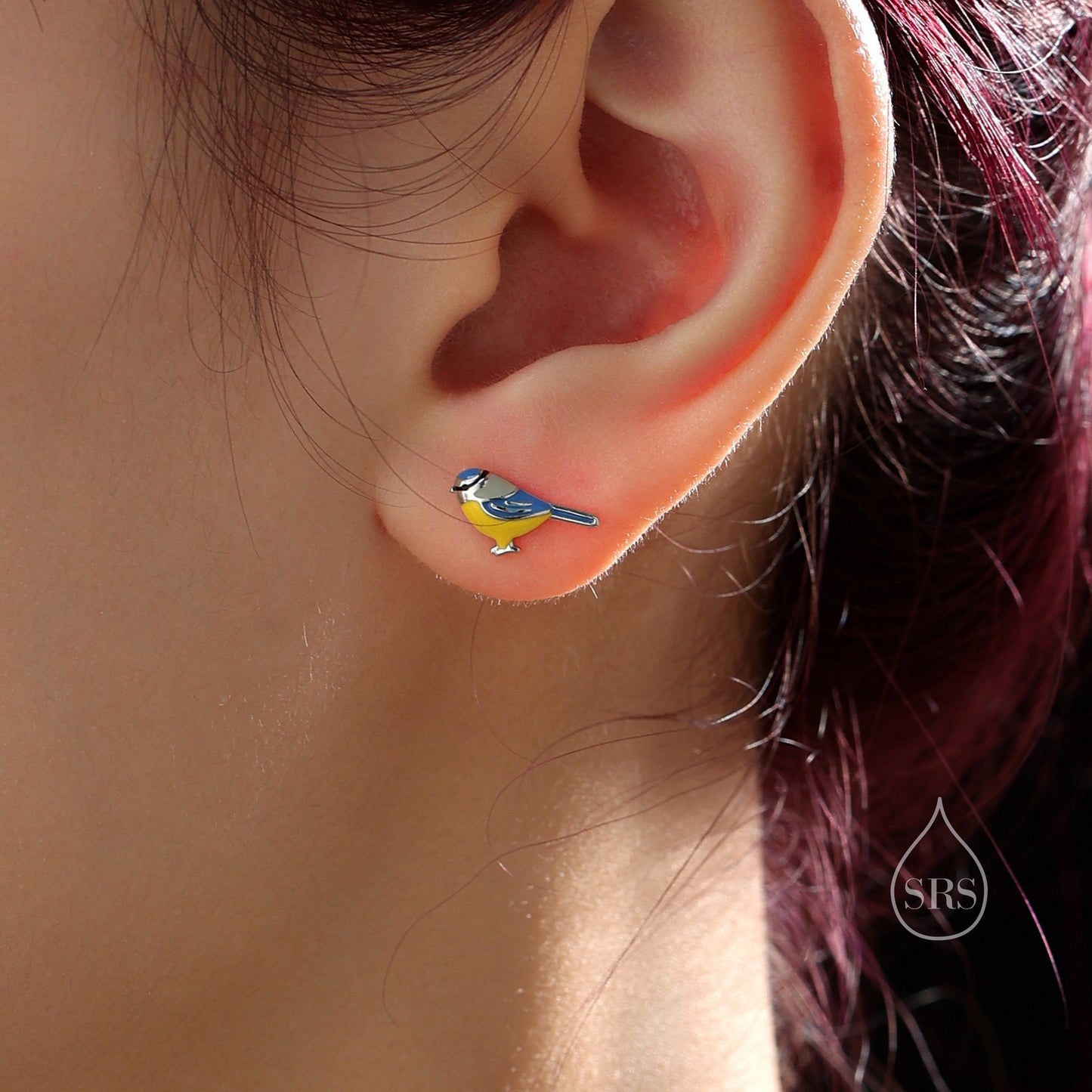 Blue Tit Bird Stud Earrings in Sterling Silver, Silver Blue Tit Earrings, Hand Painted Enamel Blue Tit Earrings, Animal Earrings, Bird Stud