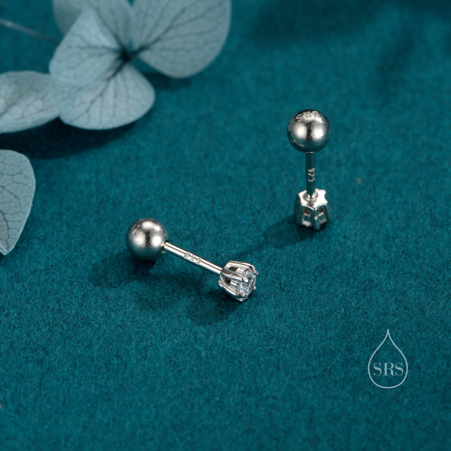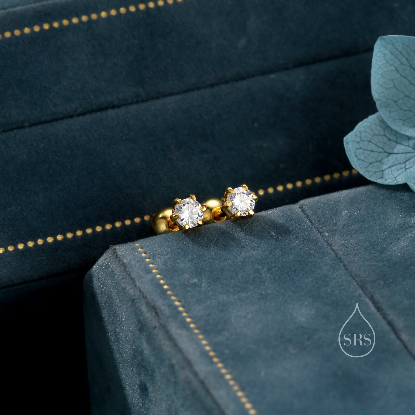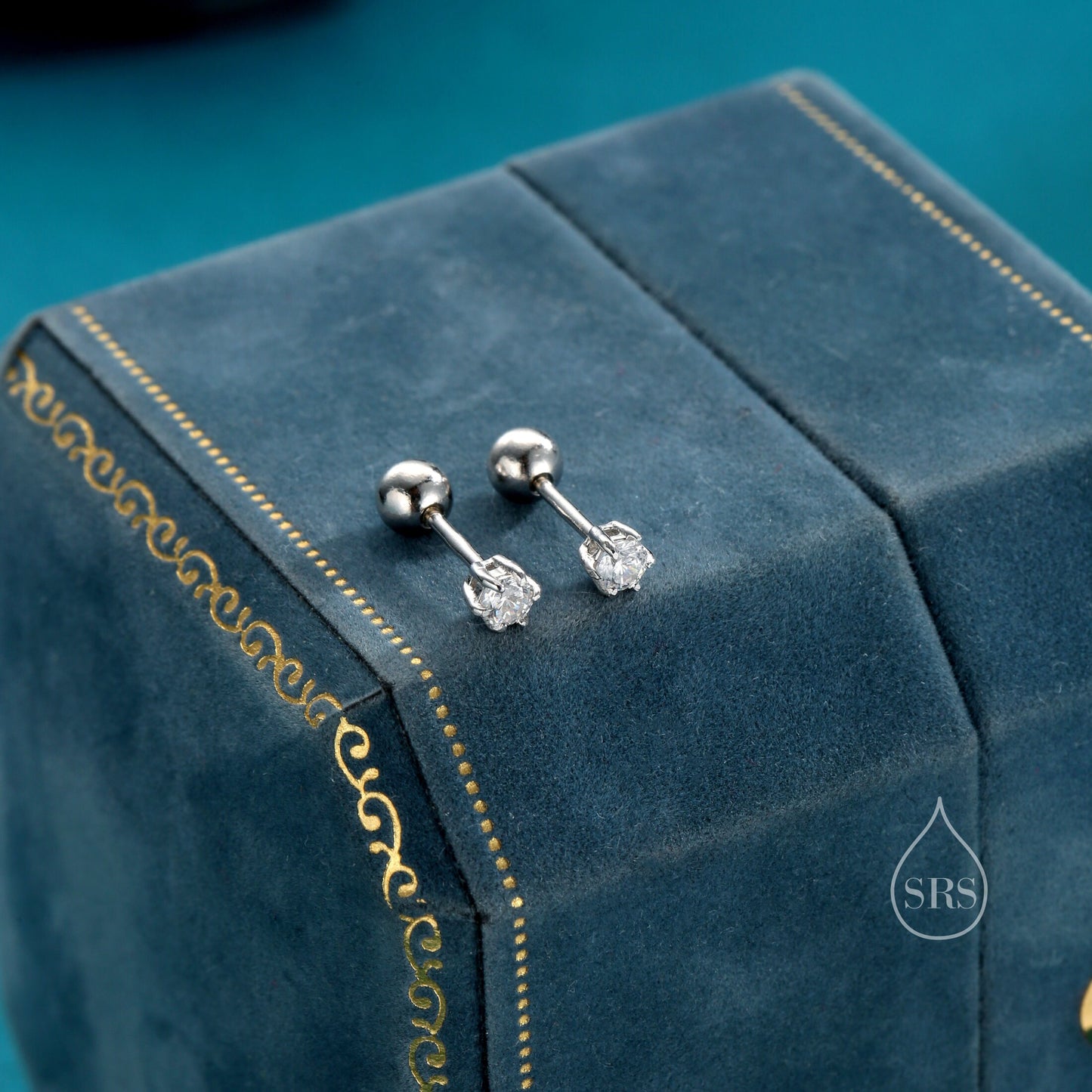 Brilliant Cut 3mm CZ Barbell Earrings in Sterling Silver, Silver or Gold, Six Prong CZ Screw Back Earrings, Screwback, Helix and Cartilage