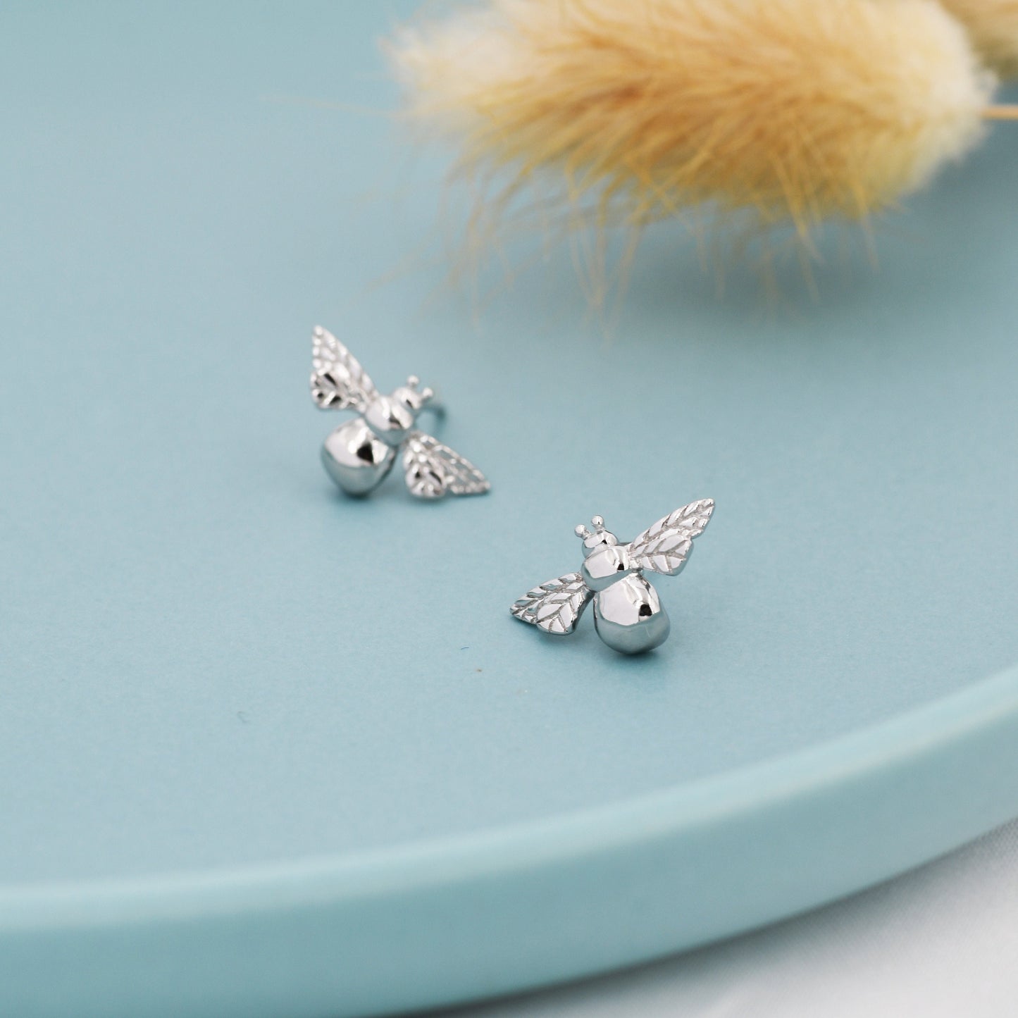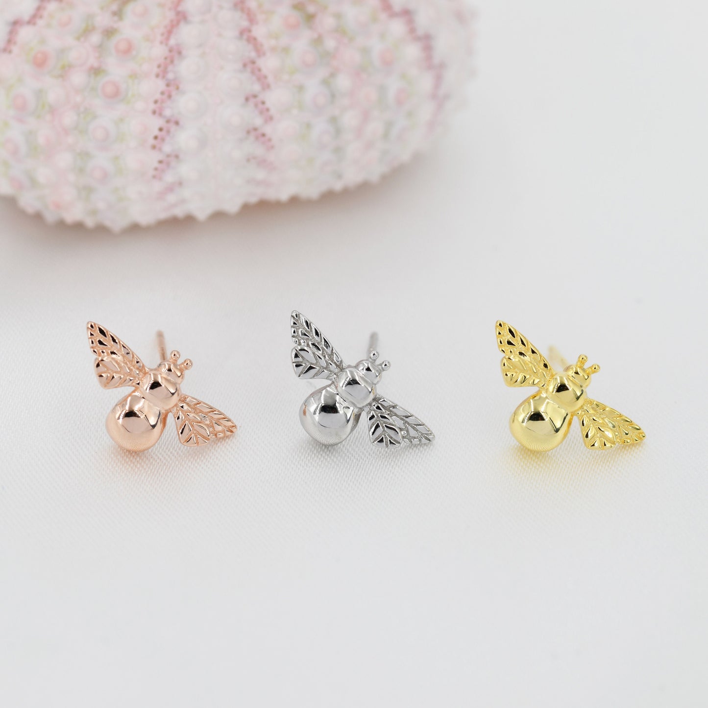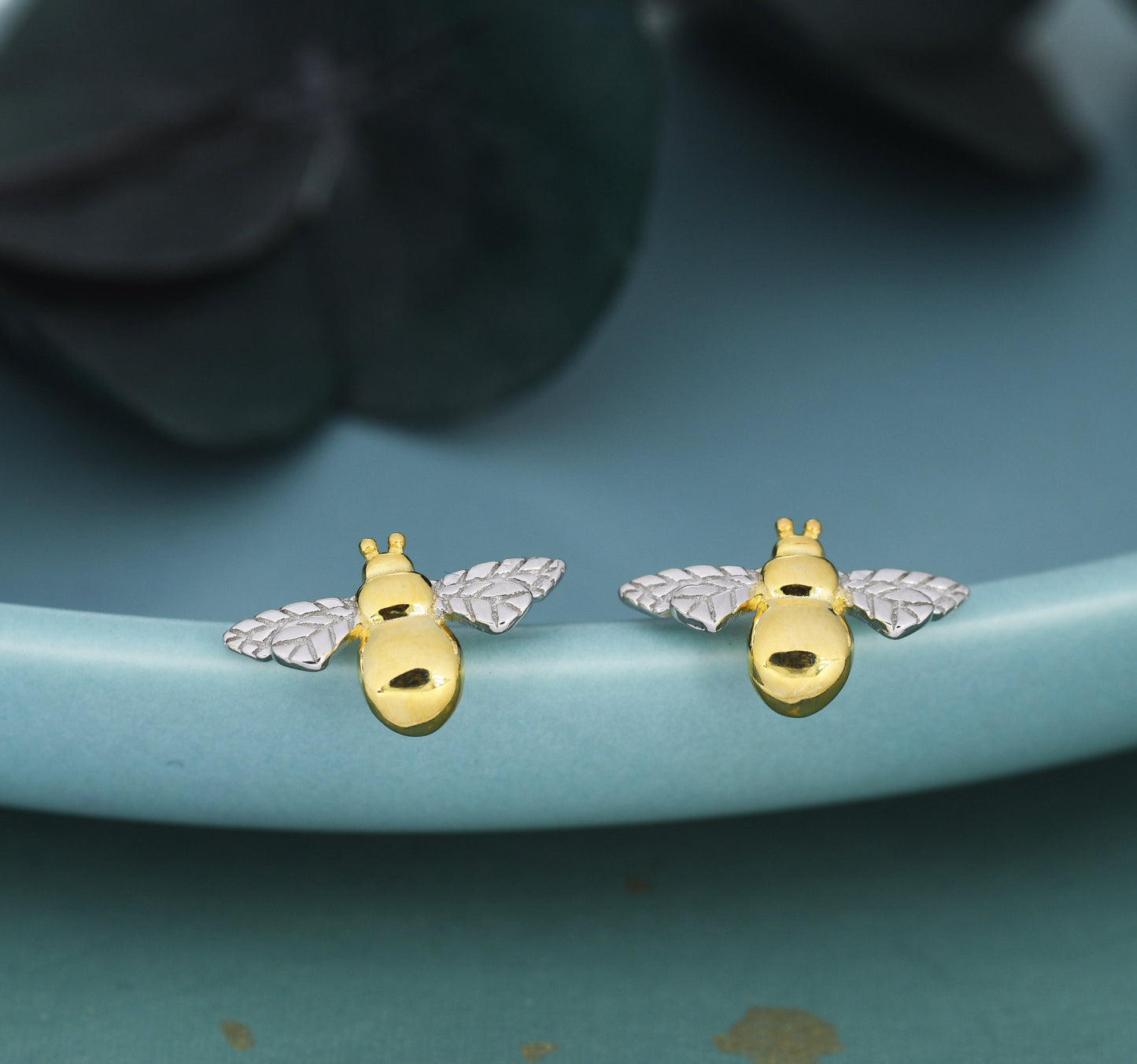 Bumble Bee Stud Earrings in Sterling Silver, Silver, Gold or Rose Gold, Two Tone Bee Earrings, Nature Inspired.
