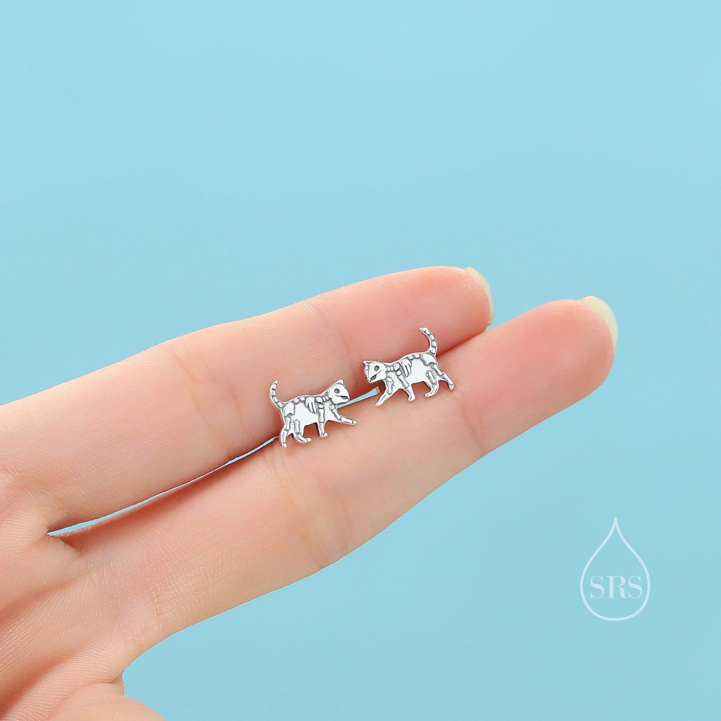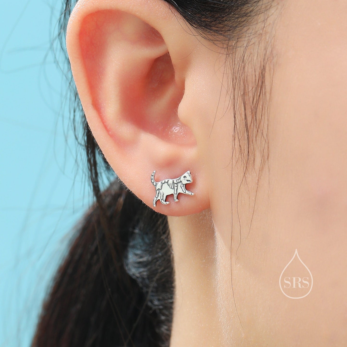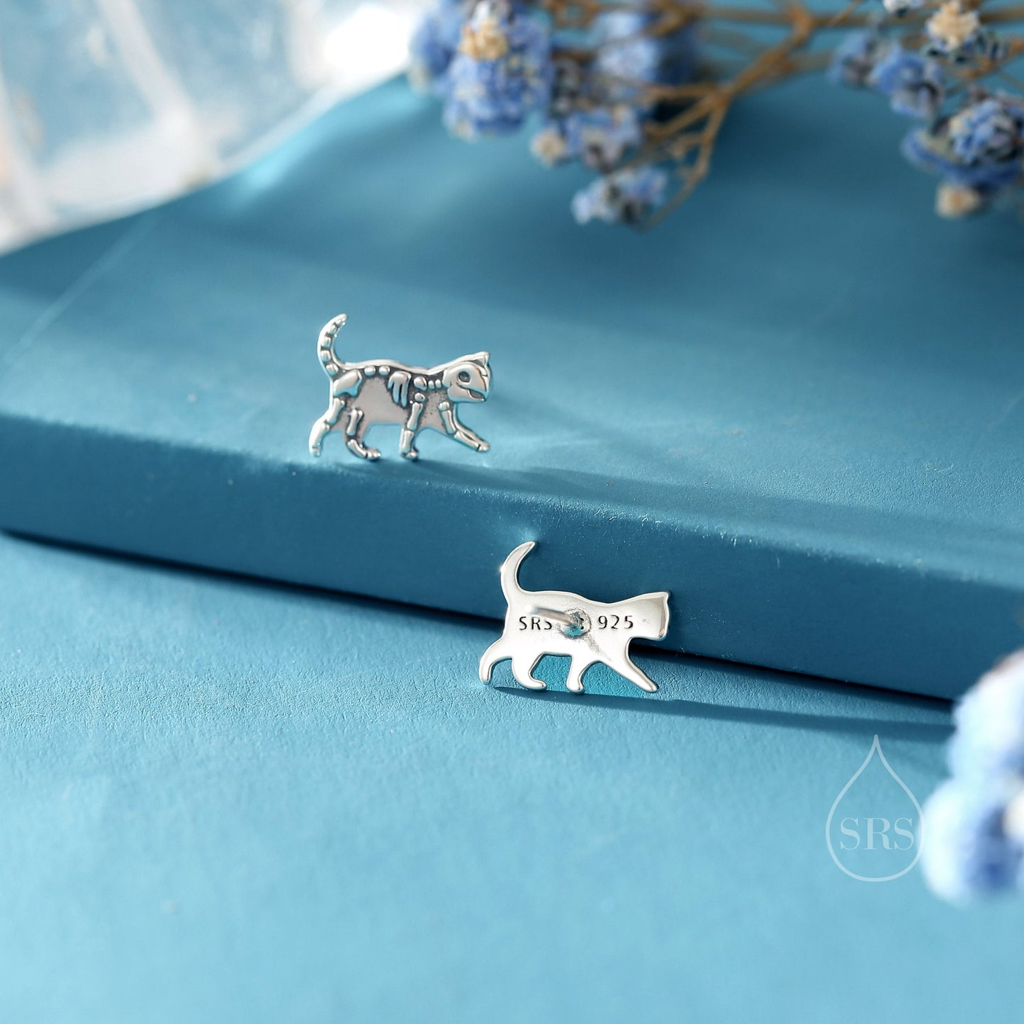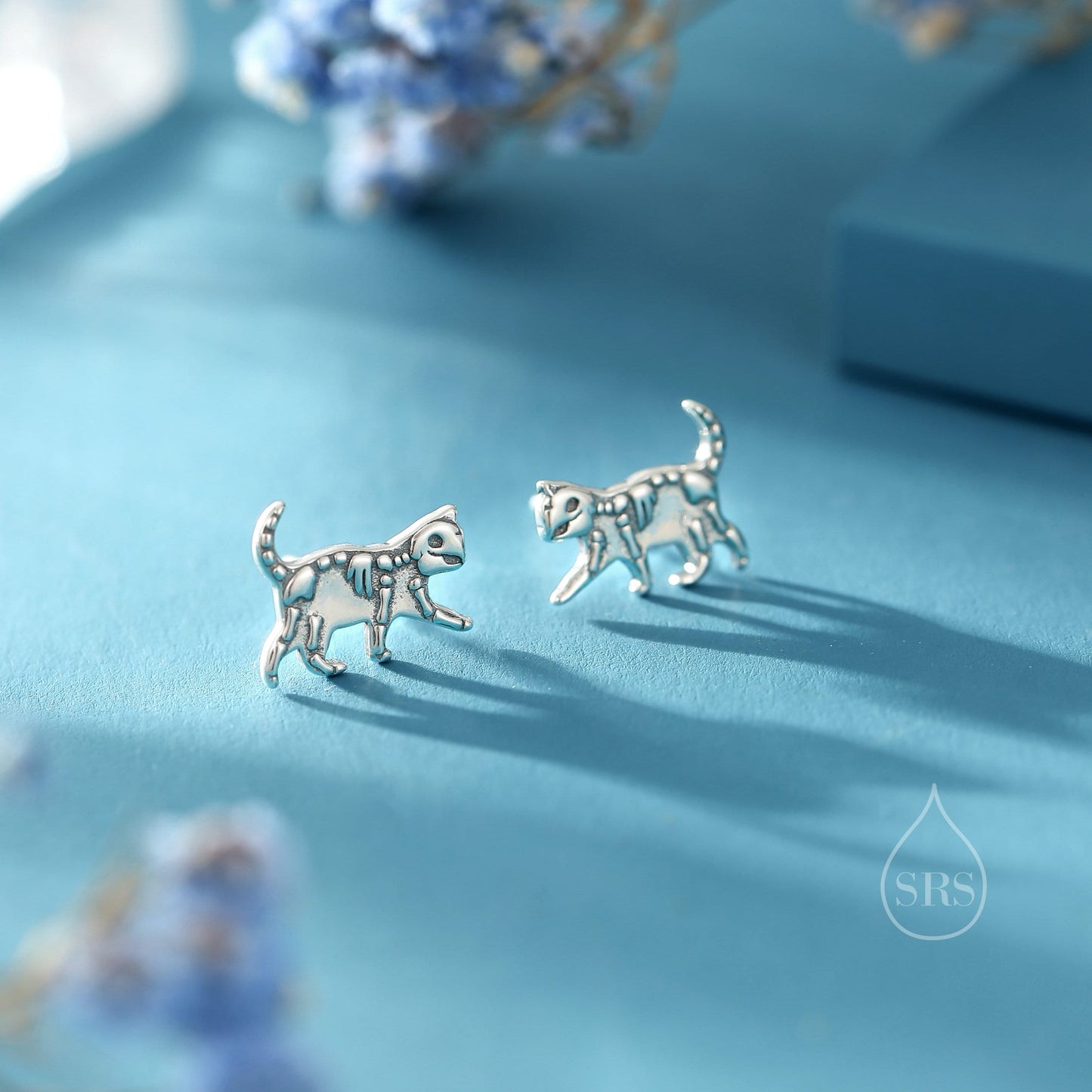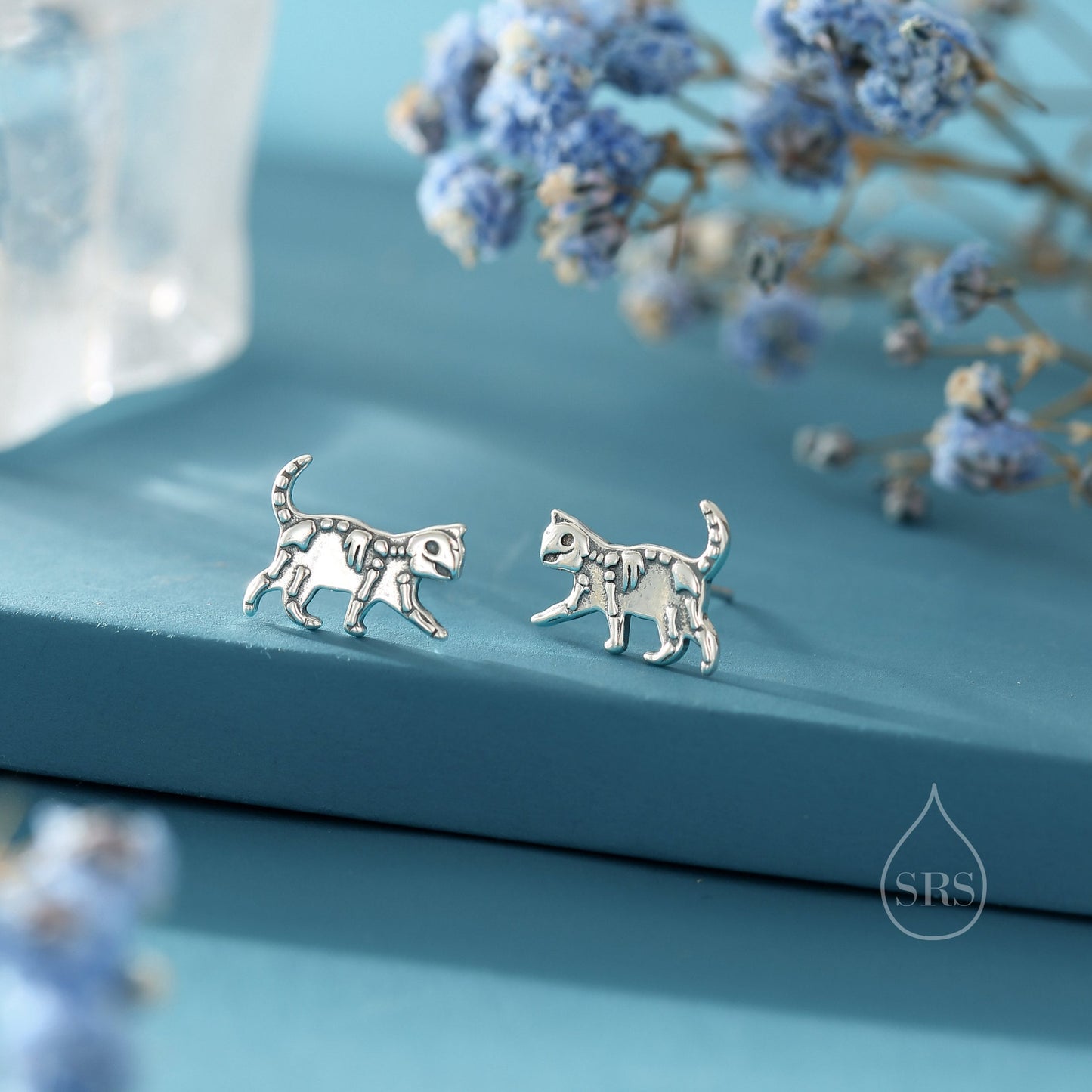 Cat Skeleton Stud Earrings in Sterling Silver, Quirky Cat Skeleton Earrings, Dainty and Tiny Earrings, Gift for a Cat Lover