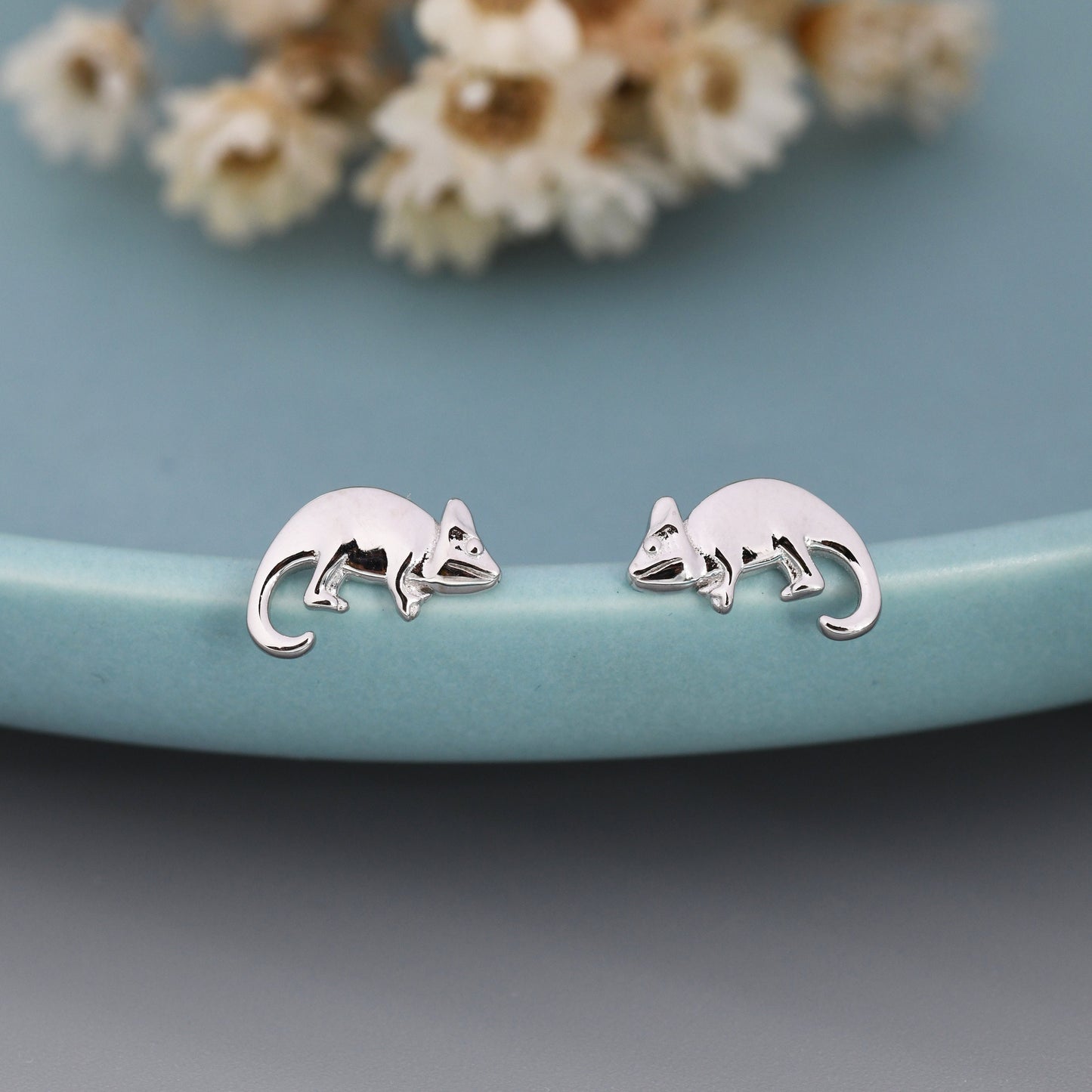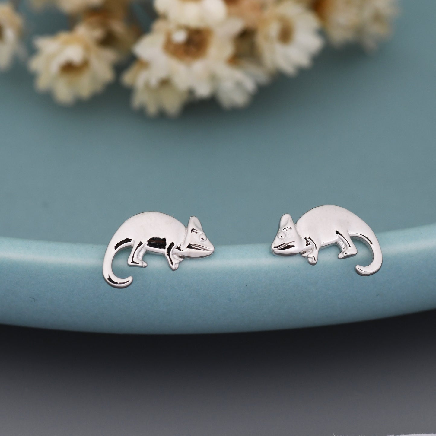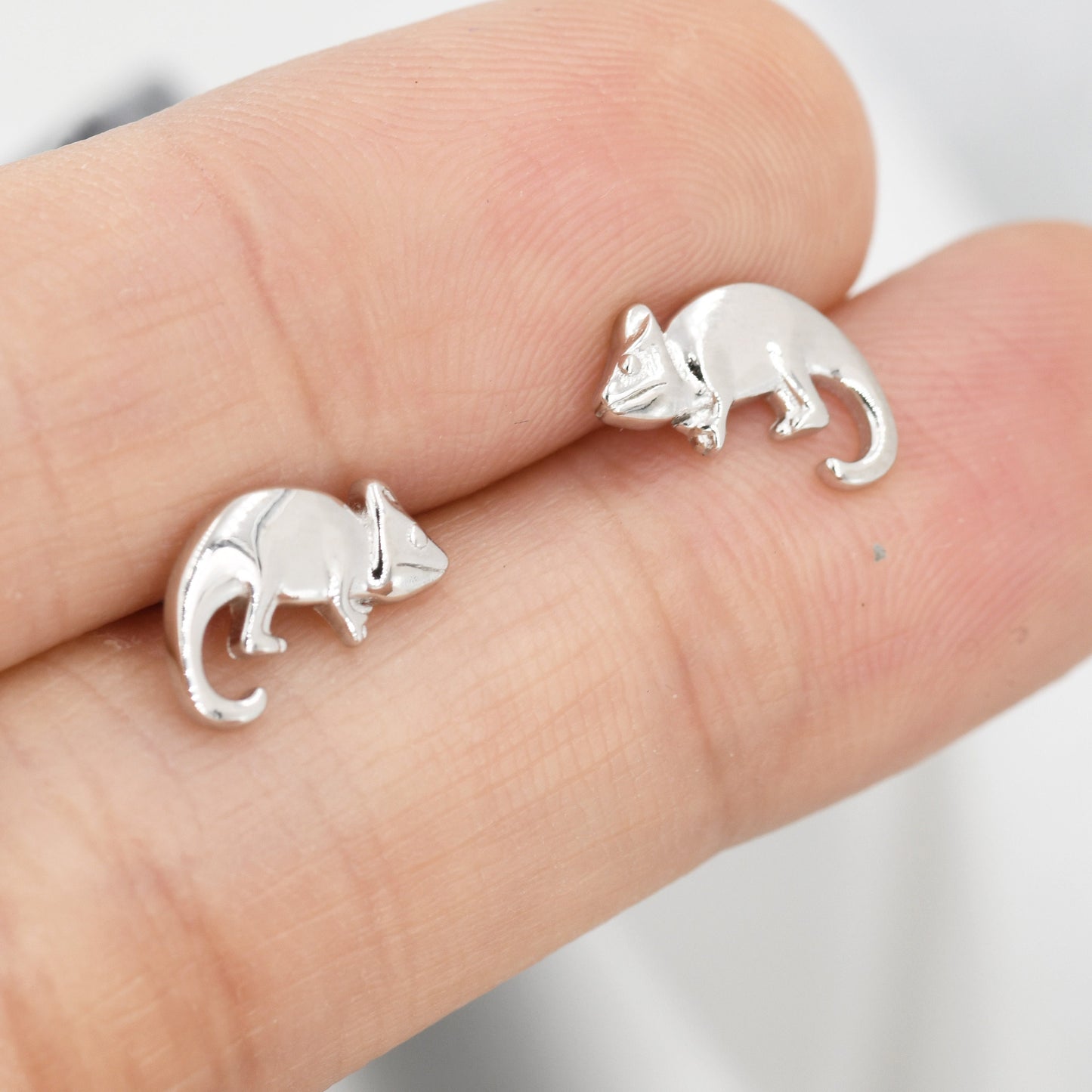 Chameleon Stud Earrings in Sterling Silver, Silver or Gold, Nature Inspired Animal Earrings, Lizard Earrings