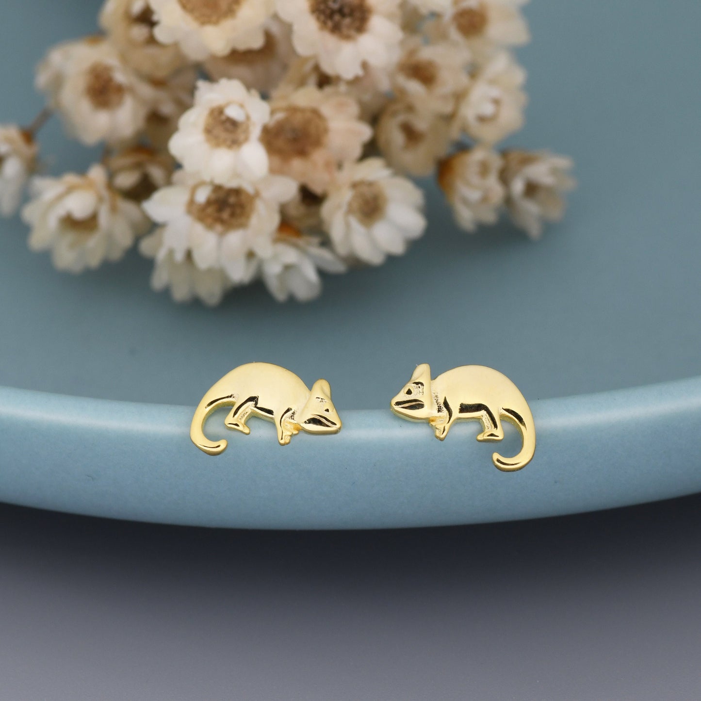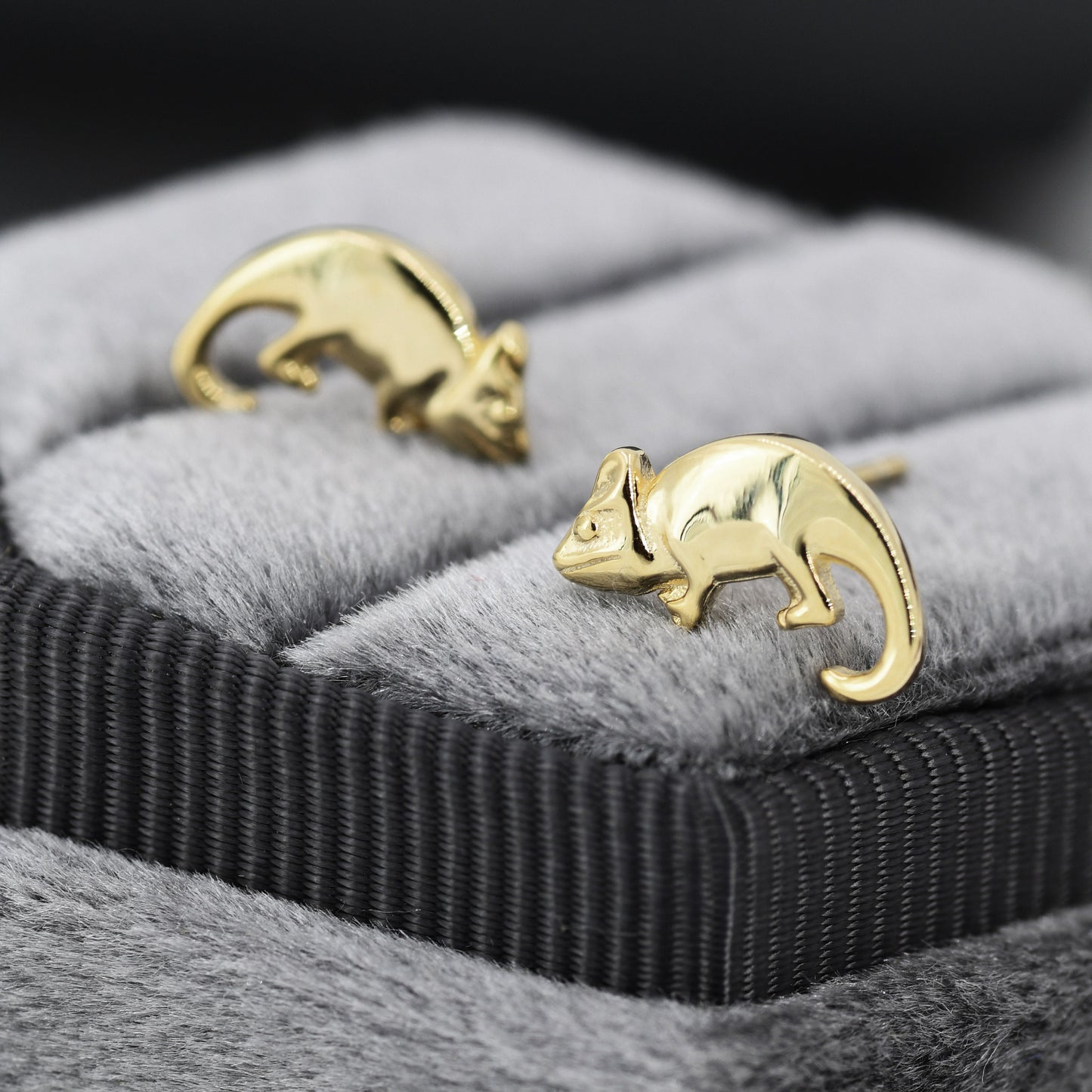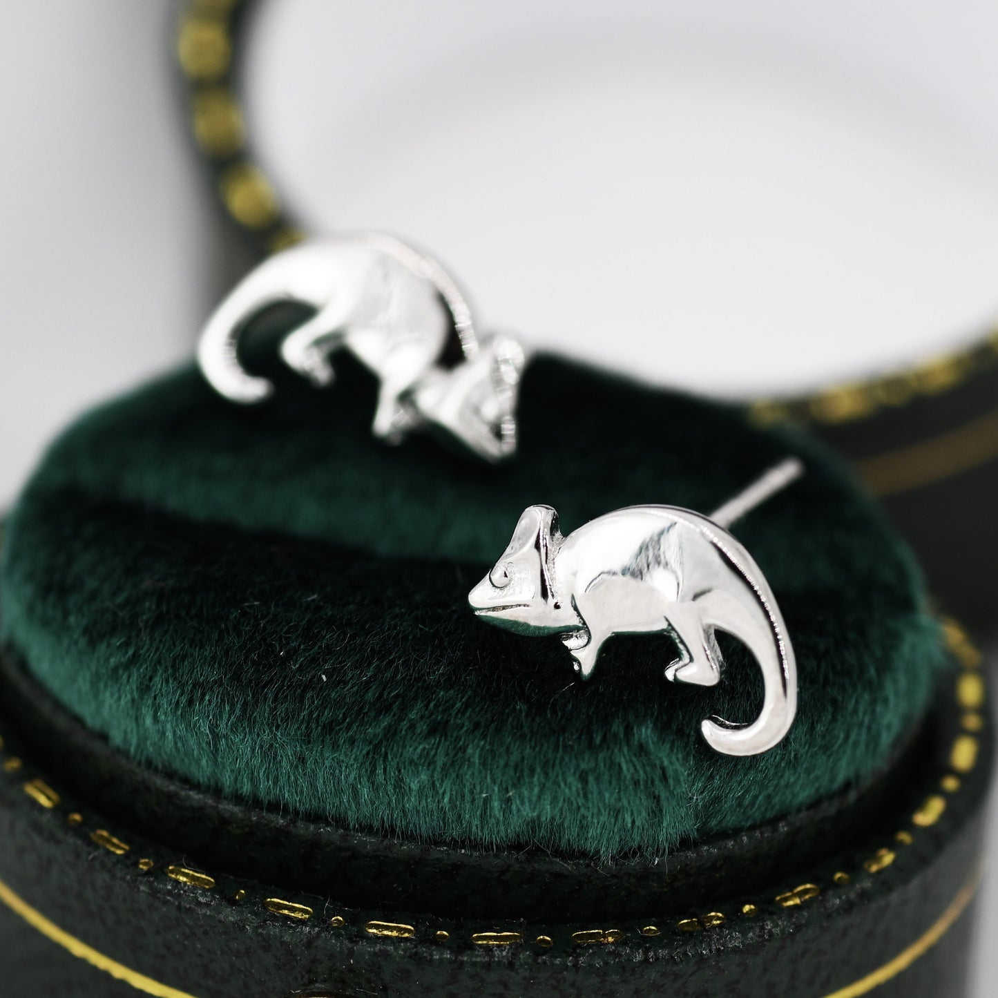 Chameleon Stud Earrings in Sterling Silver, Silver or Gold, Nature Inspired Animal Earrings, Lizard Earrings