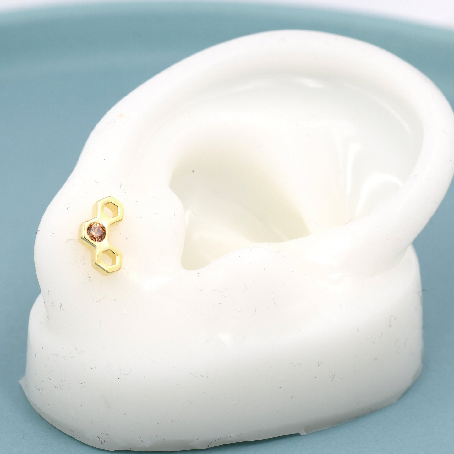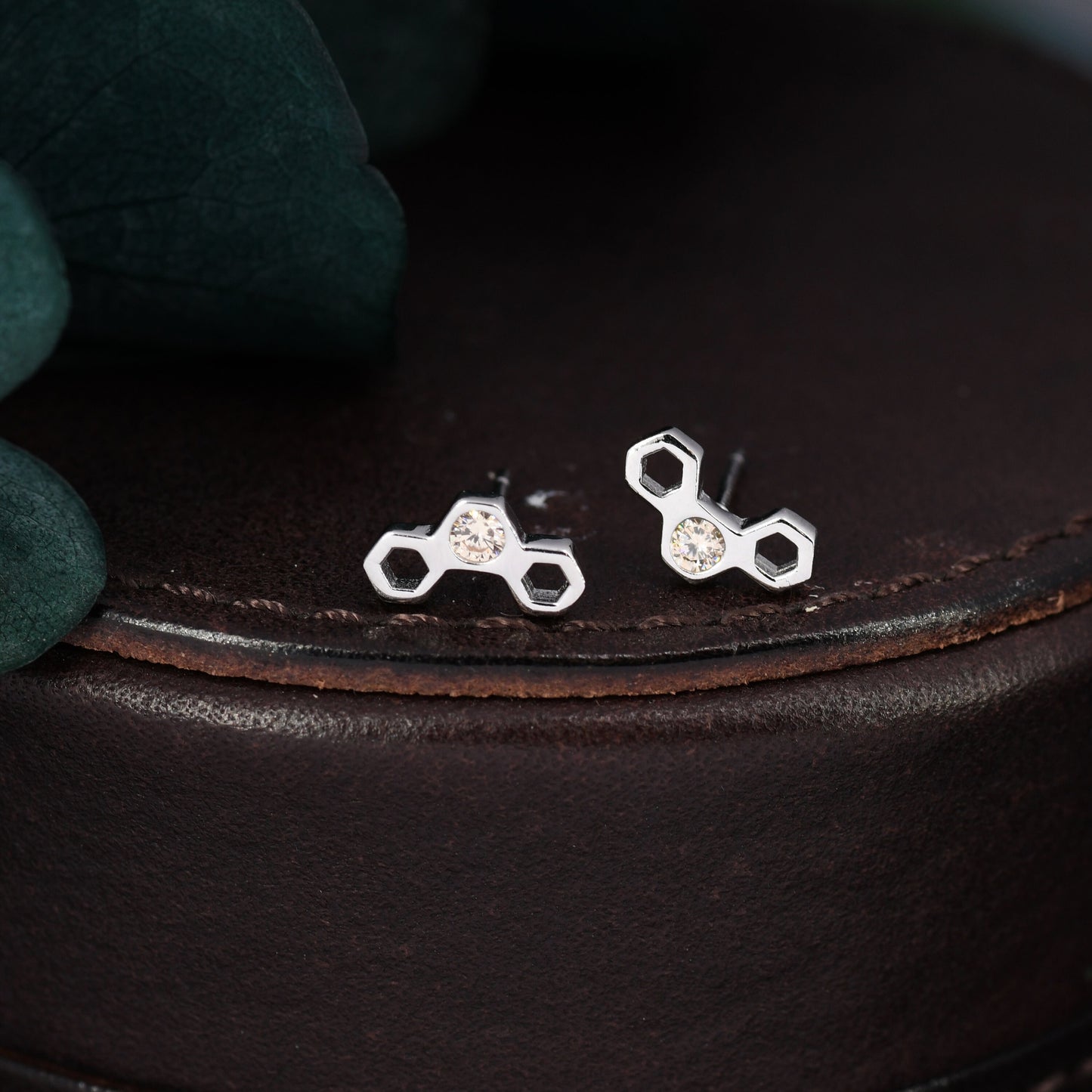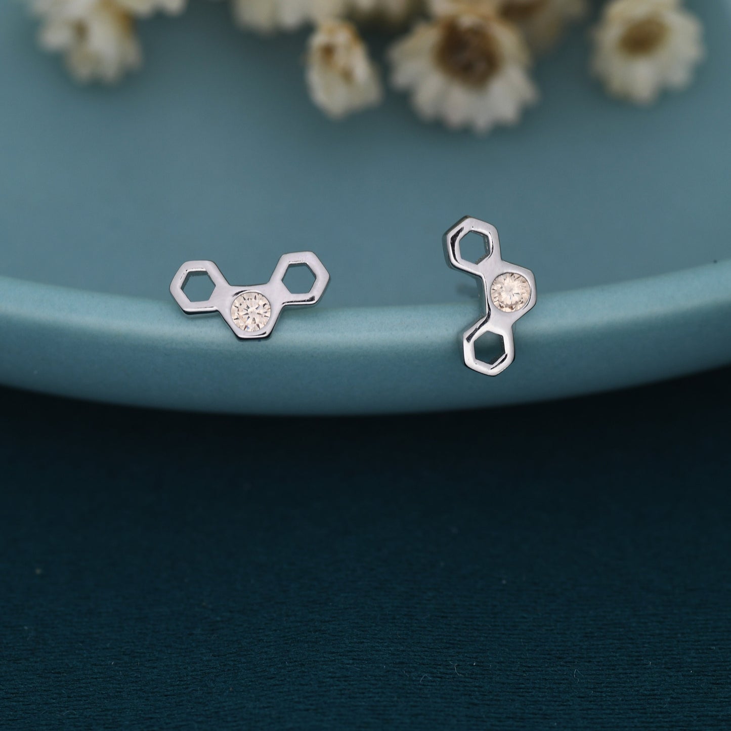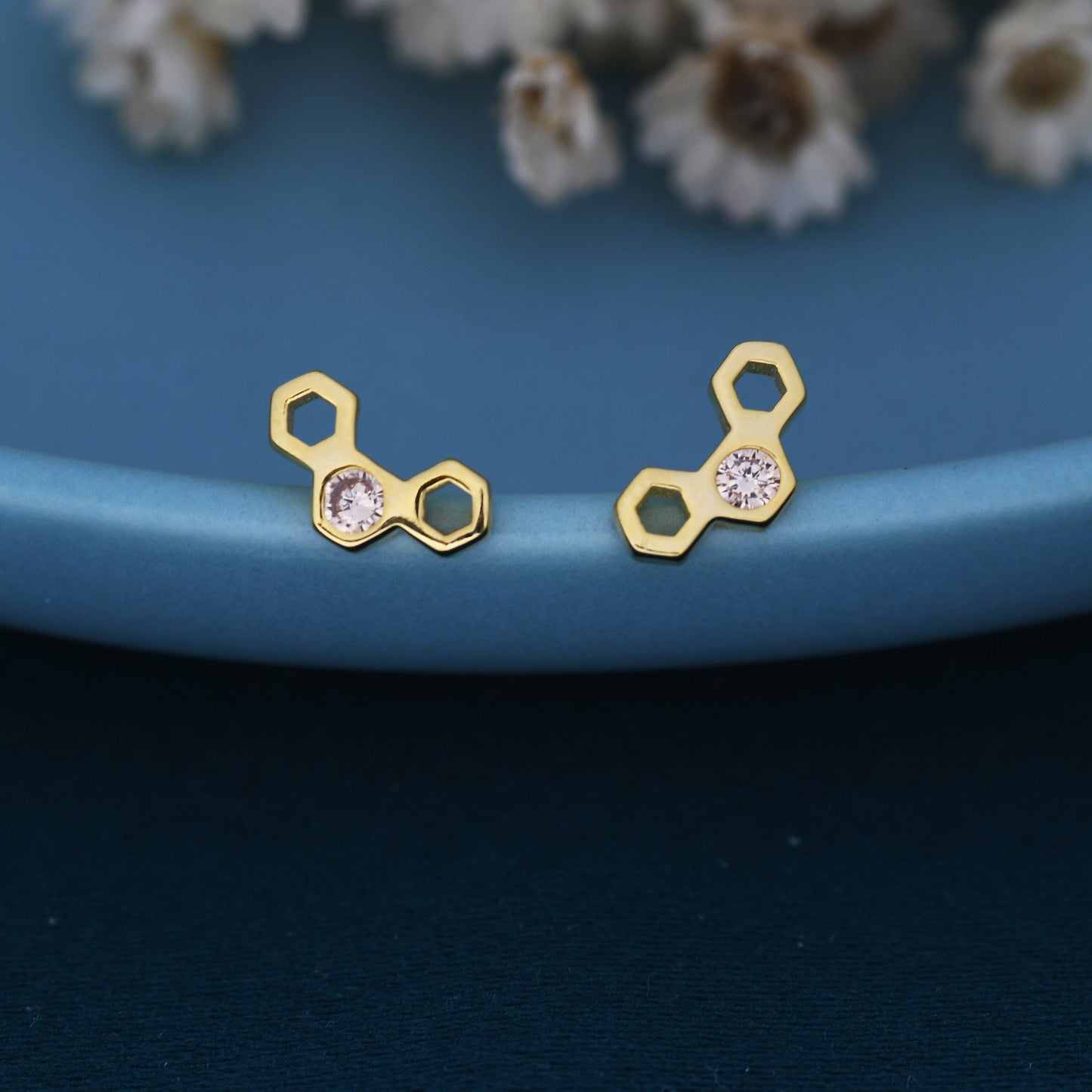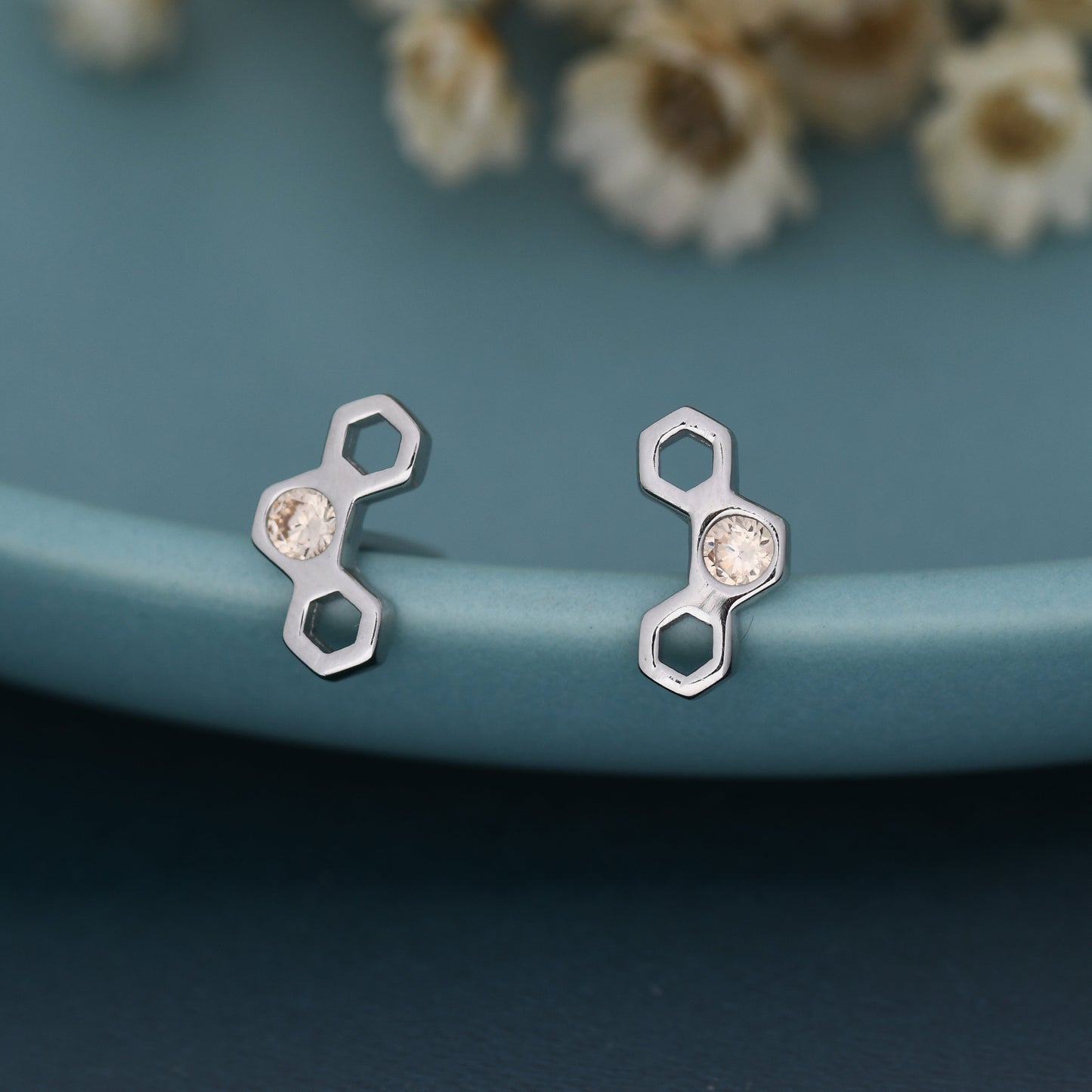 Citrine Honeycomb Stud Earrings in Sterling Silver, Silver or Gold, Nature Inspired