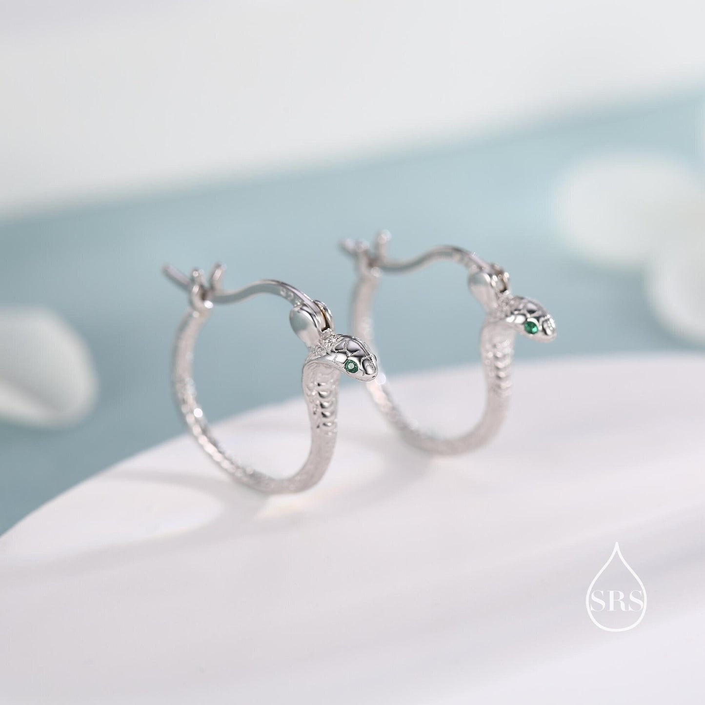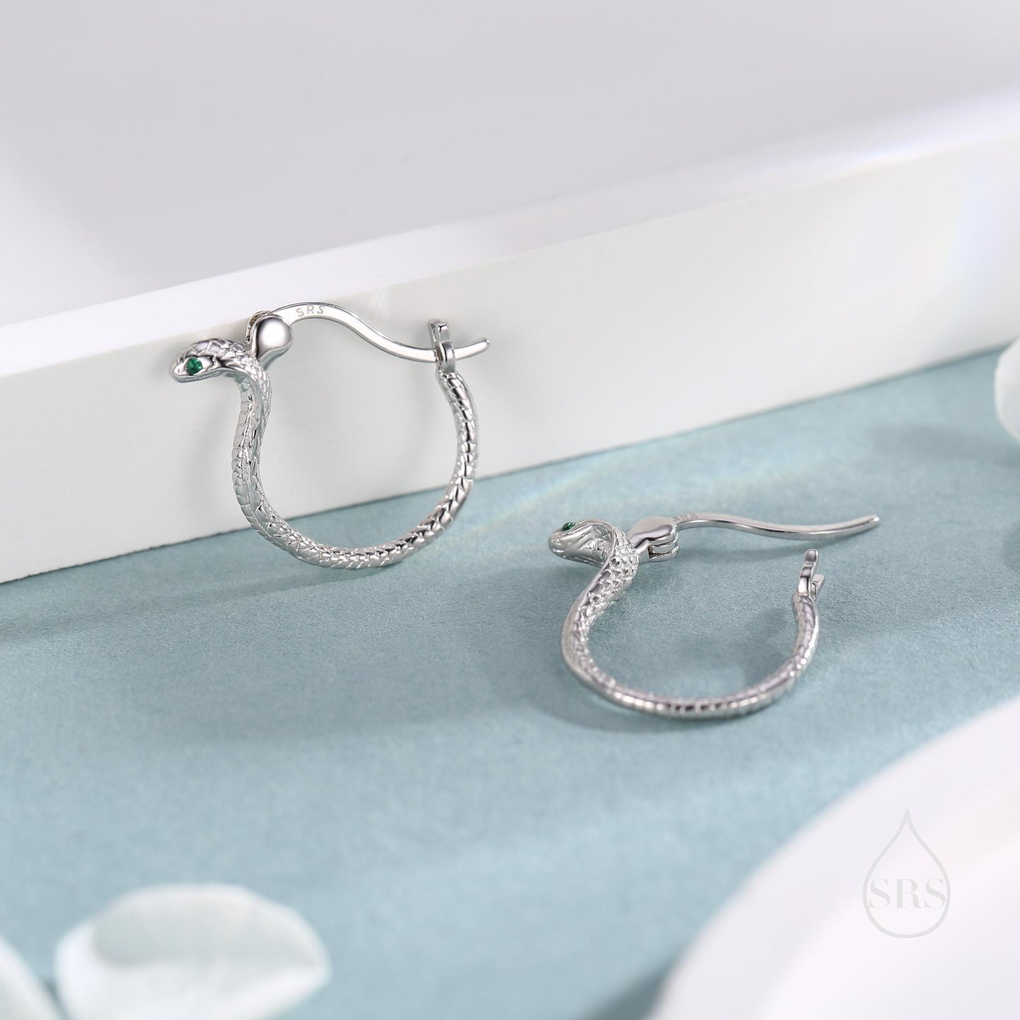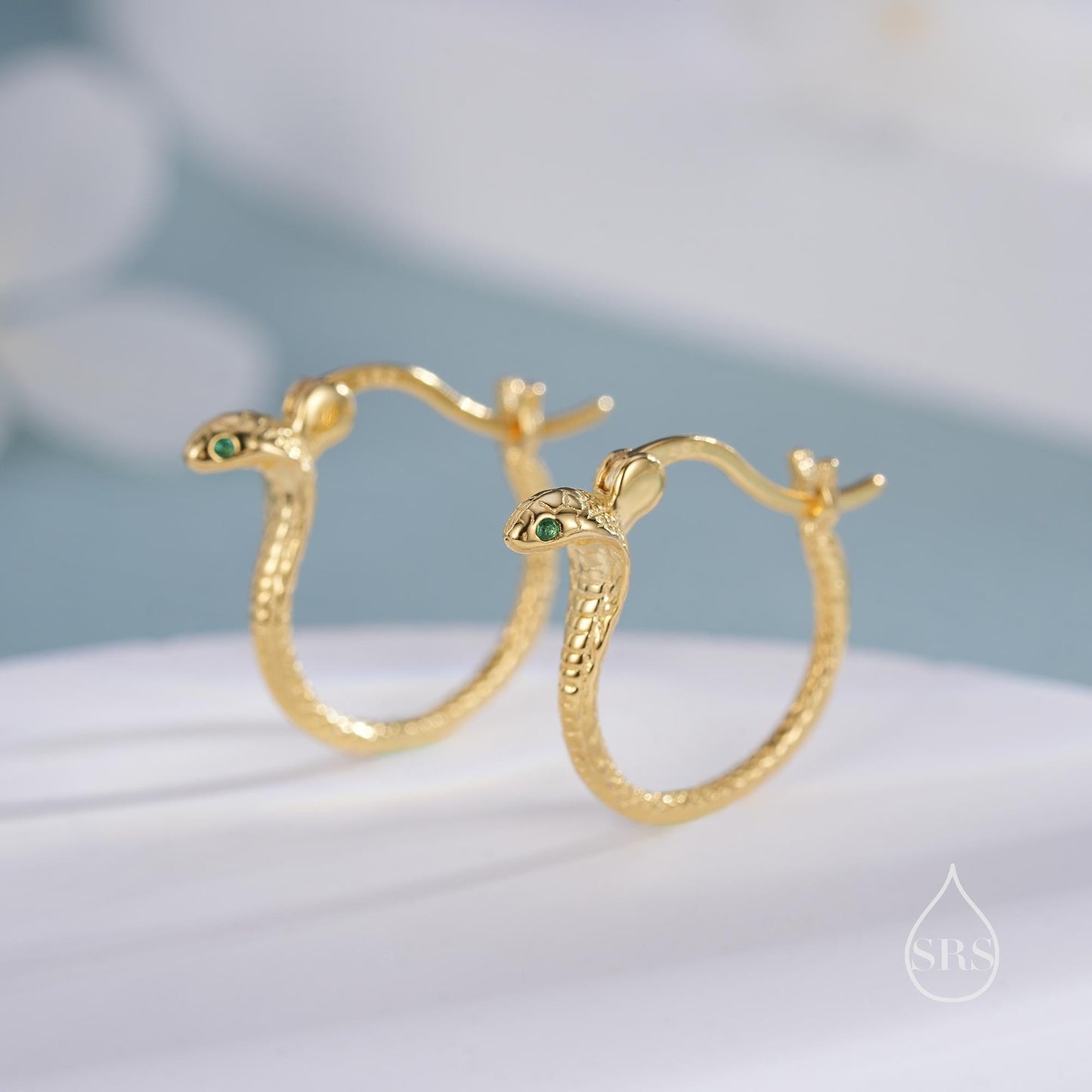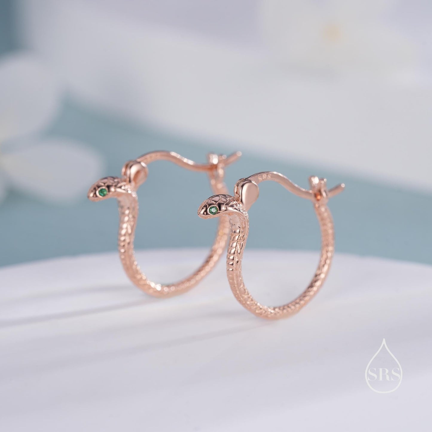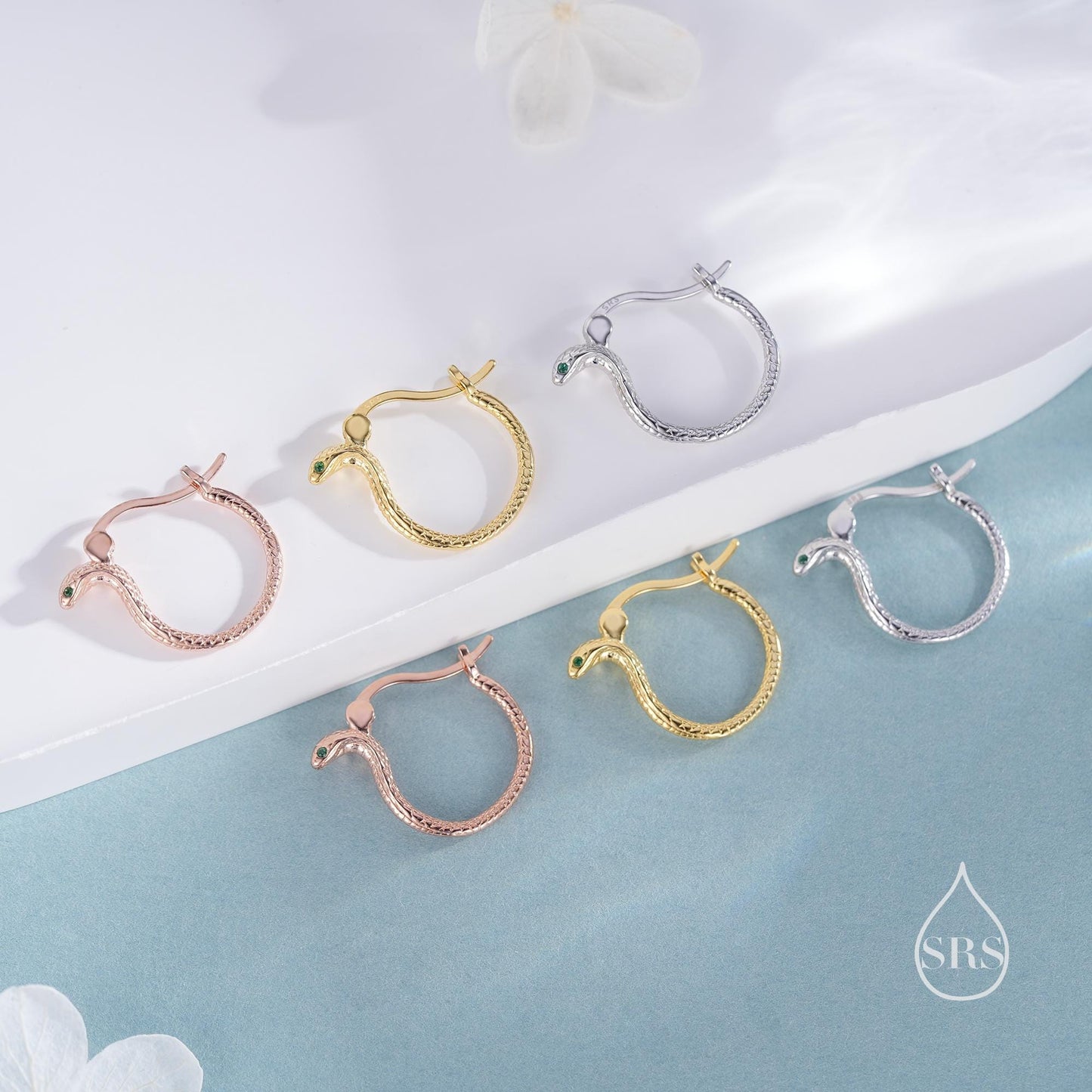 Cobra Snake Hoops in Sterling Silver, Gold, Rose Gold or Black, 12mm, Snake Earrings, Snake Hoops